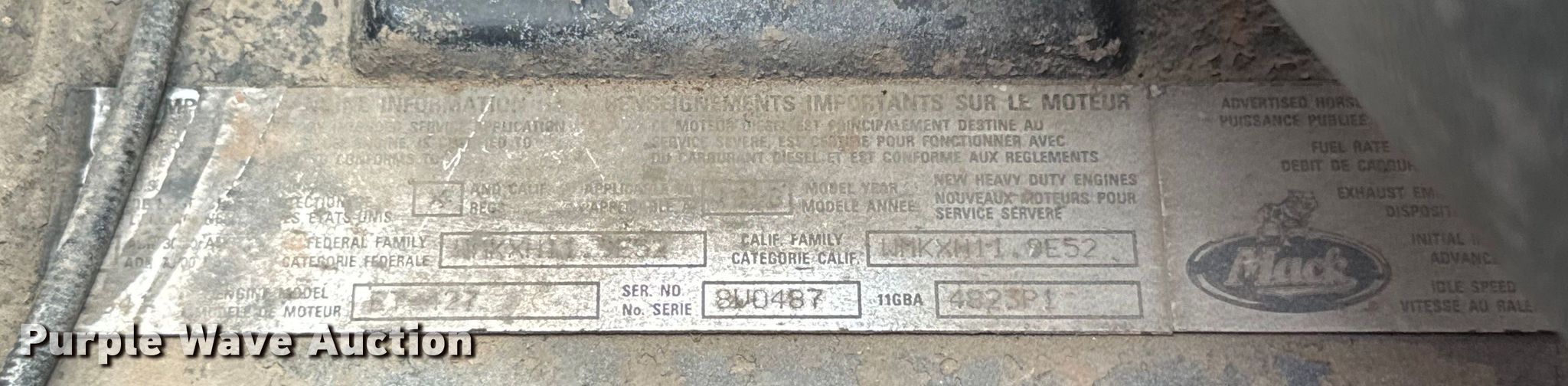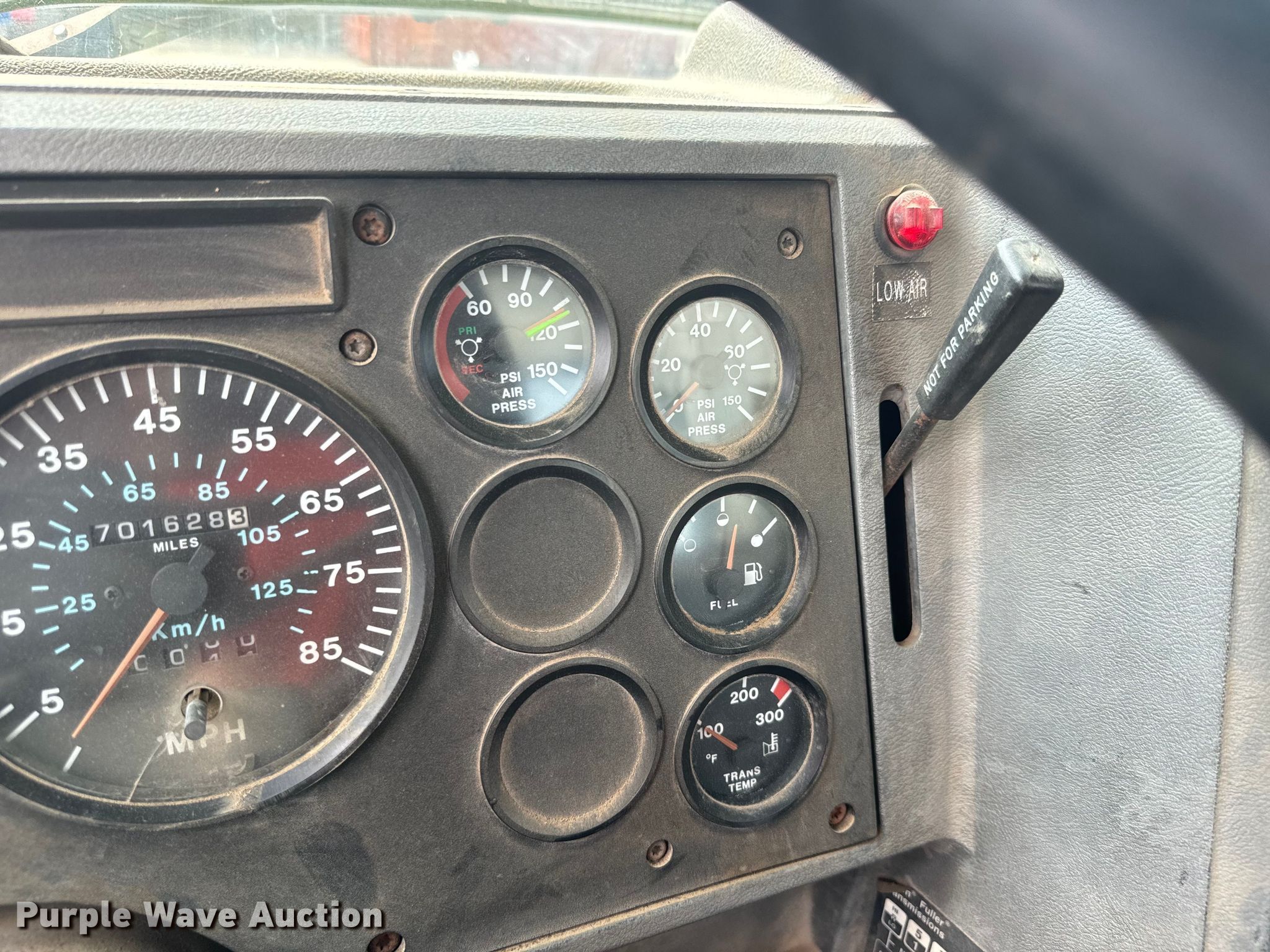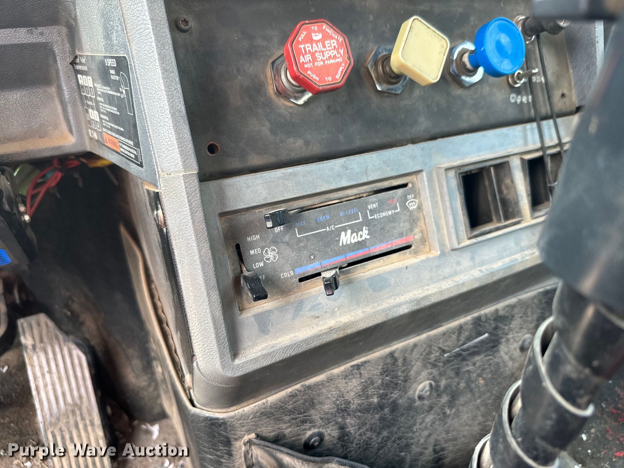 1999 Mack CH613 semi truck. Miles: 701,628 on odometer, Hours: 21,197 on meter, VIN: 1M1AA18Y4XW107951. Engine Mack, Displacement: 12.0L, Cylinders: 6, Fuel type: Diesel, Engine brake. Transmission Eaton Fuller, Manual, Speed: 9. Chassis Axles: Tandem, Differential lock: Inter-axle, Suspension: Air Dump valves, Brakes: Air, PTO, Wet kit. Interior AC, Heat, Heated mirrors, Cruise control, Air ride cab. Features Deck plate: Aluminum, Fifth wheel type: Air operated, Sliding, Fuel tank: Dual. Tires Size: 11R22.5. Kansas title. Title distribution may be delayed up to 14 days from verification of funds. BRB Contractors, Inc.. Topeka, KS 66618