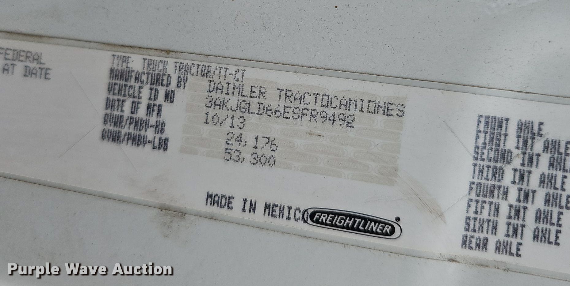 - VIN: 3AKJGLD66ESFR9492
