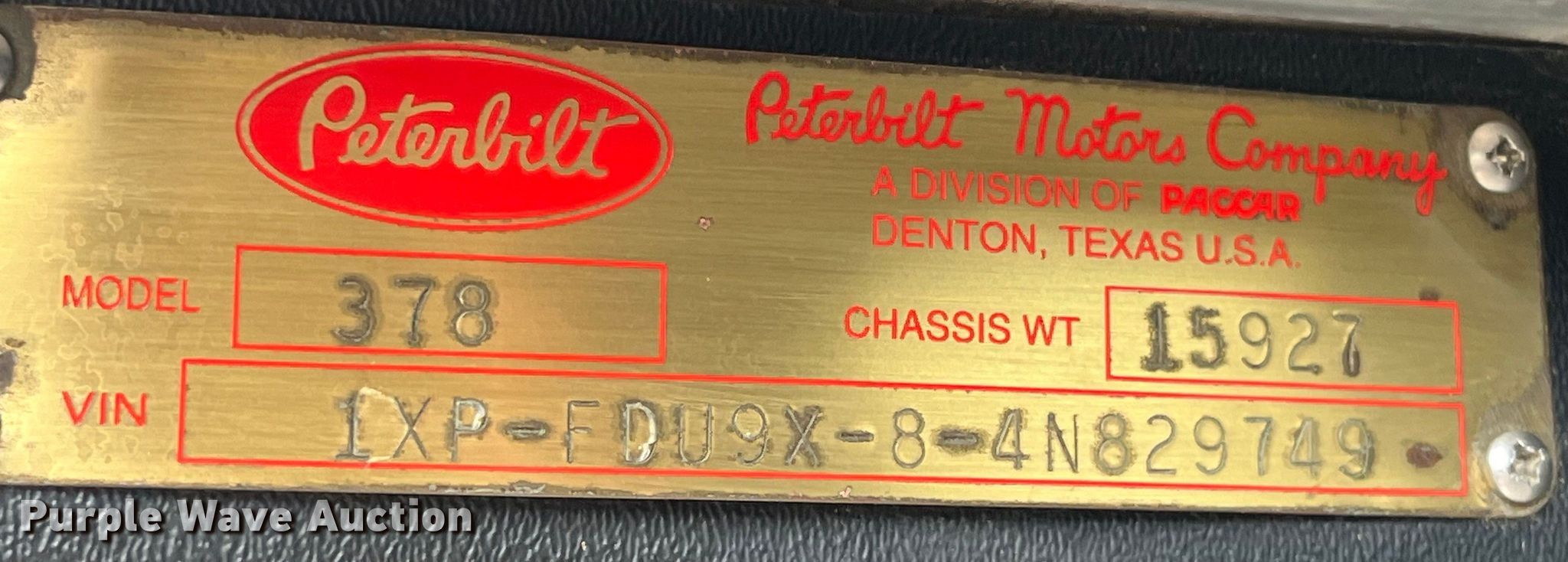Purple Wave is selling a used Truck Tractor in Missouri. This item is a 2004 Peterbilt 378 semi truck with the following: Miles: 436,646 on odometer, VIN: 1XPFDU9X84N829749