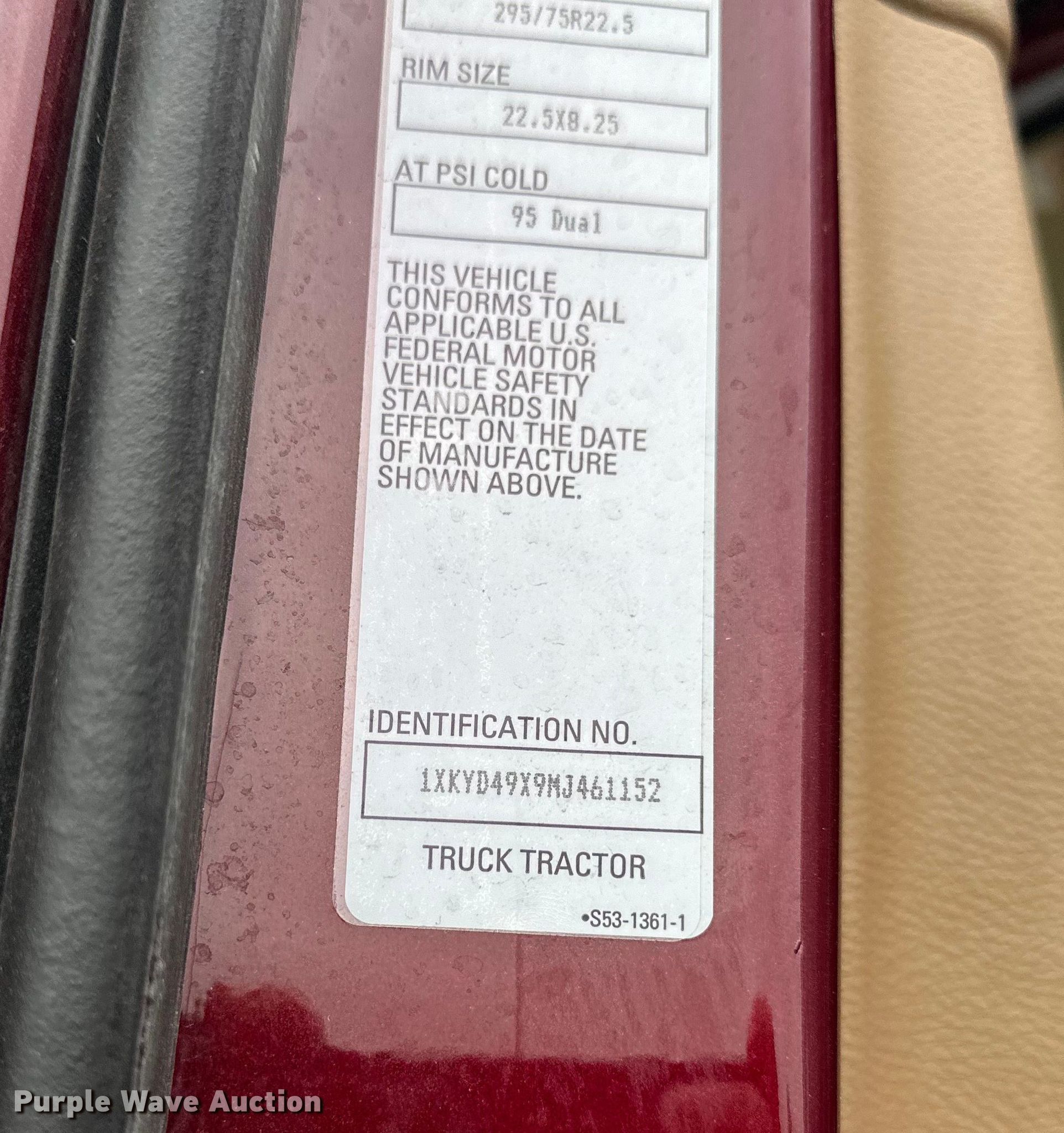 - VIN: 1XKYD49X9MJ461152