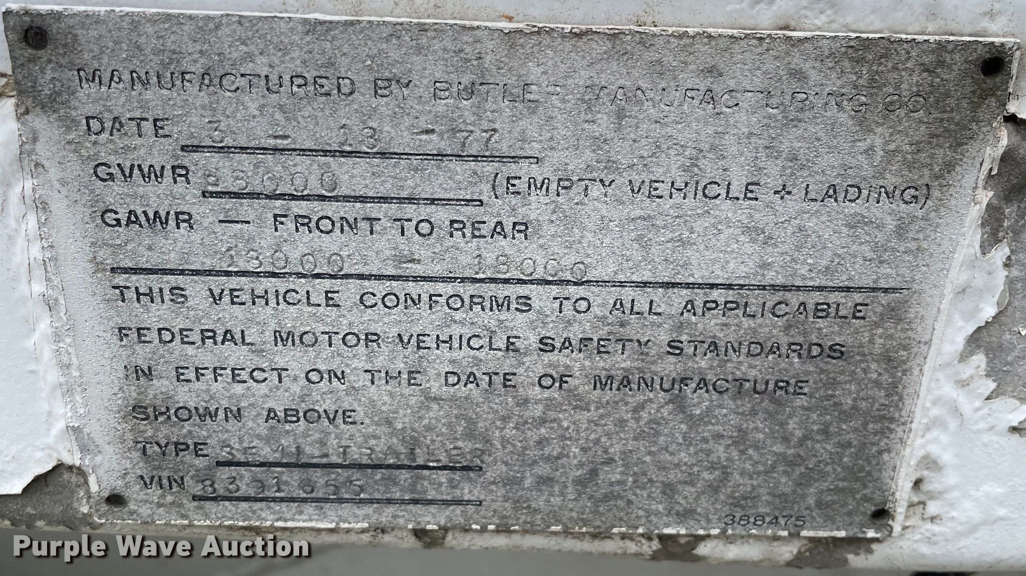 Purple Wave is selling a used Tank Trailer in Illinois. This item is a 1977 Butler MFG pneumatic dry bulk trailer with the following: VIN: 8391655, Unit #: 88