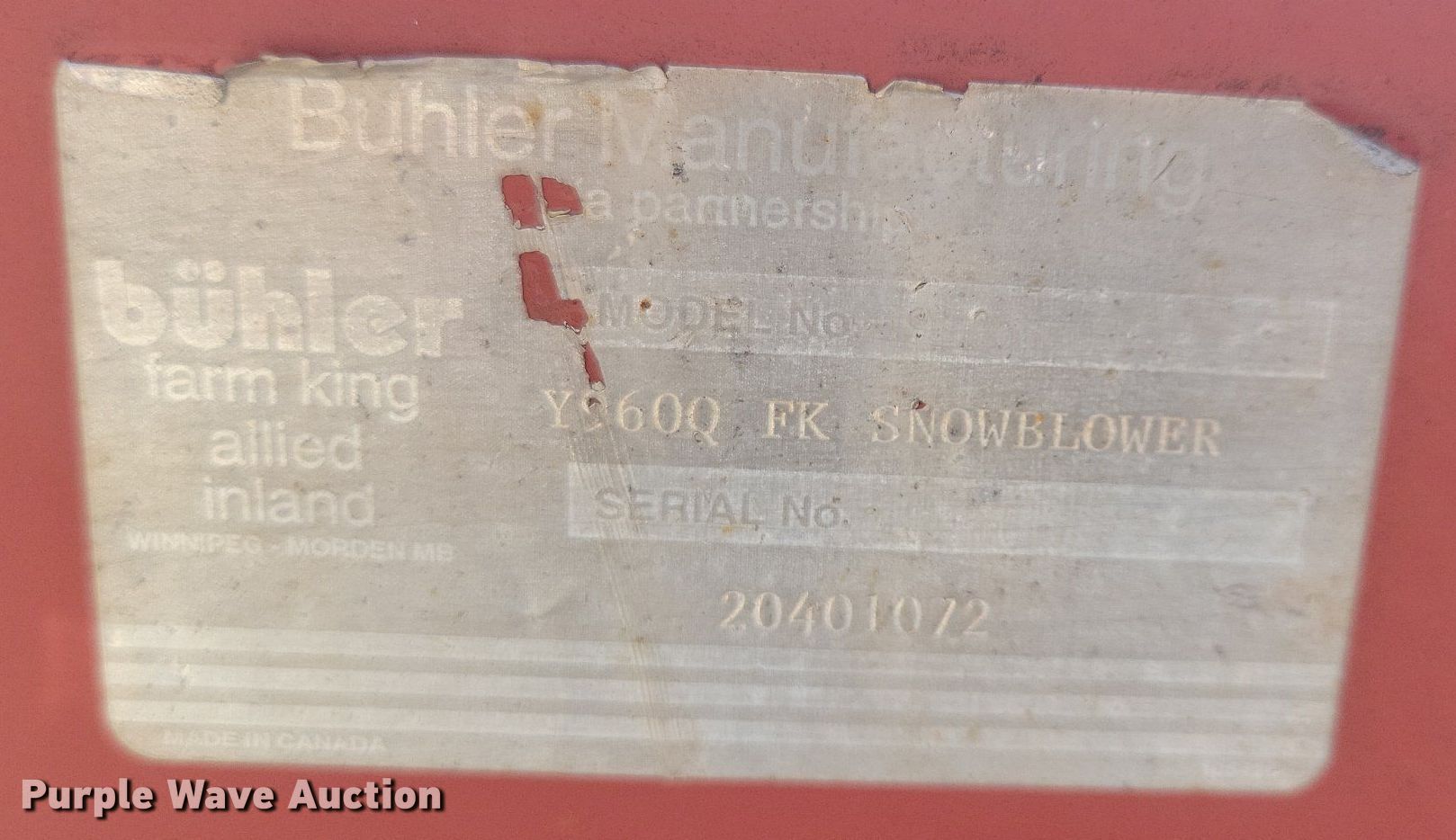 Purple Wave is selling a used Ag Equip. Other in Iowa. This item is a Buhler Y9600 FK snow blower with the following: Serial: 20401072