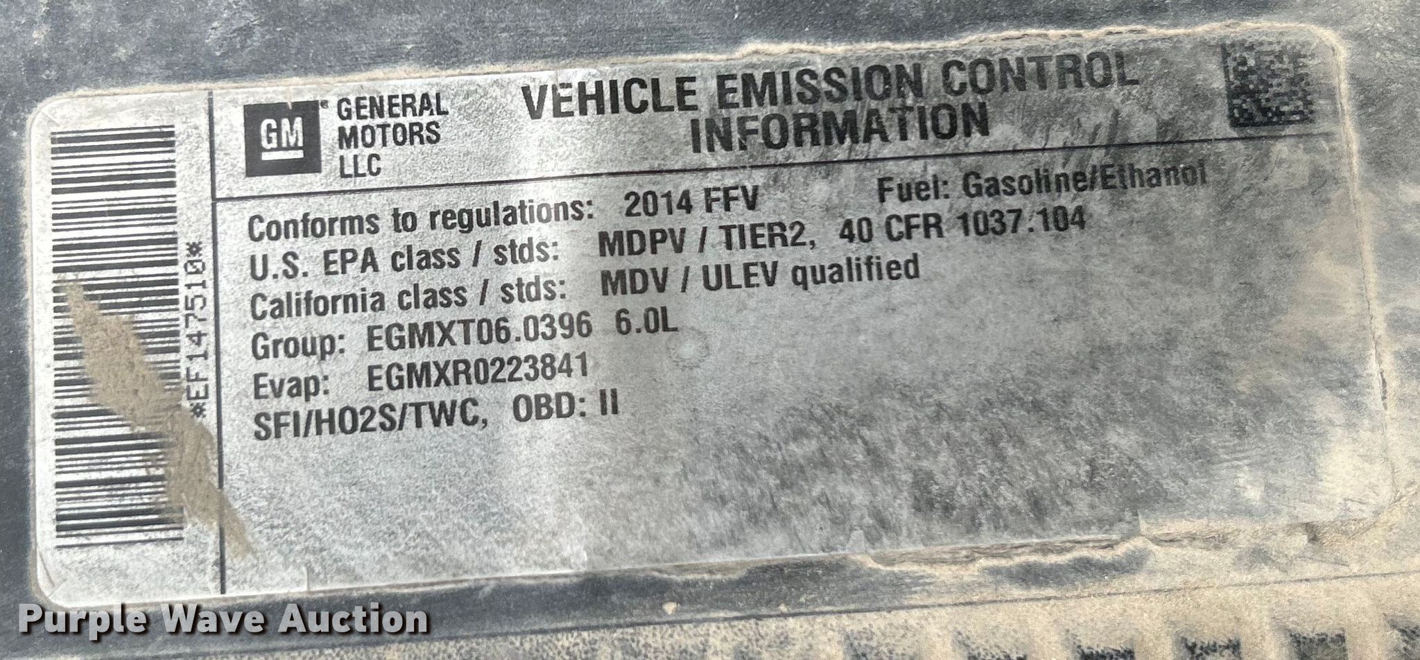 2014 Chevrolet Silverado 2500HD Crew Cab pickup truck. Miles: 240,128 on odometer, VIN: 1GC1KVCG9EF147510. Engine Displacement: 6.0L V8 OHV, Cylinders: 8, Fuel type: Gas. Transmission Automatic, Four wheel drive. Interior AC, Heat, Power windows, Power locks, Cruise control. Tires Size: LT265/70R17. Notes Dash warning indicator: Check engine. Oklahoma title. Becco Contractors Inc.. Tulsa, OK 74116
