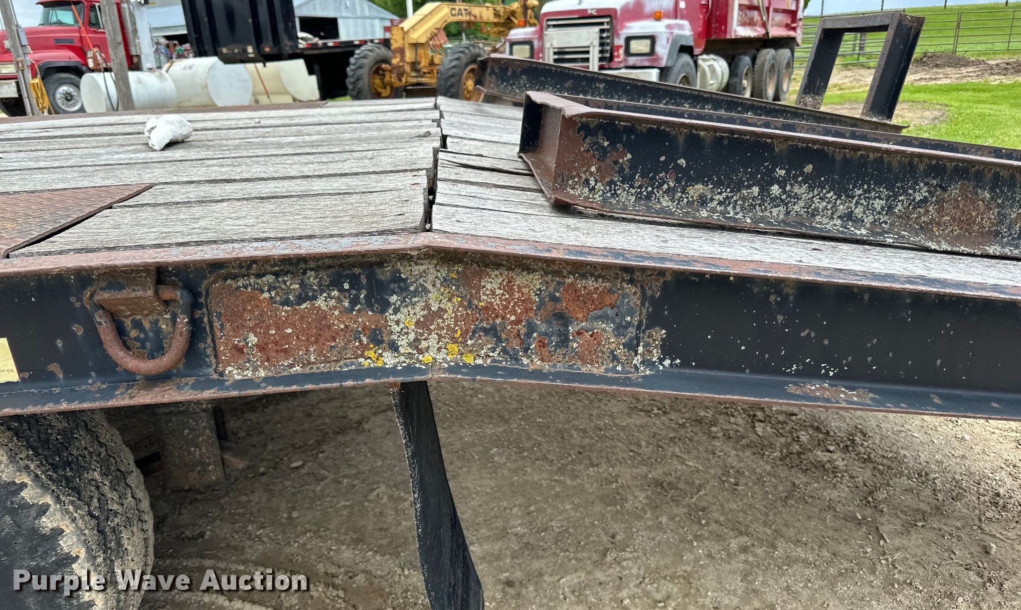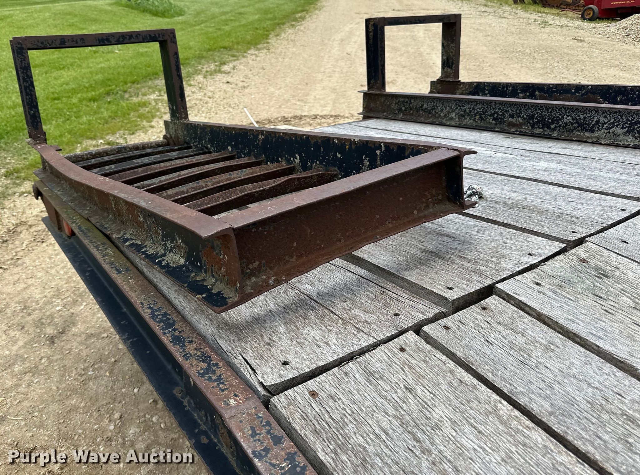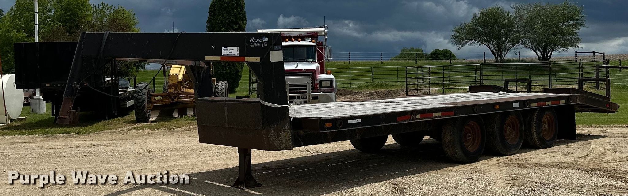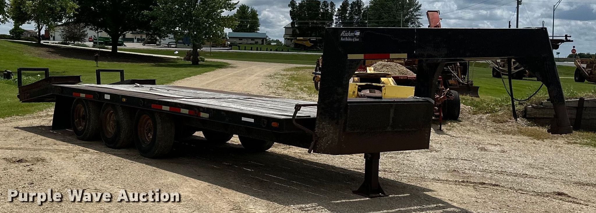 1979 Fairmont Steel Products equipment trailer. VIN: LF2038791776. Dimensions Overall: 33' 4" L x 96" W, Deck: 20' L x 96" W, Deck height: 2' 11", Tail length: 5', Ramps: Manual Length: 6'. Features Deck type: Wood. Chassis Hitch: Gooseneck, Landing gear: Single, Suspension: Spring, Brakes: Air, Axles: Triple, GVWR: 24,495 lbs. Tires Steel wheels, Size: 12-16.5. Iowa title. Title distribution may be delayed up to 14 days from verification of funds. Riehm Construction Co. Waukon, IA 52172