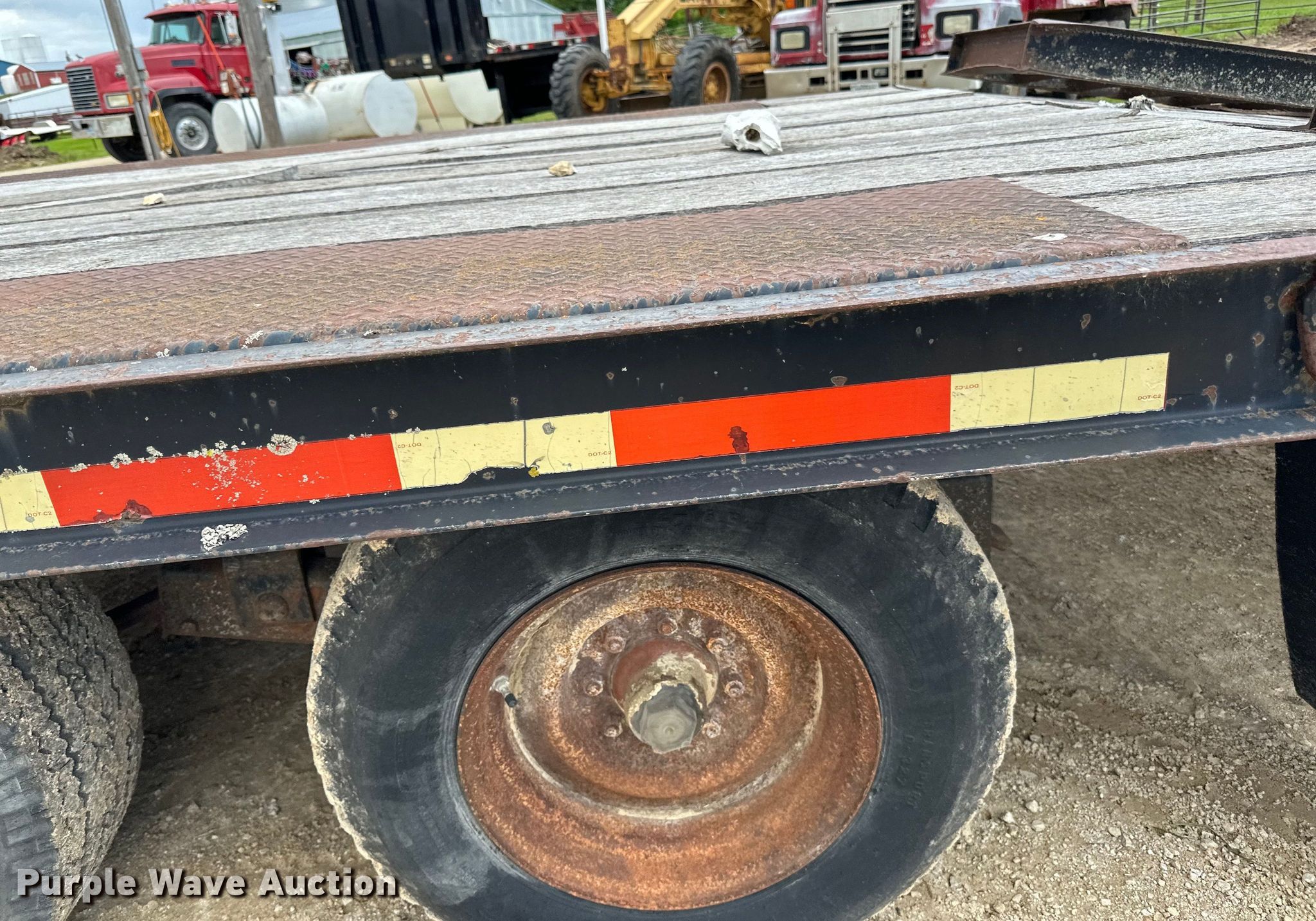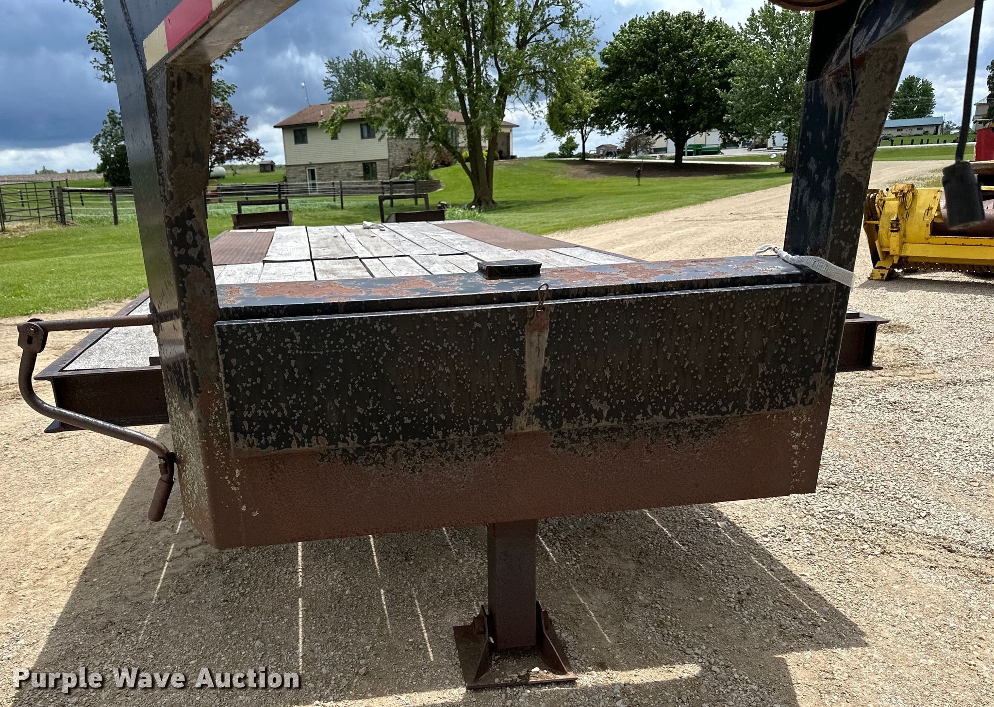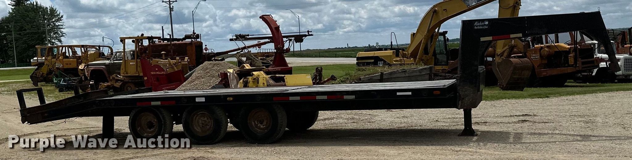 1979 Fairmont Steel Products equipment trailer. VIN: LF2038791776. Dimensions Overall: 33' 4" L x 96" W, Deck: 20' L x 96" W, Deck height: 2' 11", Tail length: 5', Ramps: Manual Length: 6'. Features Deck type: Wood. Chassis Hitch: Gooseneck, Landing gear: Single, Suspension: Spring, Brakes: Air, Axles: Triple, GVWR: 24,495 lbs. Tires Steel wheels, Size: 12-16.5. Iowa title. Title distribution may be delayed up to 14 days from verification of funds. Riehm Construction Co. Waukon, IA 52172