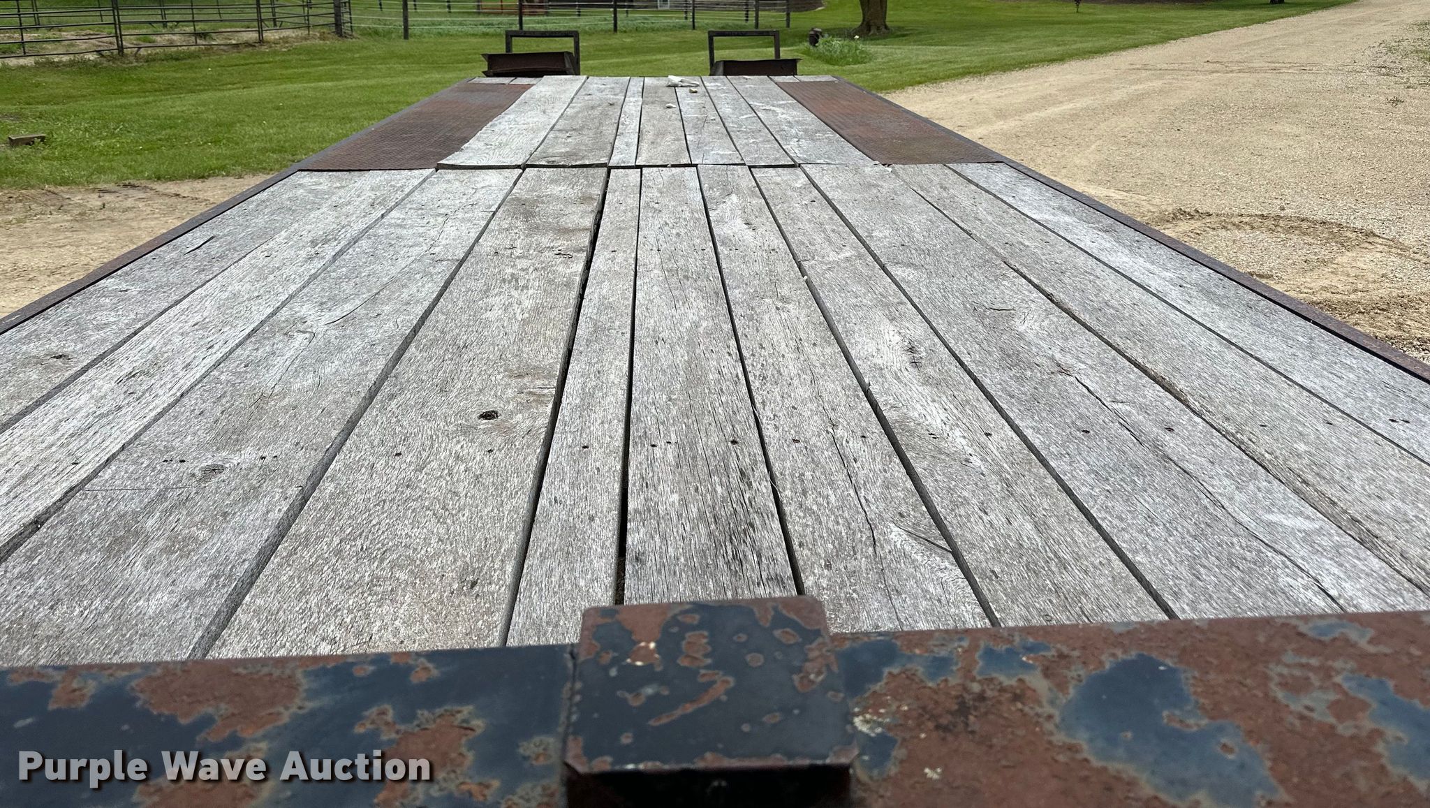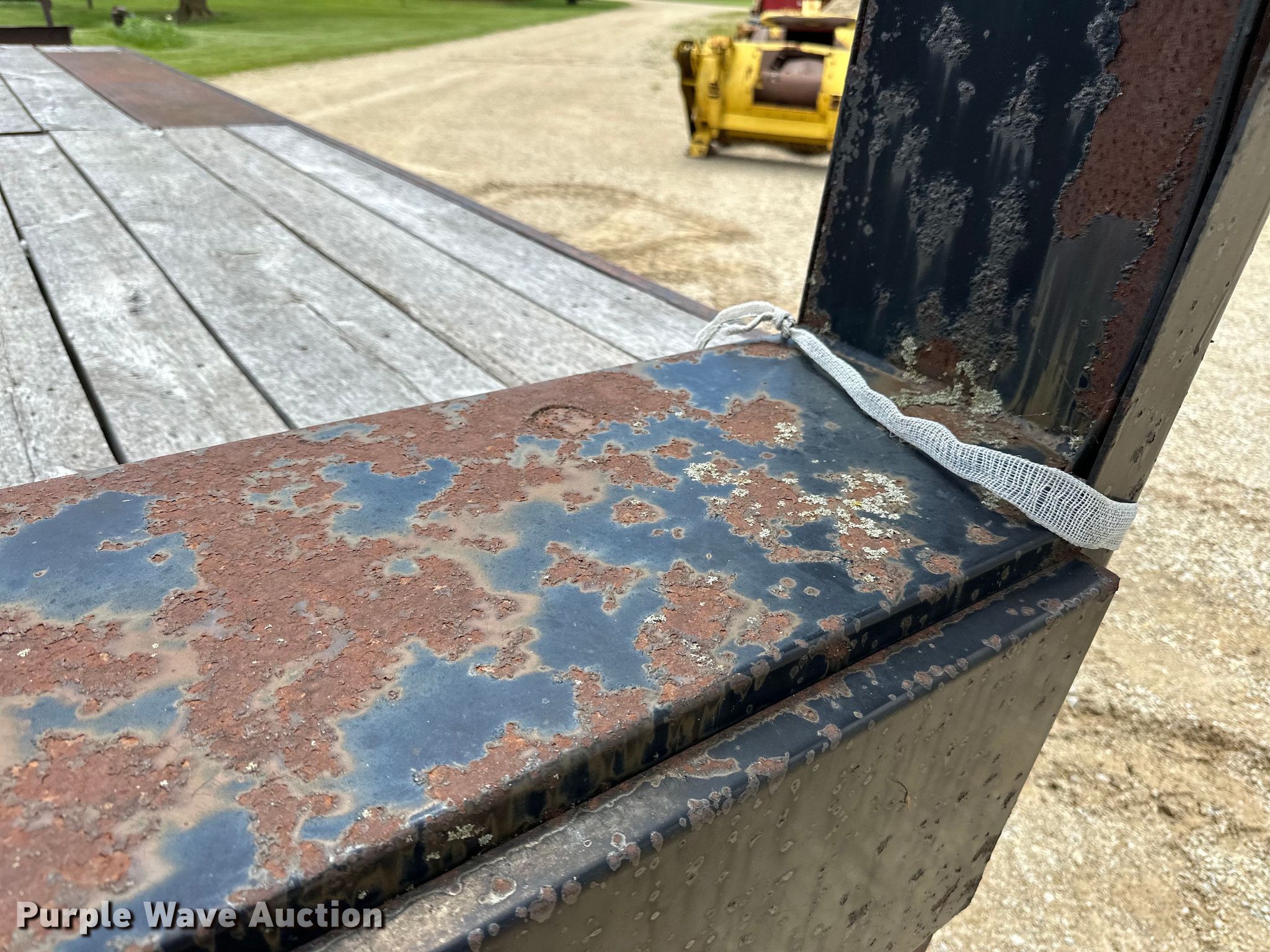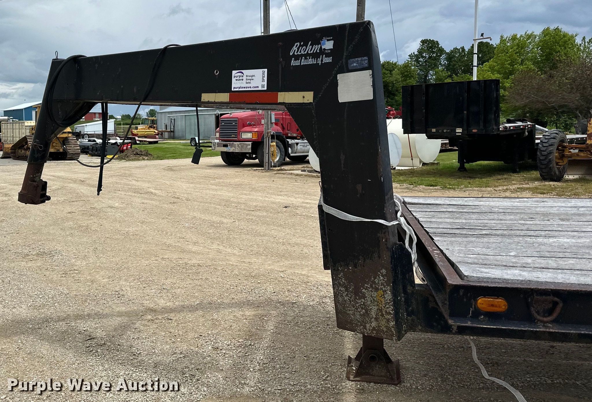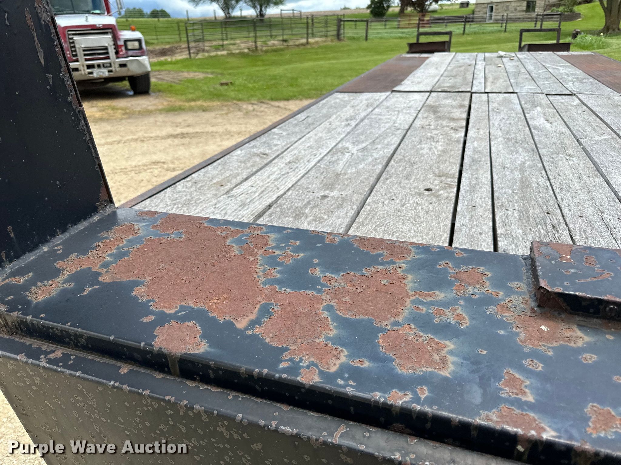 1979 Fairmont Steel Products equipment trailer. VIN: LF2038791776. Dimensions Overall: 33' 4" L x 96" W, Deck: 20' L x 96" W, Deck height: 2' 11", Tail length: 5', Ramps: Manual Length: 6'. Features Deck type: Wood. Chassis Hitch: Gooseneck, Landing gear: Single, Suspension: Spring, Brakes: Air, Axles: Triple, GVWR: 24,495 lbs. Tires Steel wheels, Size: 12-16.5. Iowa title. Title distribution may be delayed up to 14 days from verification of funds. Riehm Construction Co. Waukon, IA 52172