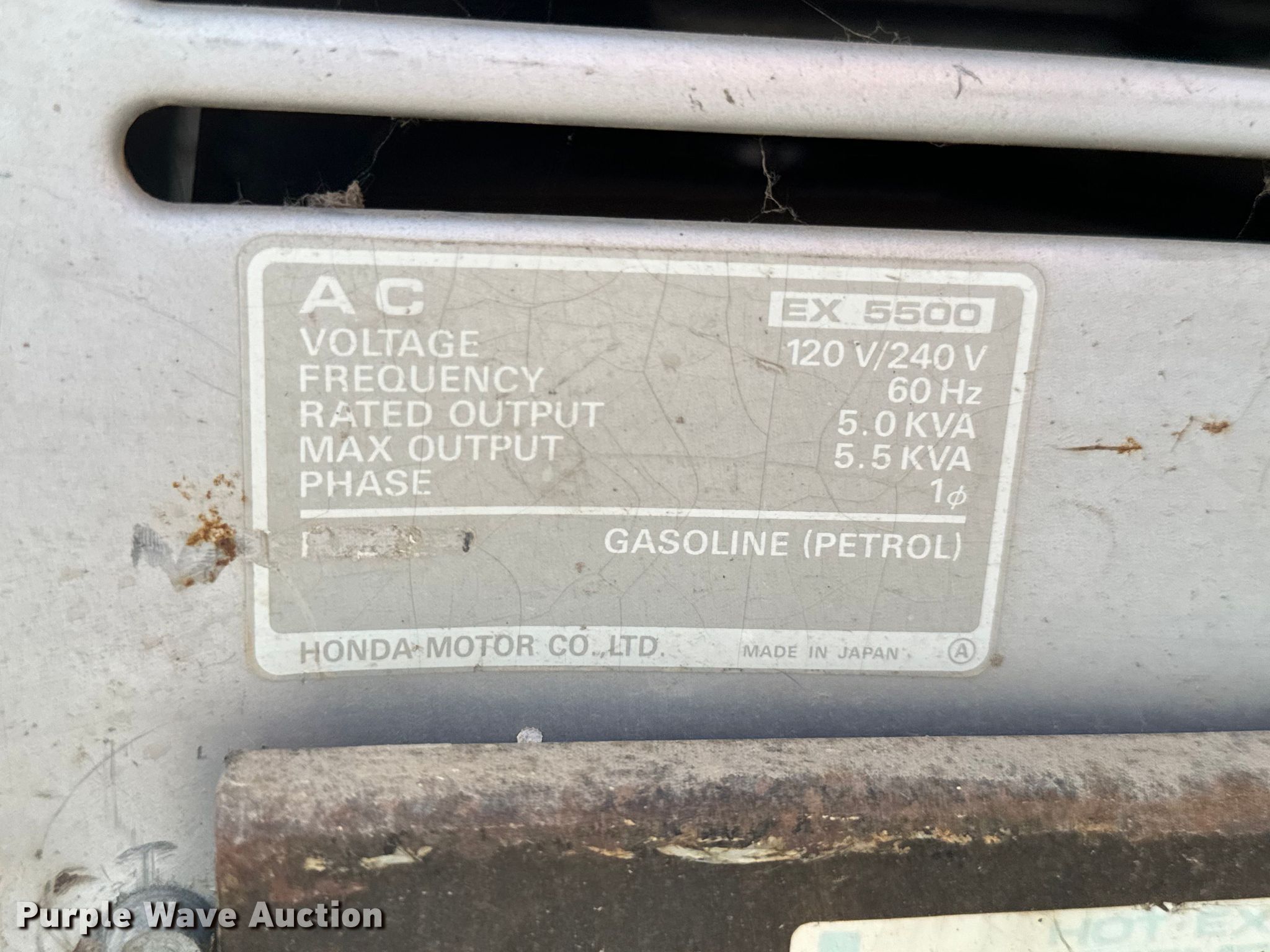 Purple Wave is selling a used Generator Set in Kansas. This item is a Honda EX5500 generator with the following: Honda, Fuel type: Gas