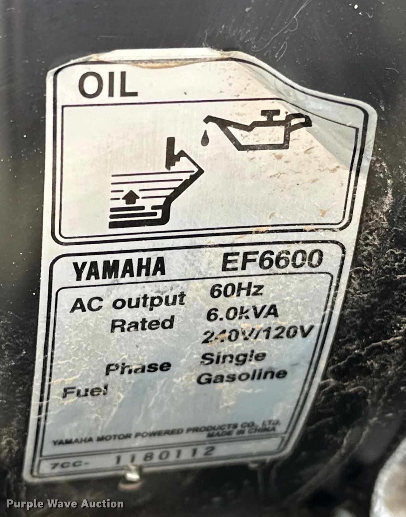 Purple Wave is selling a used Generator Set in Oklahoma. This item is a Yamaha EF6600DE generator with the following: Serial: 7CC1180112