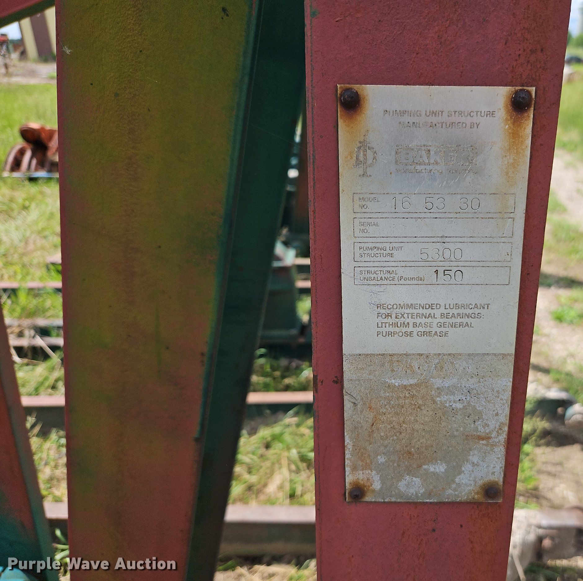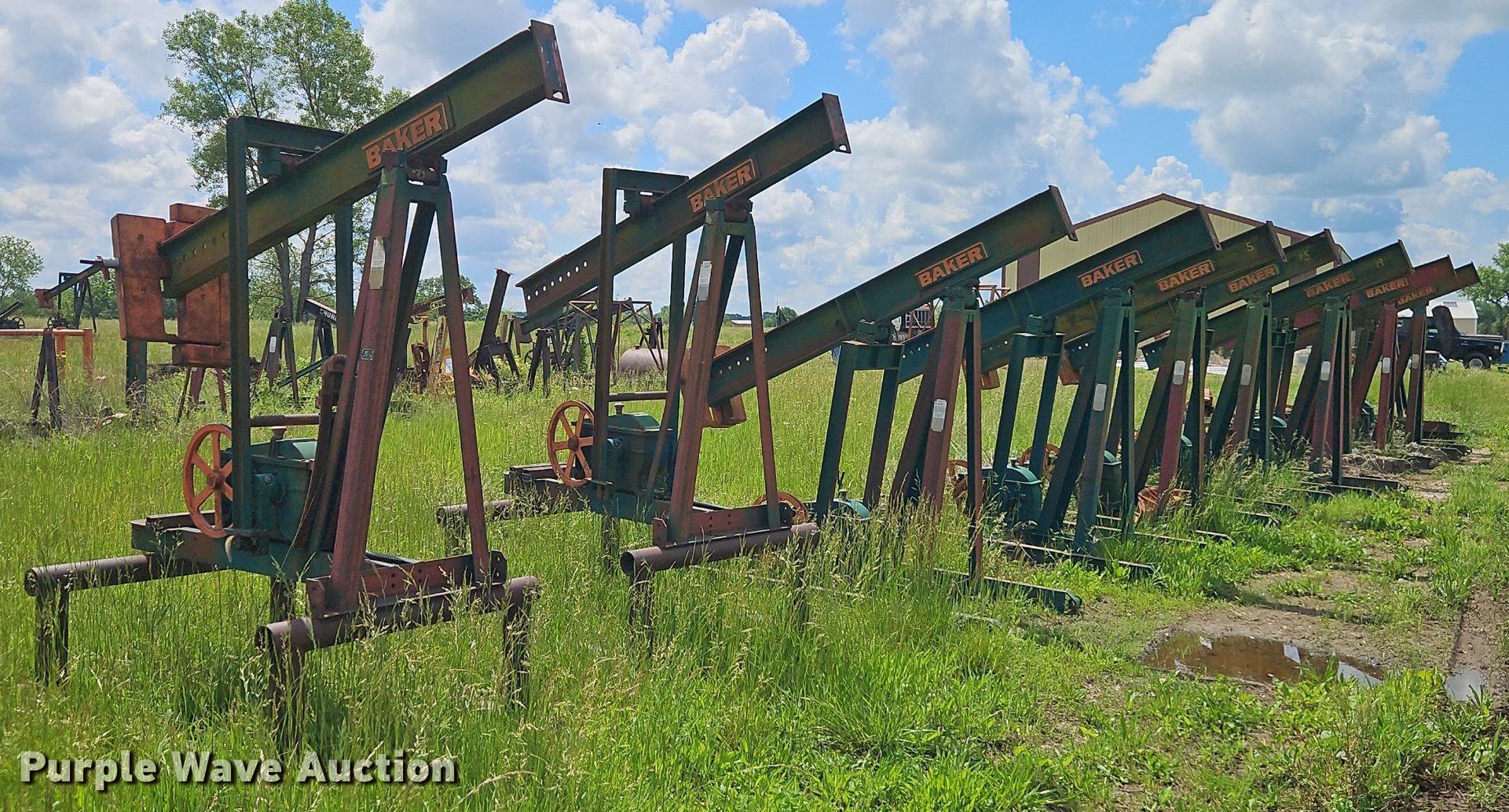 Purple Wave is selling a used Oilfield Equip. in Kansas. This item is a (12) pump jacks with the following: (8) Baker 16 53 30, (2) Baker 10 32 24, Jenson 10A32J24