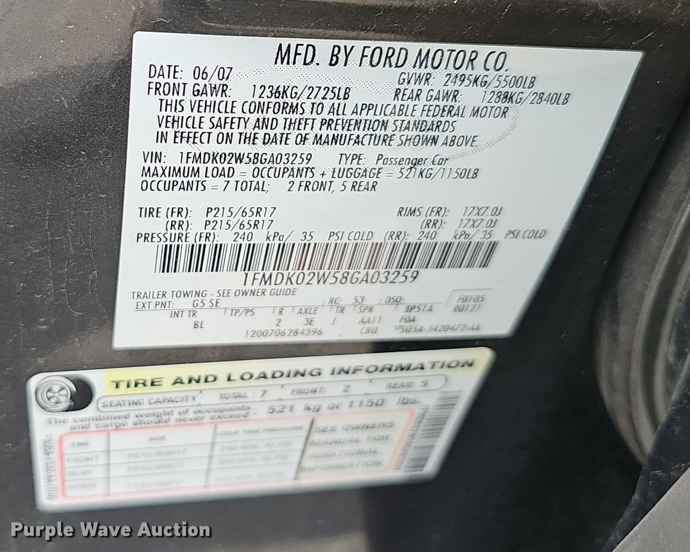 • VIN: 1FMDK02W58GA03259