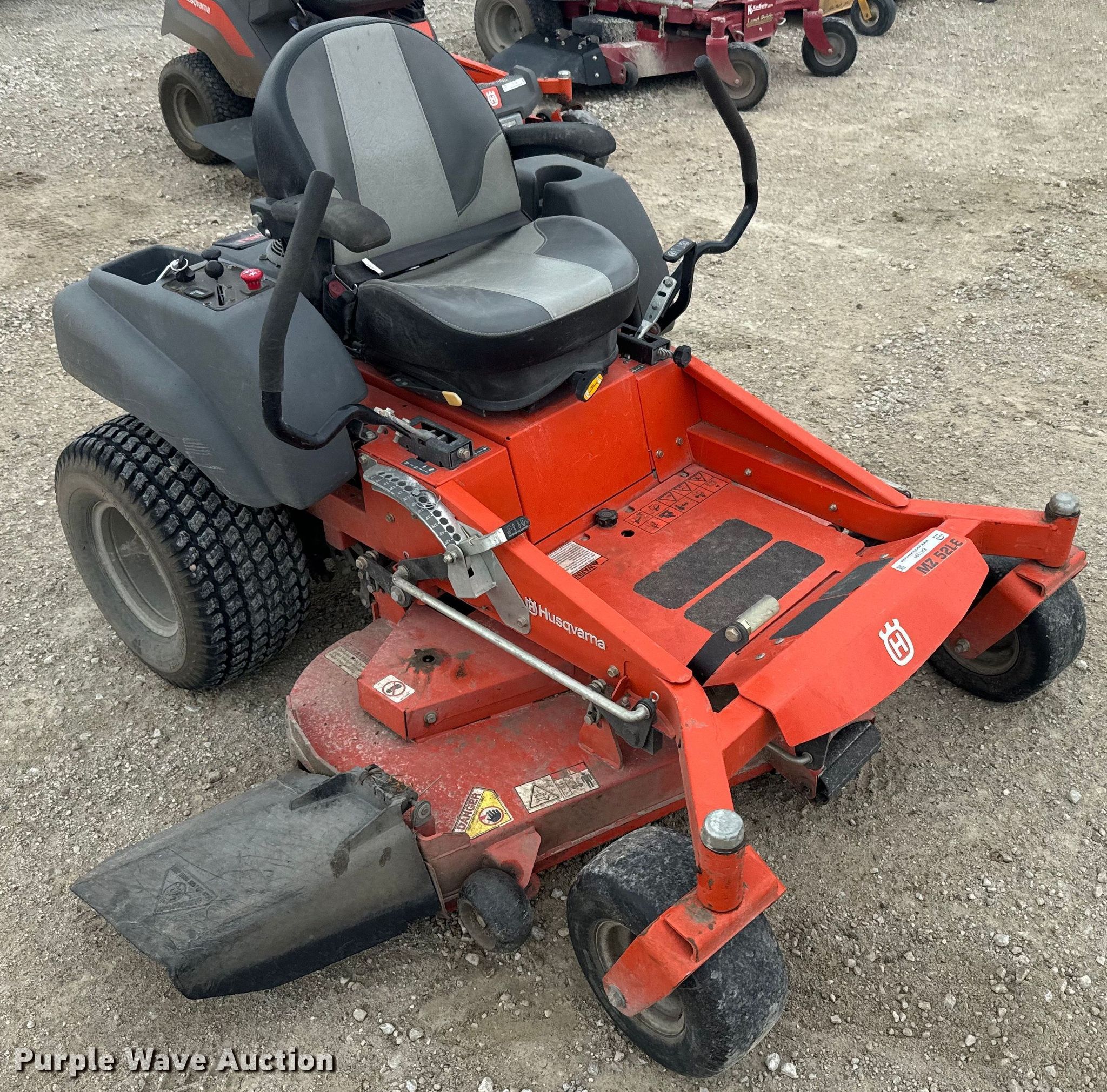 Purple Wave is selling a used Lawn Mower in Kansas. This item is a Husqvarna ZTR lawn mower with the following: Hours: 324 on meter, Cutting width: 52"