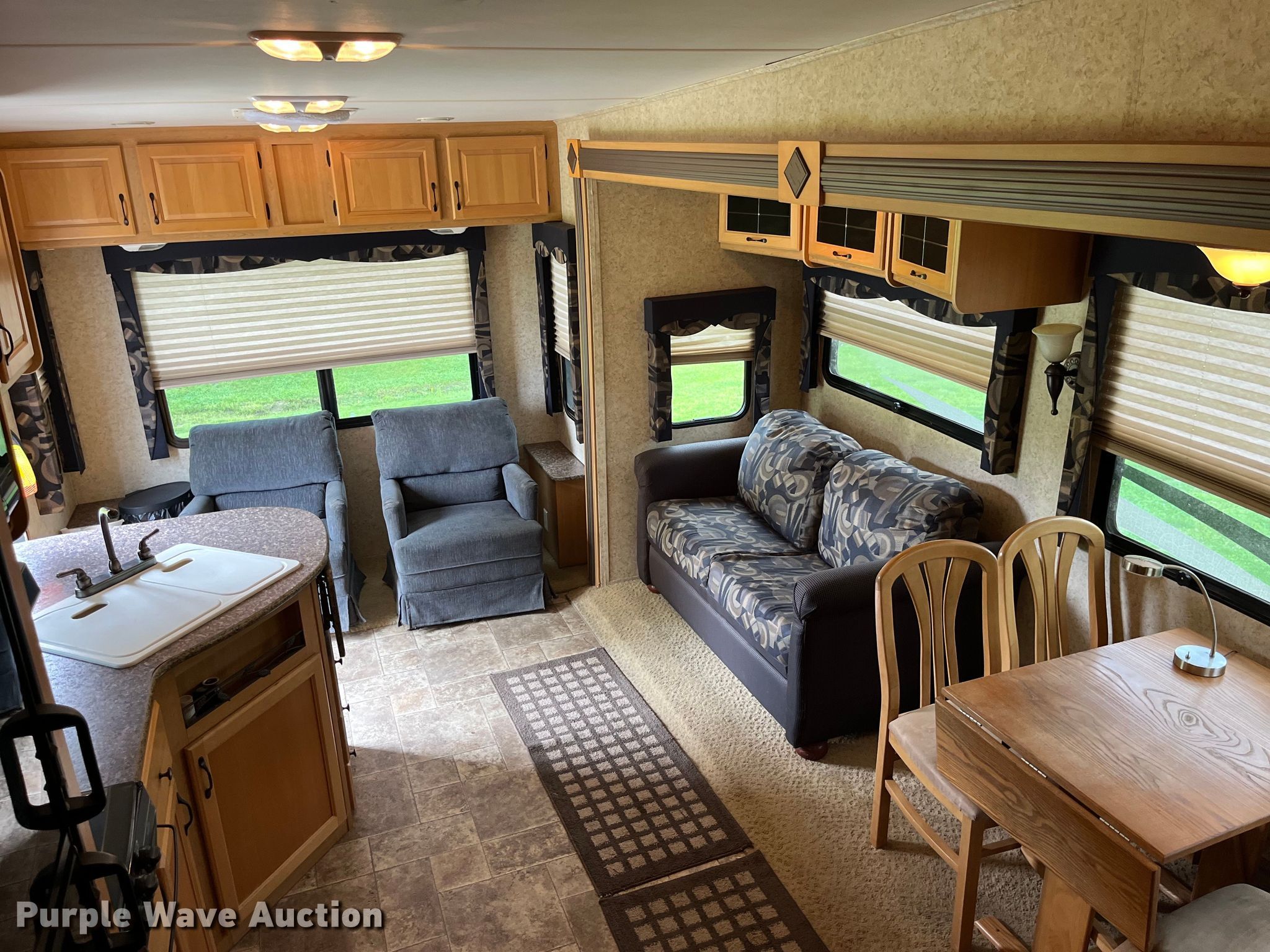 2011 Evergreen EL30RLS-5 camper. Camper length: 31' 8", VIN: 5ZWFE312XB1000504. Chassis Axles: Tandem, Brakes: Electric, GVWR: 9,995 lbs, GAWR: 4,400 lbs. Interior Kitchen: Sink, Refrigerator, Freezer, Microwave, Oven, Stove: Gas, Living room: Table, Couch, Bathroom, Beds: 1 Bed type: Double, TVs: 2, Heater, AC units: 2. Features Slide outs: 1, Awnings: 1 Width: 20', Awning type: Electric, Front landing gear: Electric. Tires Size: 225/75R15. Missouri title. Title distribution may be delayed up to 30 days from verification of funds. Macon, MO 63552