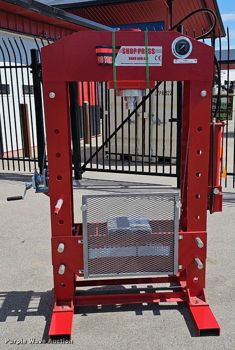 Purple Wave is selling a used Tools in Nebraska. This item is a 100 ton shop press with the following: 43.5" L x 39.5" W x 76" H, Adjustable height, Owners manual, Unused