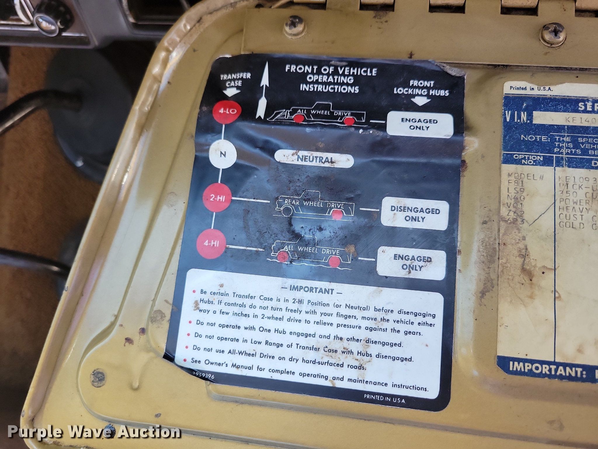 Purple Wave is selling a used 1/2 Ton Pickup or Van in Iowa. This item is a 1970 Chevrolet K10 pickup truck with the following: Miles: 62,127 on odometer, VIN: KE140Z124065