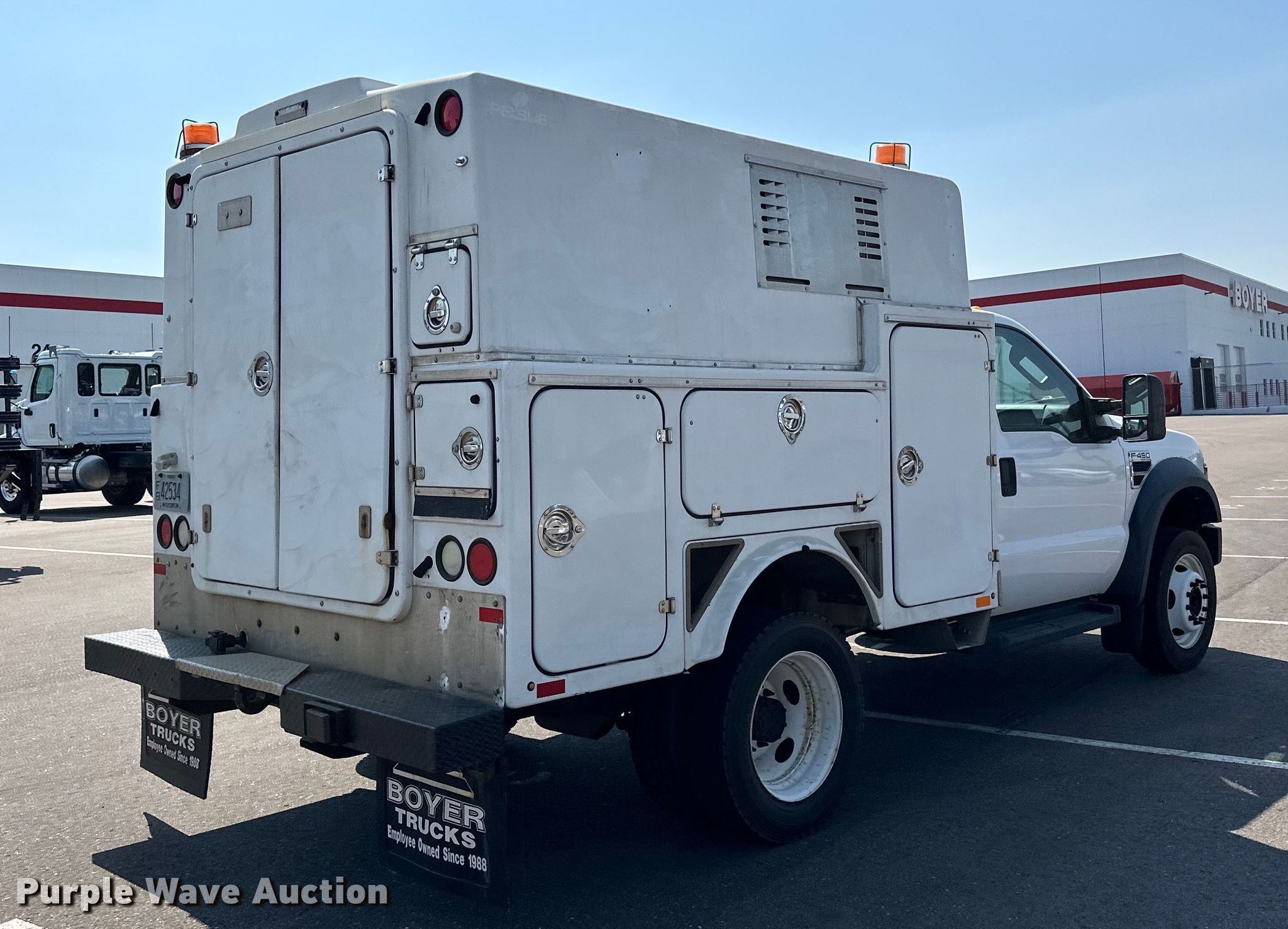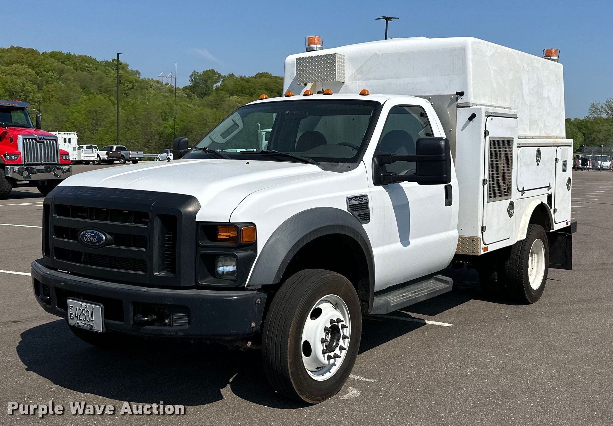 2008 Ford F450 Super Duty fiber optic splicing truck. Miles: 139,154 on odometer, VIN: 1FDXF47YX8ED06990. Engine Displacement: 6.8L, Cylinders: 10, Fuel type: Gas. Transmission Automatic. Chassis Four wheel drive, Axles: Single, Suspension: Spring, GVWR: 16,000 lbs. Interior AC, Heat, Auxiliary controls. Features Bed Brand FX, 9' L x 7' 6" W, Generator Pelsue 2107A, Hours: 473 on meter, 120V outlets: 3, Air compressor, Fiber drying blower, Wind bag, GM Vortec 1600 Cylinders: 4, Fuel type gas, Battery missing, Unknown operating condition. Tires Size: 255/70R19.5. Wisconsin title. Title distribution may be delayed up to 14 days from verification of funds. Boyer Trucks Inc. Saint Michael, MN 55376
