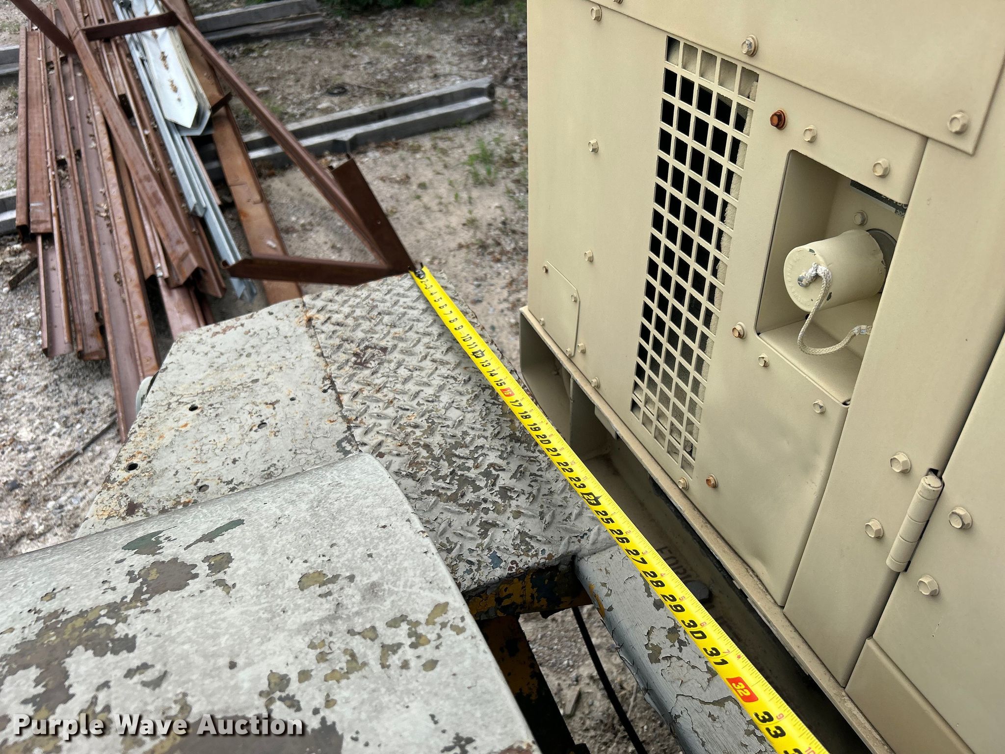 2007 Otan MEP-803A generator. Hours: 1,670 on meter, Serial: F736709. Engine Cylinders: 4, Fuel type: Diesel. Features Generator KW: 10, Phase: Single, Three, Electric start, Fuel tank. Trailer 12' L x 78" W, Hitch: Pintle, Suspension: Spring, Brakes: Electric, Axles: Single, Tire size: 9.00-30. Transfer of ownership documentation will be a bill of sale. Tulsa, OK 74131