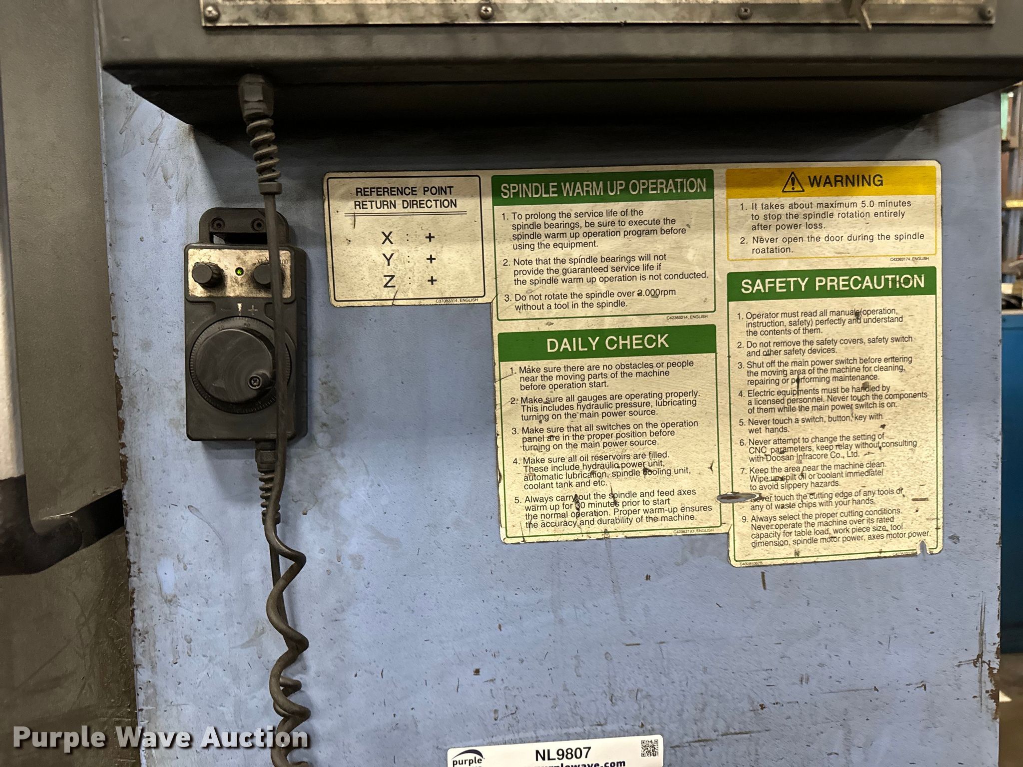 Purple Wave is selling a used Machining Centers in Kansas. This item is a 2007 Doosan MV3016LD vertical machining center with the following: Hours: 761 on meter, Hours: Unknown, Miles or hours may vary, unit still in use, Serial: NM4100959