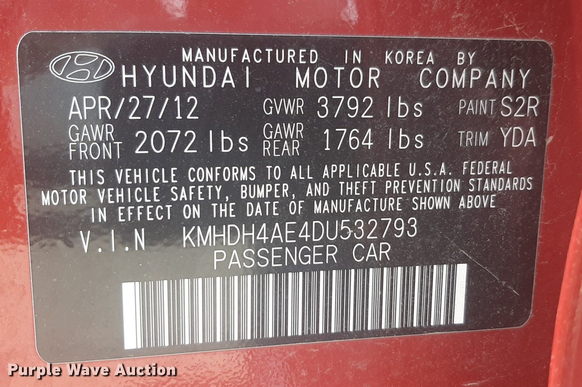 - VIN: KMHDH4AE4DU532793