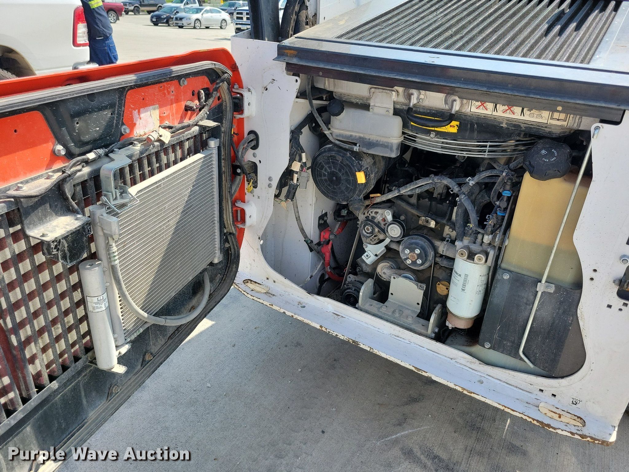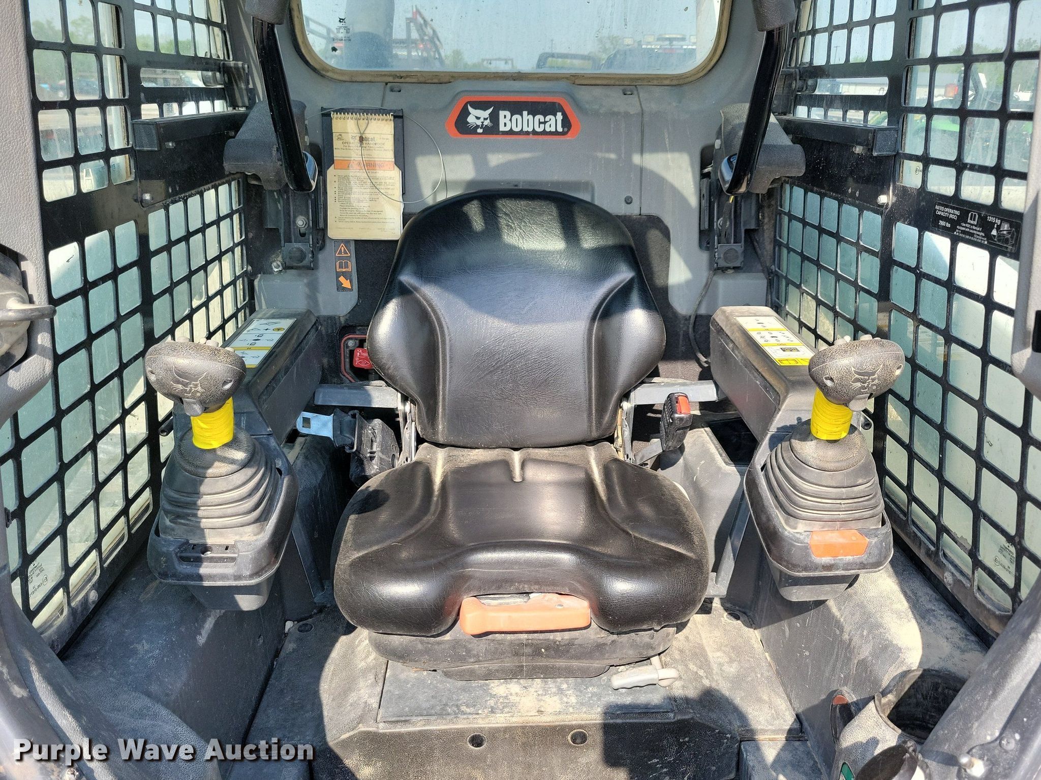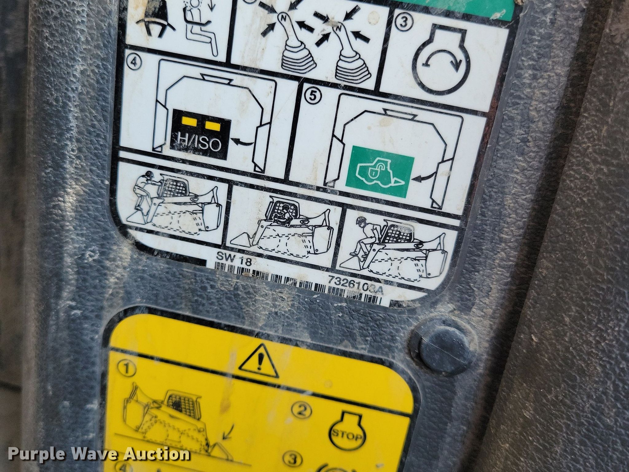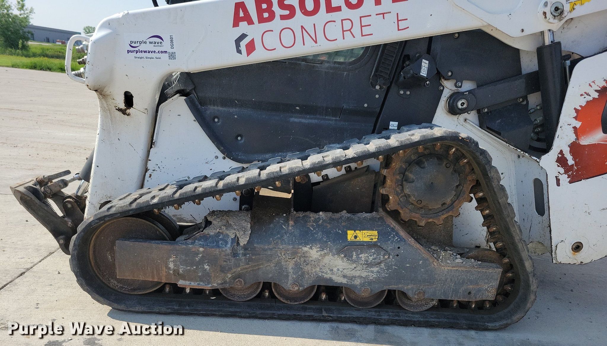 2021 Bobcat T76 tracked skid steer loader. Hours: 2,642 on meter, Serial: B4CE14191. Engine Bobcat, Displacement: 2.4L, Cylinders: 4, Fuel type: Diesel. Transmission Hydrostatic, Two speed travel. Operators station Enclosed cab, AC, Heat, Bucket control: Hand, Pattern changer, Electronic Monitoring System panel. Features Auxiliary hydraulics, Auxiliary electrical outlet, Quick coupler: Hydraulic. Tracks Width: 12". Notes Intermittent hydraulic issues, Door missing. Absolute Group Company. Granger, IA 50109