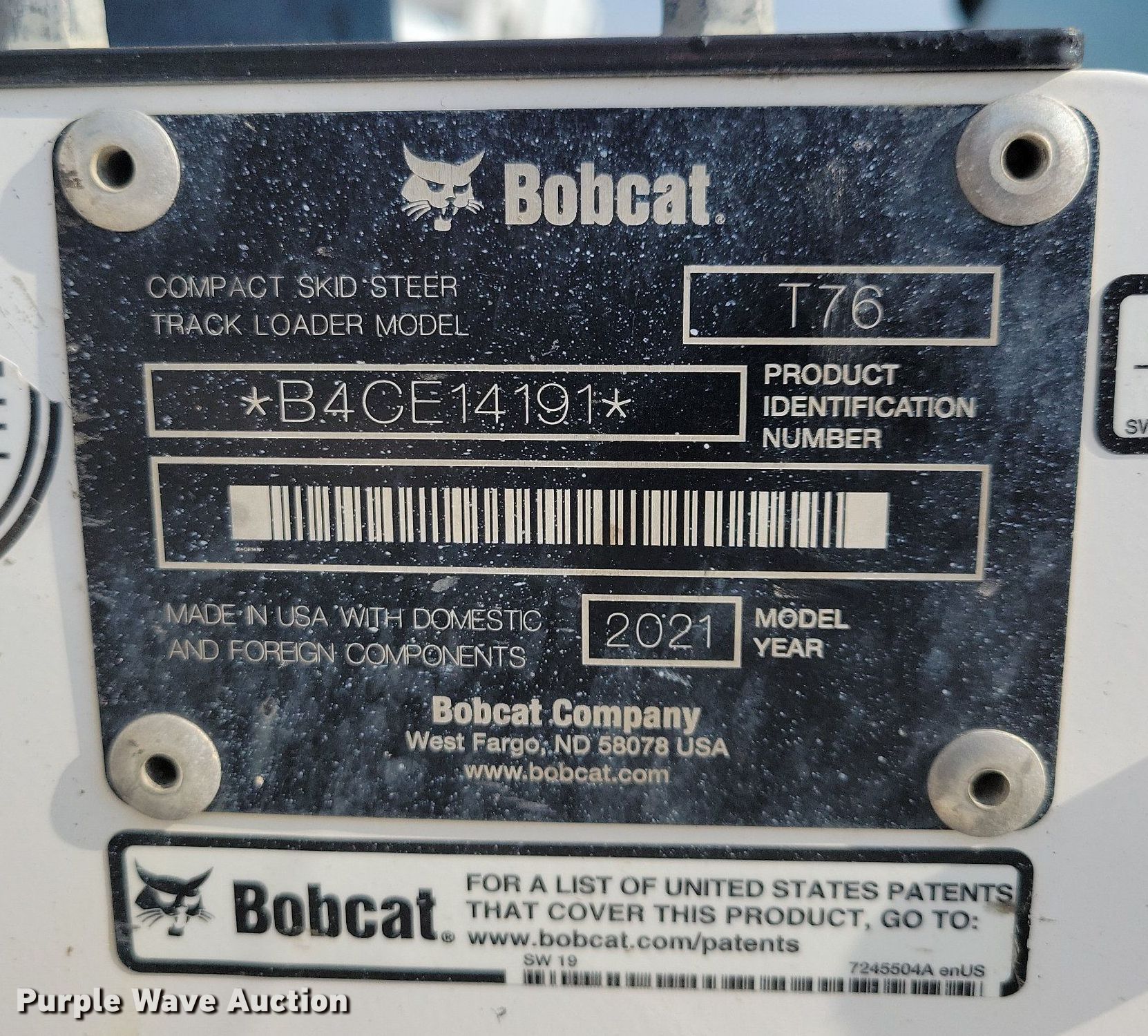 Purple Wave is selling a used Tracked Skid Steer Loader in Iowa. This item is a 2021 Bobcat T76 tracked skid steer loader with the following: Hours: 2,642 on meter, Serial: B4CE14191
