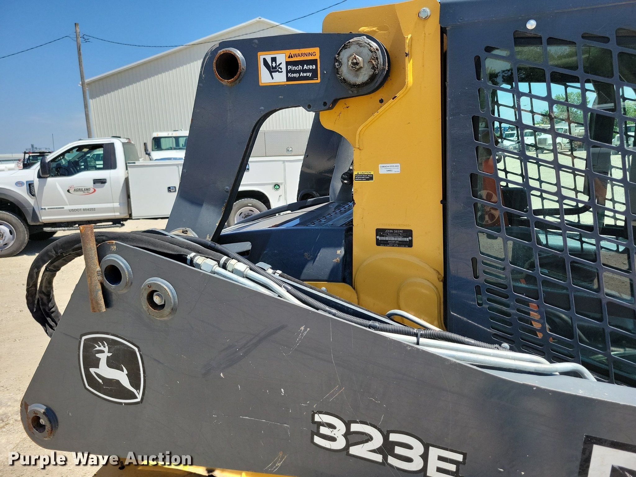 2018 John Deere 323E tracked skid steer loader. Hours: 1,745 on meter, Serial: 1T0323EKVHJ320463. Engine Yanmar 4TNV98CT, Cylinders: 4, Fuel type: Diesel. Transmission Hydrostatic, Two speed travel. Operators station Enclosed cab, AC, Heat, Bucket control: Hand. Features Auxiliary hydraulics, Quick coupler: Hydraulic, Bucket Width: 72", Low profile, Teeth: Weld-on. Tracks Width: 12". Agriland FS. Winterset, IA 50273