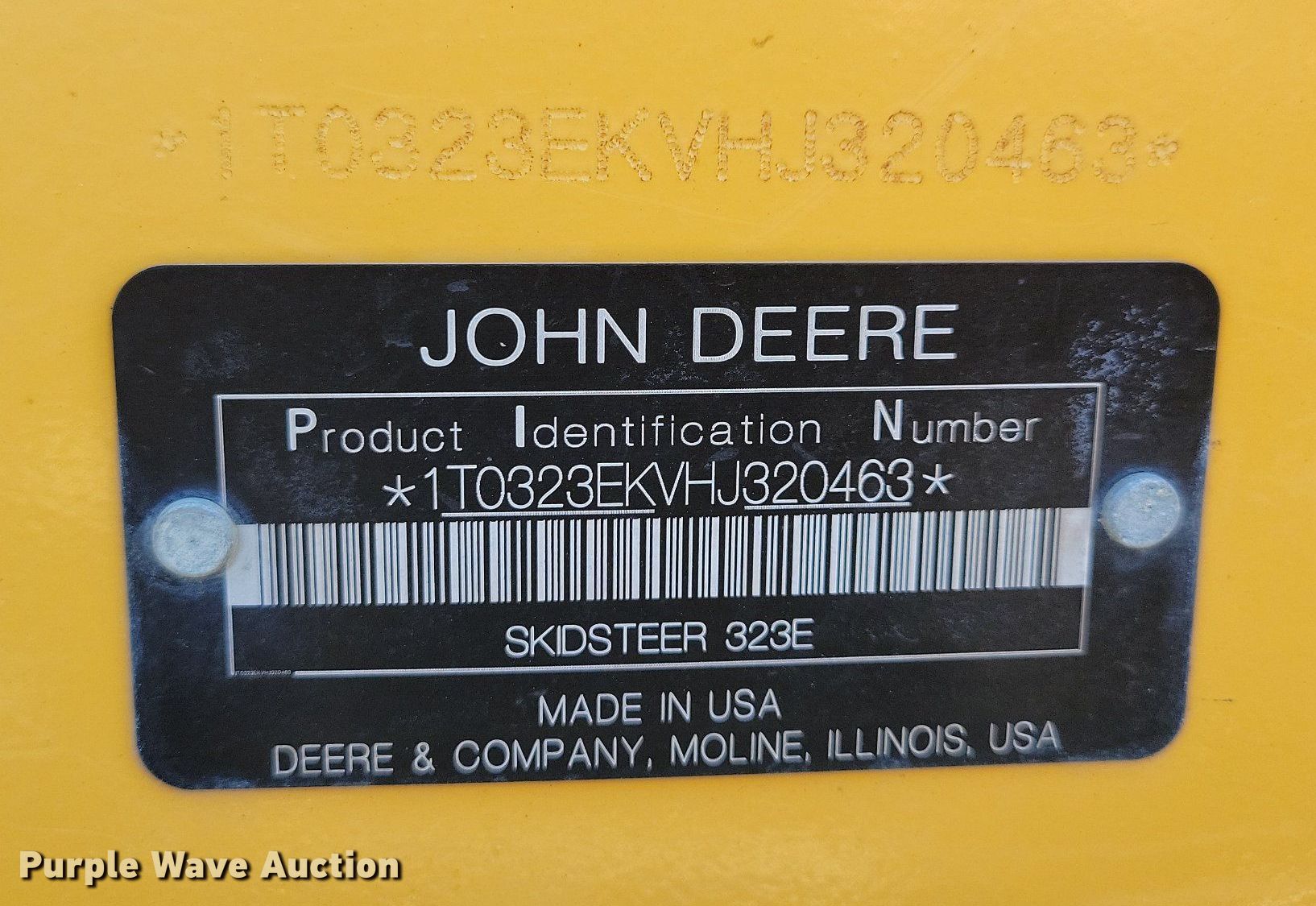 Purple Wave is selling a used Tracked Skid Steer Loader in Iowa. This item is a 2018 John Deere 323E tracked skid steer loader with the following: Hours: 1,745 on meter, Serial: 1T0323EKVHJ320463