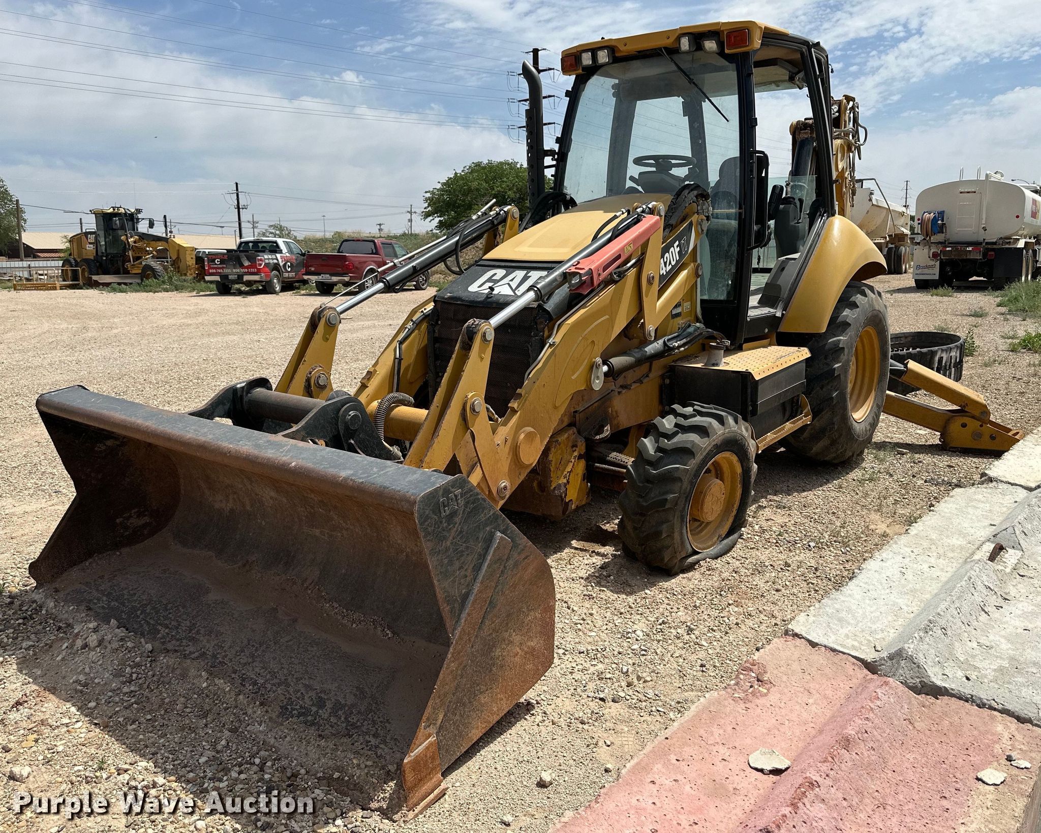 Purple Wave is selling a used Tractor Loader Backhoe in Texas. This item is a 2014 Caterpillar 420FIT backhoe with the following: Hours: 5,698 on meter, Serial: JWJ02232