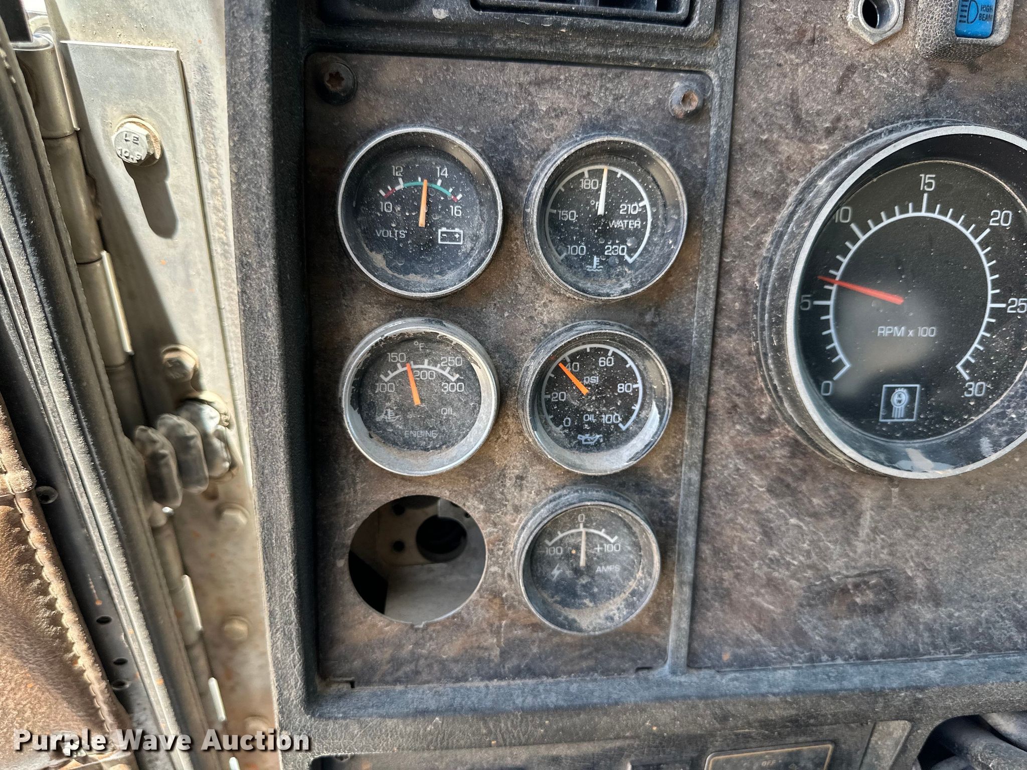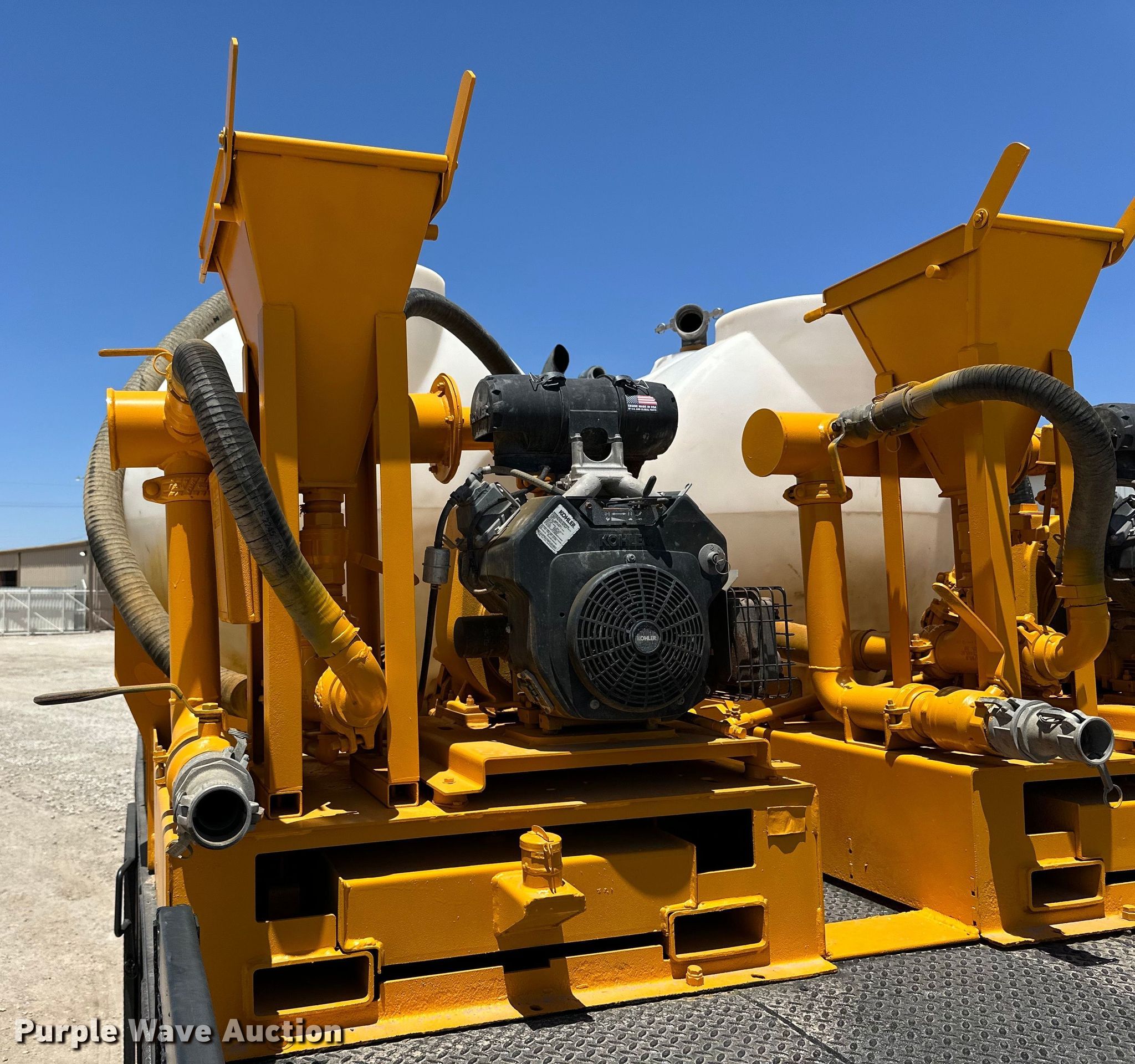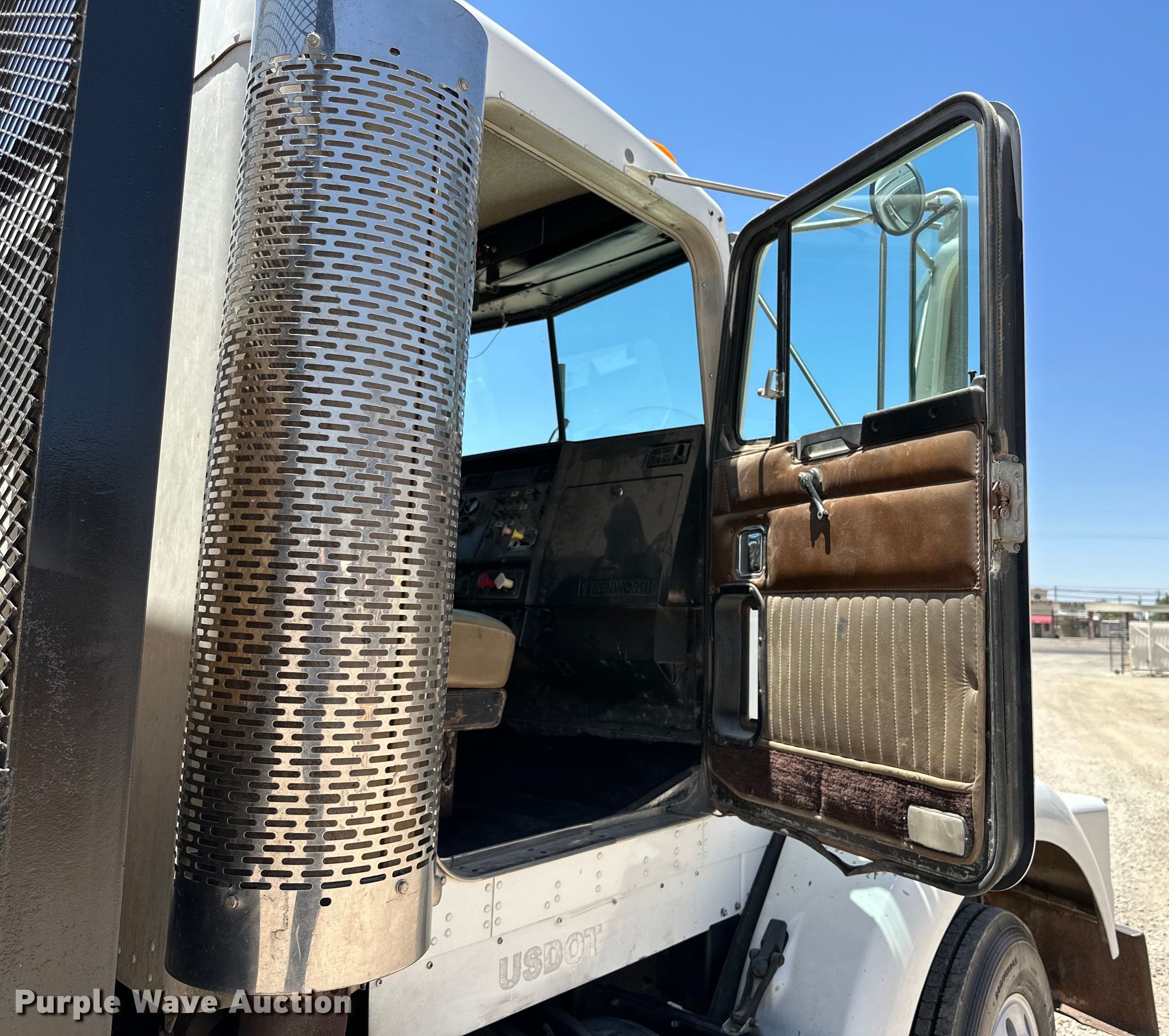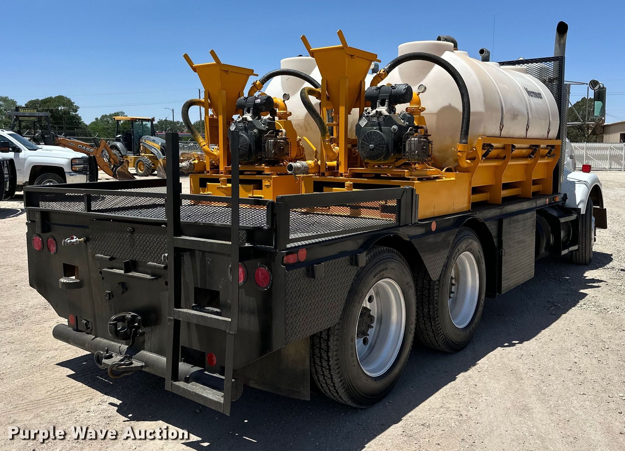 1996 Kenworth T800 flatbed truck with mud mixing system. Miles: 225,693 on odometer, VIN: 1XKDDB9X9TS724638. Engine Caterpillar, Displacement: 14.6L, Cylinders: 6, Fuel type: Diesel. Transmission Manual, Speed: 9. Chassis Axles: Tandem, Differential lock: Inter-axle, Suspension: Air Dump valves, Brakes: Air, PTO. Interior AC, Heat, Heated mirrors, Cruise control, Auxiliary controls. Features Flatbed 17' L x 100" W, (2) Vermeer mud mixing systems Tank capacity: 750 gallons, Kohler two cylinder gasoline engine.. Tires Size: 285/75R24.5. New Mexico title. Shalom Equipment LLC. Hobbs, NM 88240
