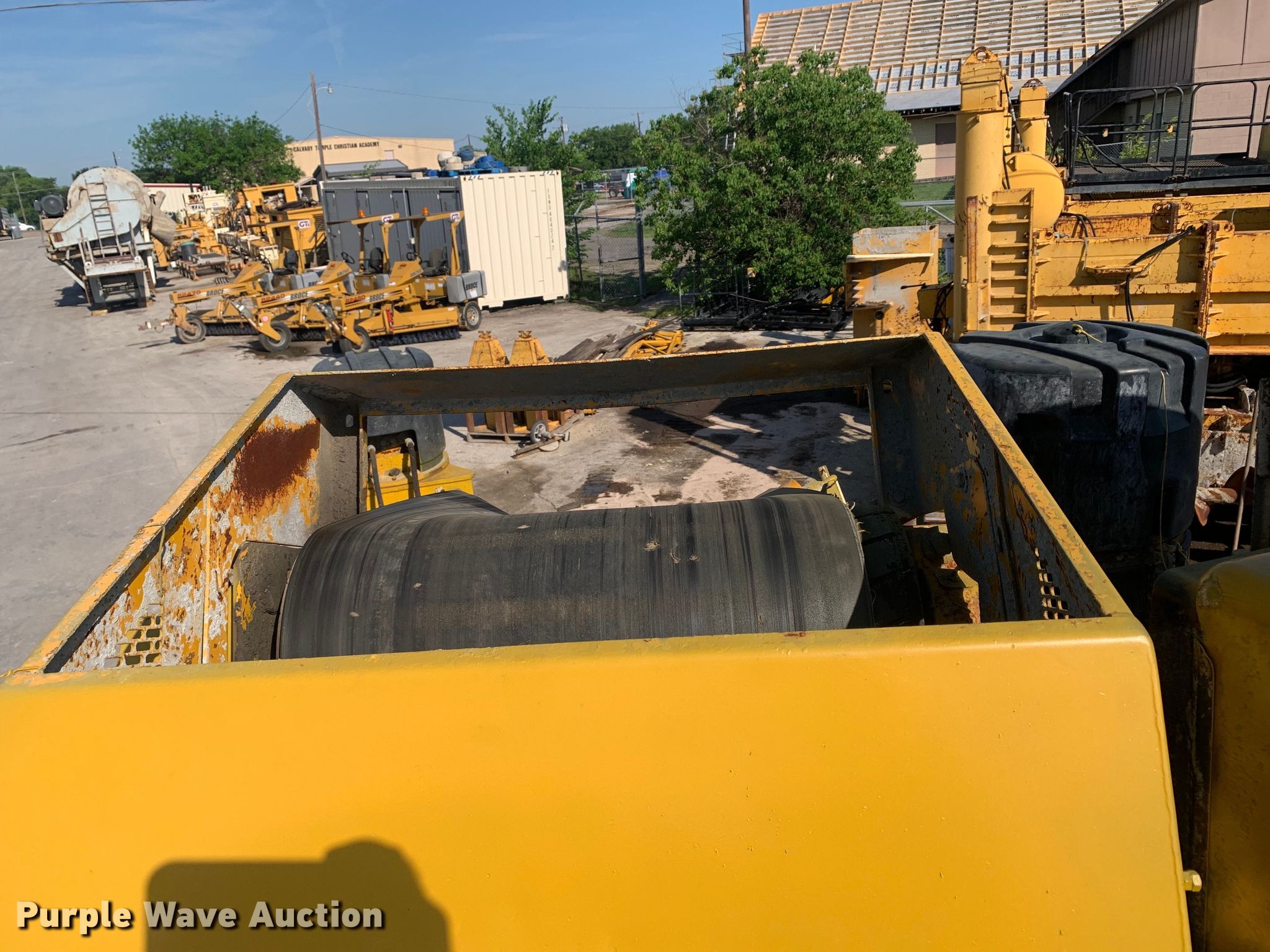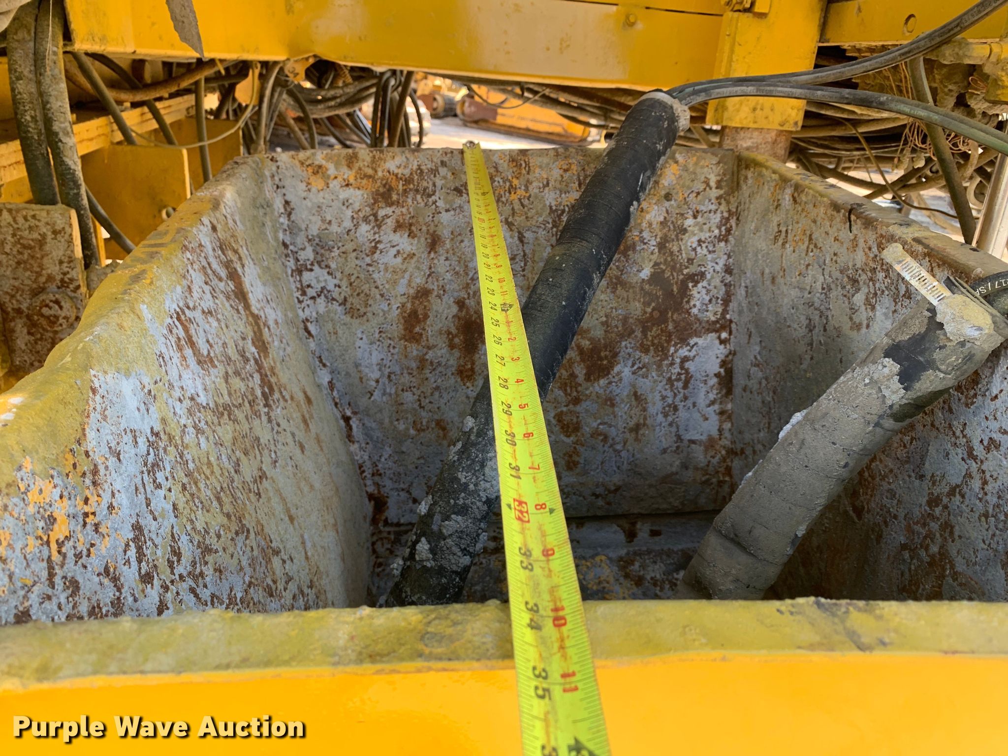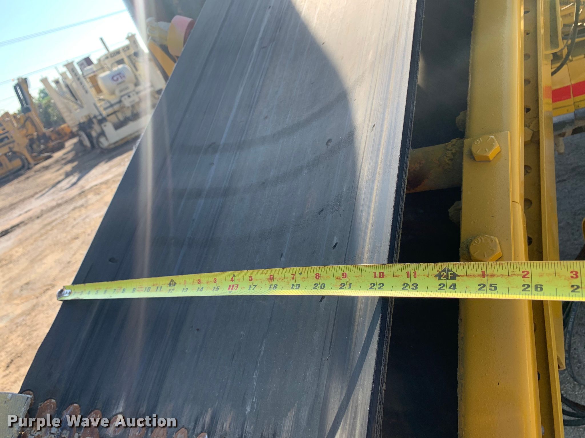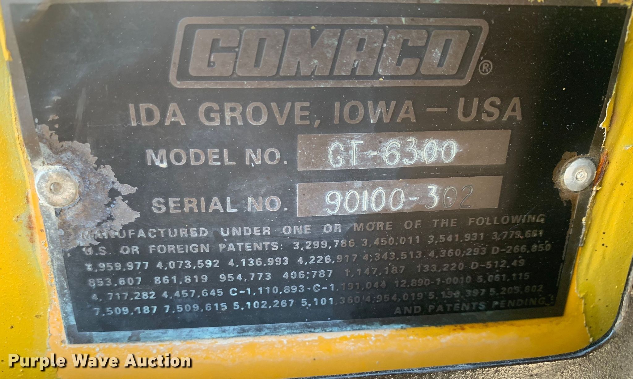 1999 Gomaco GT-6300 Commander III slip form paver. Hours: 6,275 on meter, Serial: 90100-302. Engine Cylinders: 6, Fuel type: Diesel. Transmission Hydrostatic, Two speed travel. Features Cutting head Width: 40", Auger Length: 16", Diameter: 12", Hopper 34" L x 24" W, Conveyor 19' L x 24" W, Additional features Slope controls, Telescoping frame. Tracks Width: 12", Steel, Rubber pads, Grouser pads: Single. Notes Front track lift hydraulic cylinder fluid leak. GTI Shop. Balch Springs, TX 75180