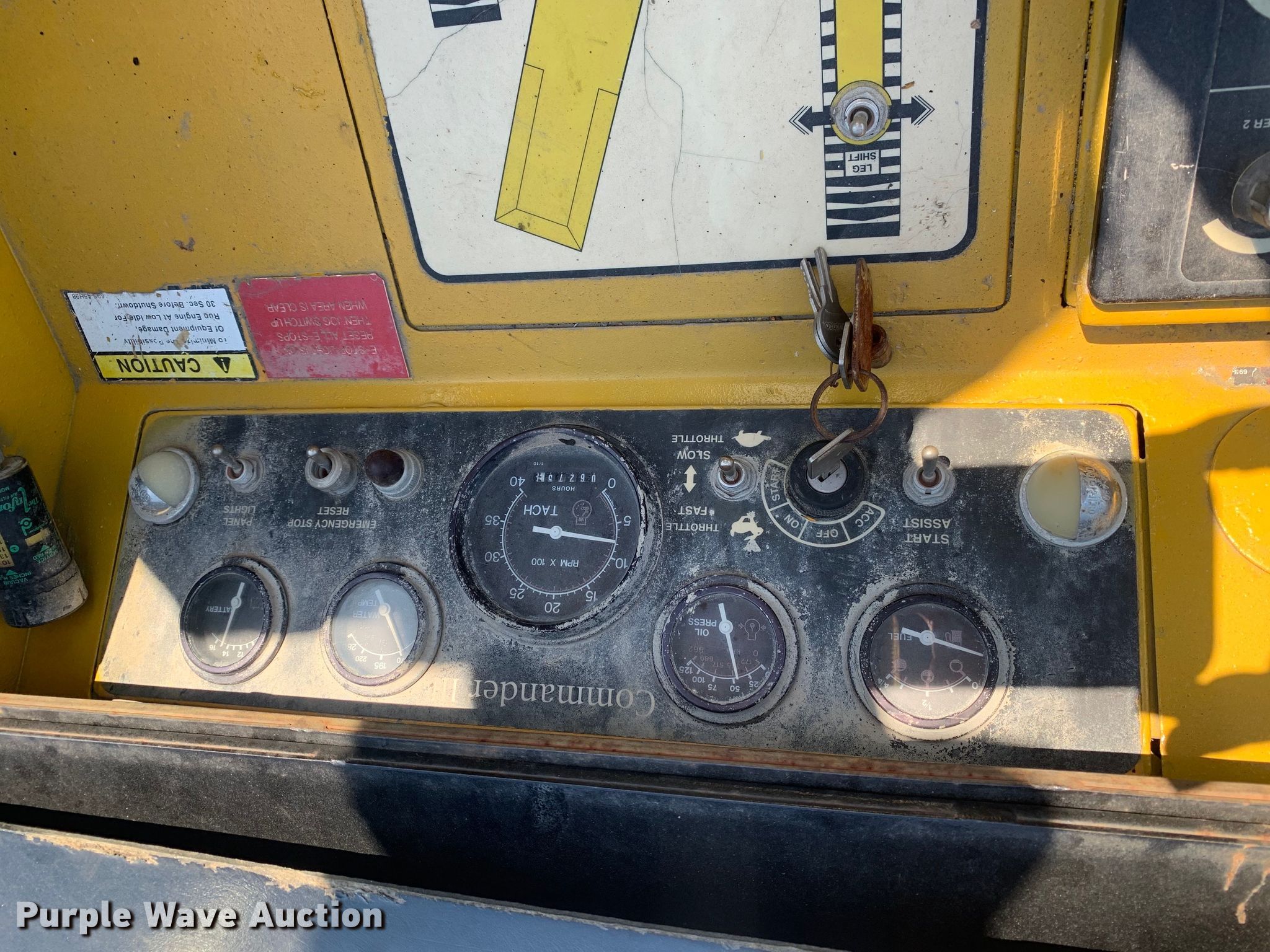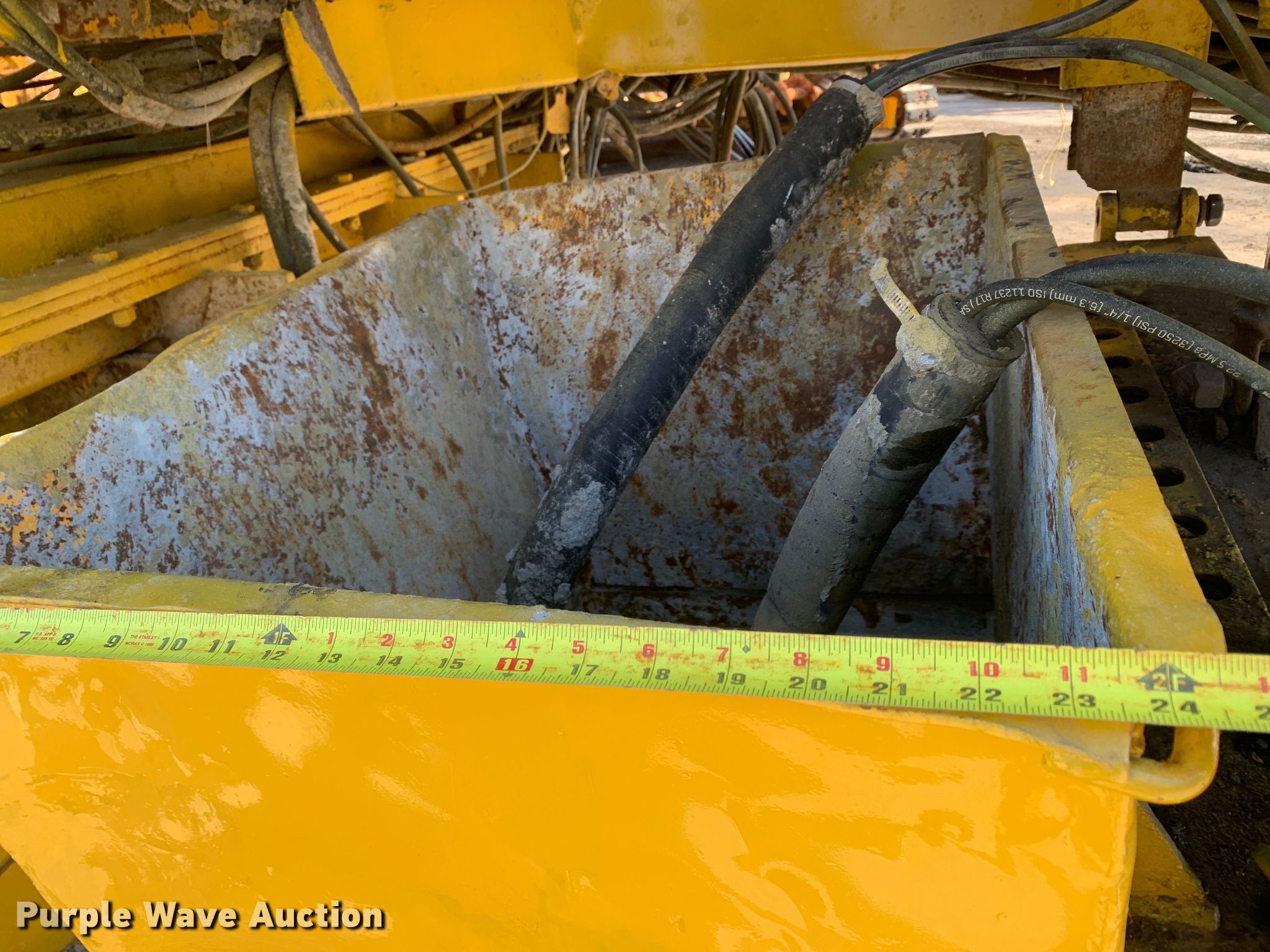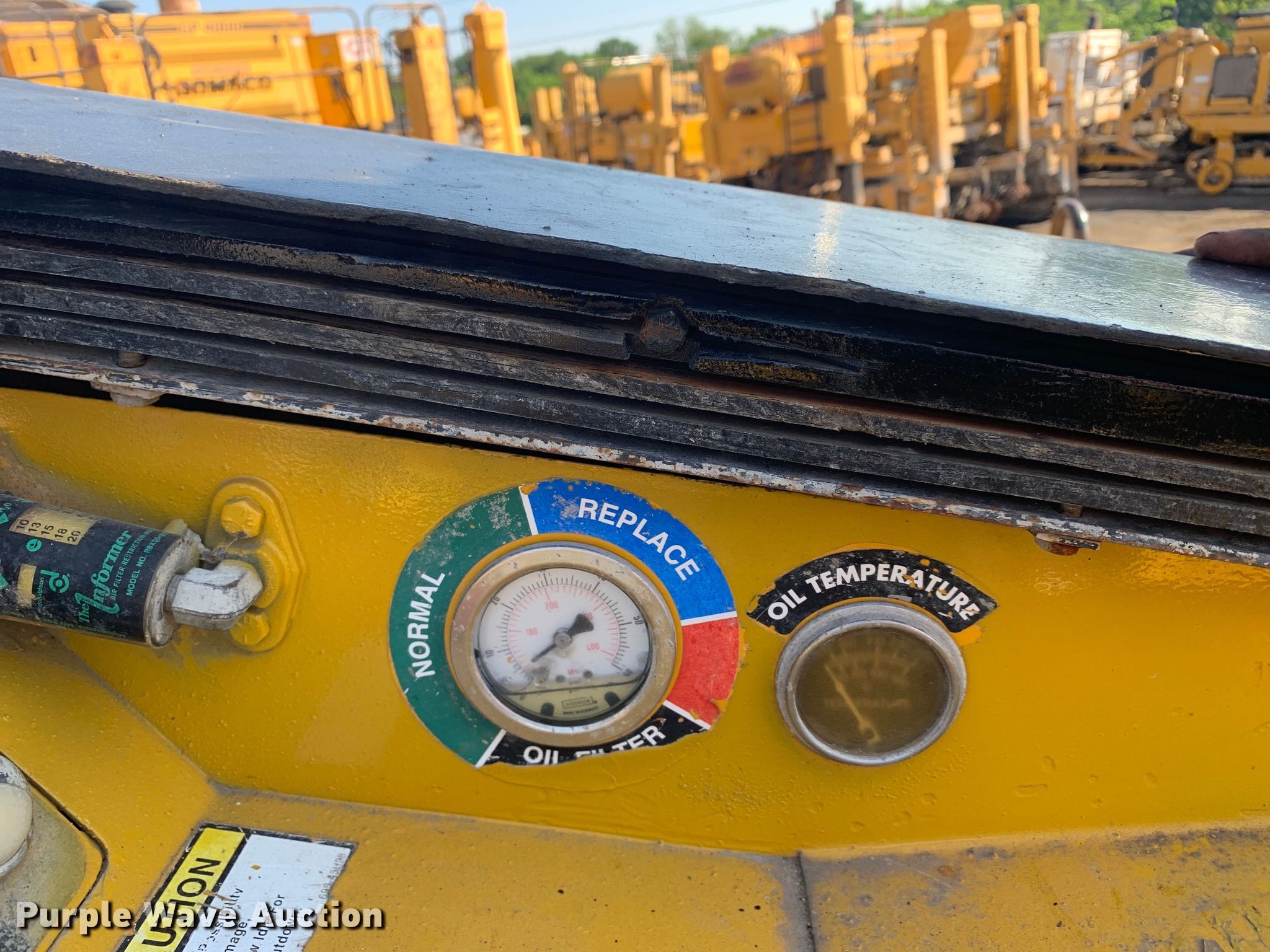 1999 Gomaco GT-6300 Commander III slip form paver. Hours: 6,275 on meter, Serial: 90100-302. Engine Cylinders: 6, Fuel type: Diesel. Transmission Hydrostatic, Two speed travel. Features Cutting head Width: 40", Auger Length: 16", Diameter: 12", Hopper 34" L x 24" W, Conveyor 19' L x 24" W, Additional features Slope controls, Telescoping frame. Tracks Width: 12", Steel, Rubber pads, Grouser pads: Single. Notes Front track lift hydraulic cylinder fluid leak. GTI Shop. Balch Springs, TX 75180
