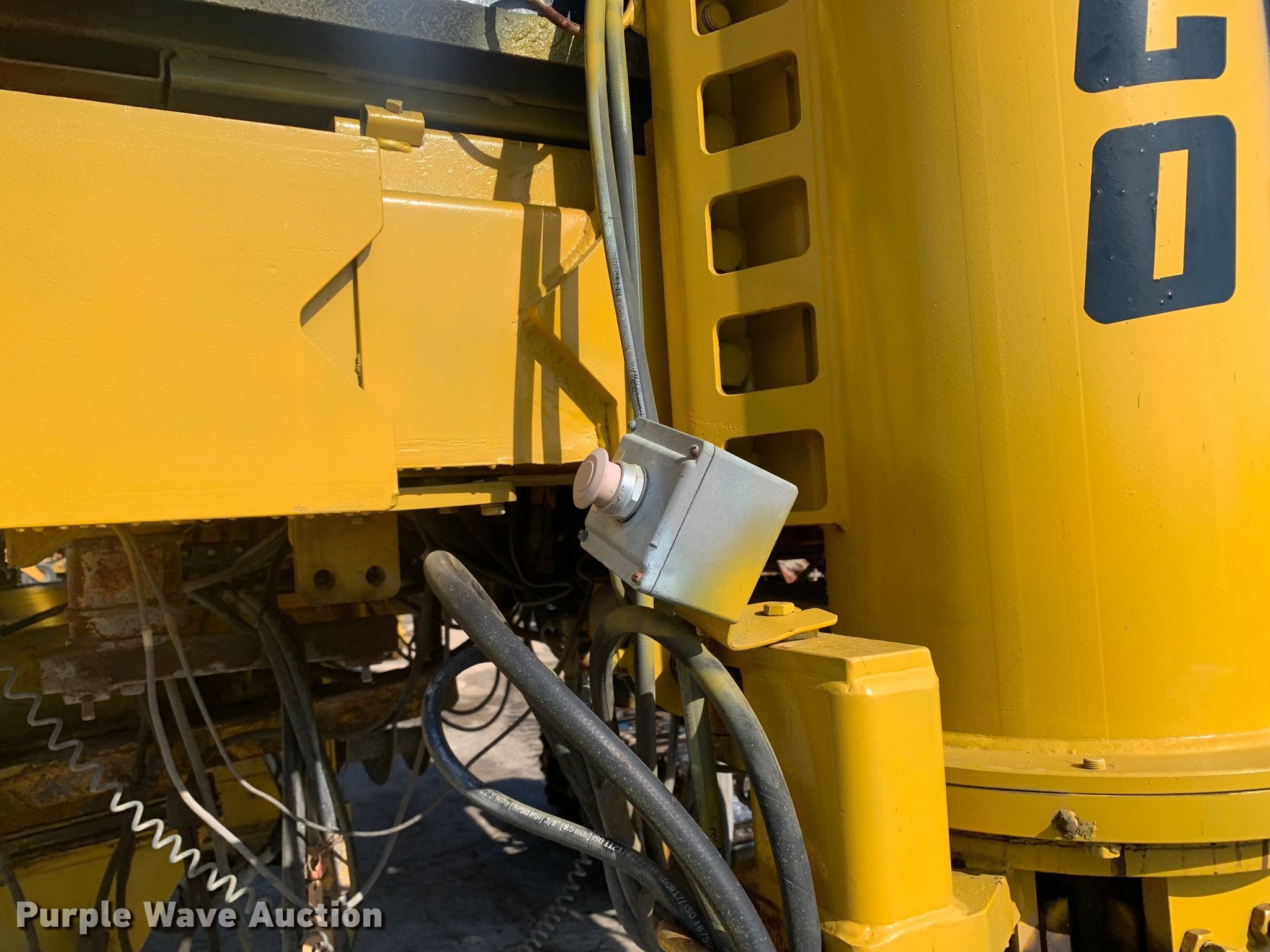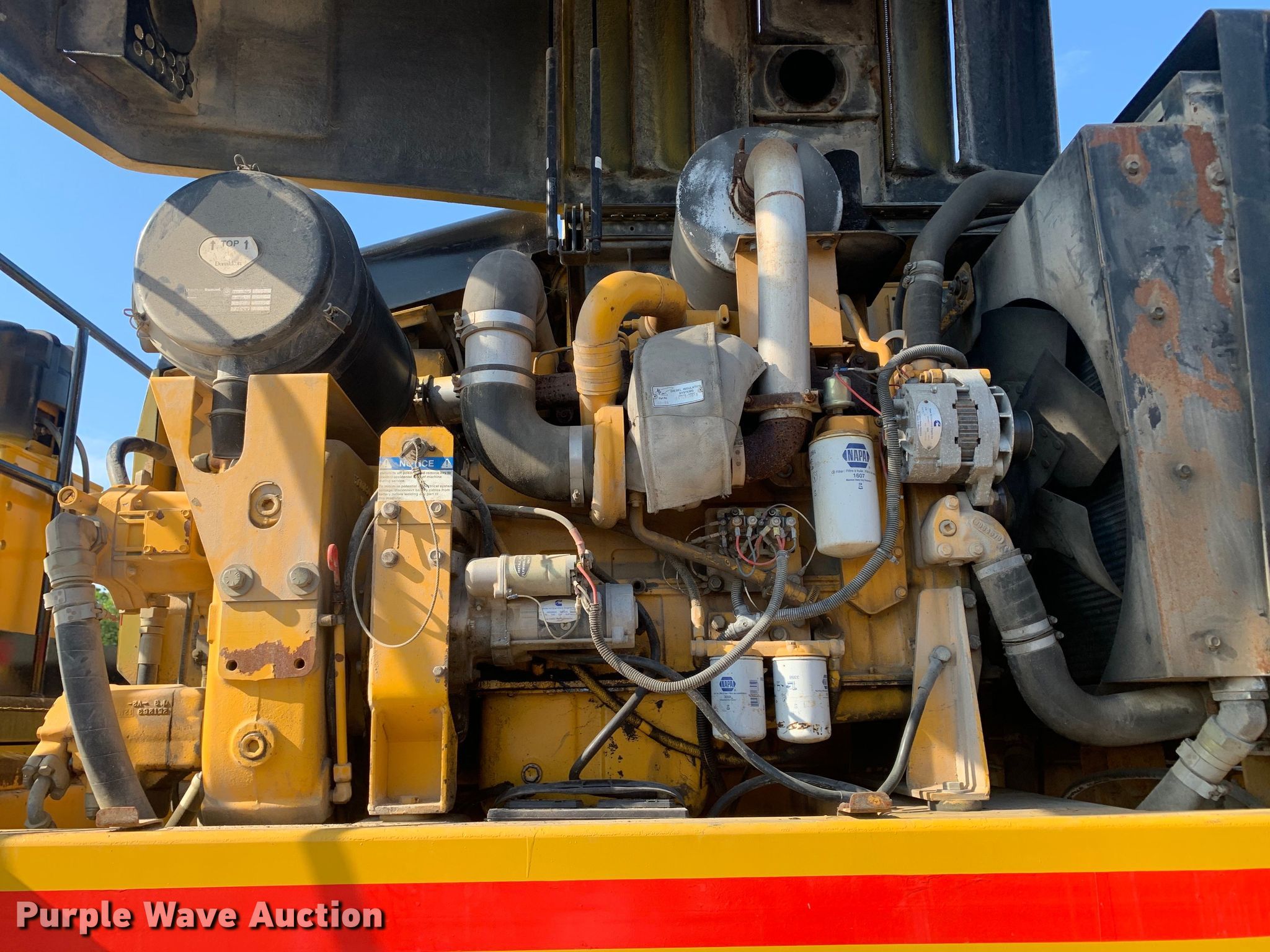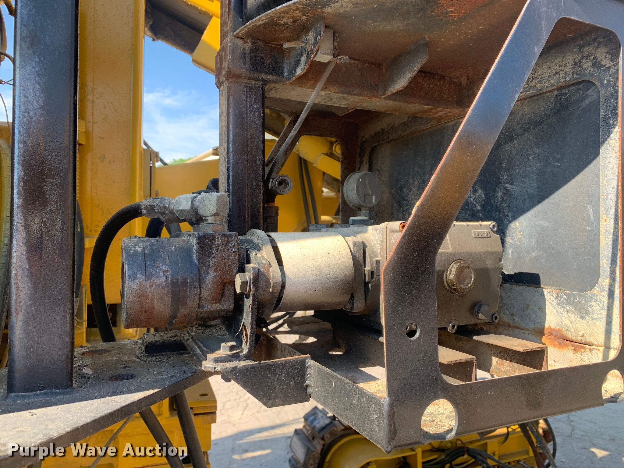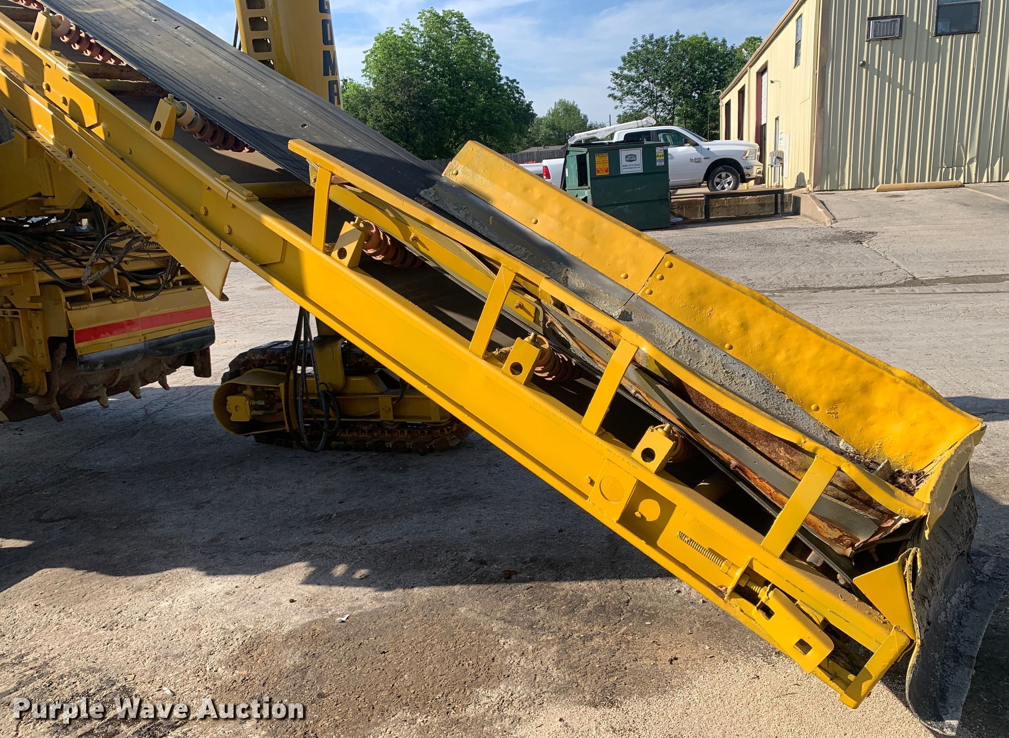 1999 Gomaco GT-6300 Commander III slip form paver. Hours: 6,275 on meter, Serial: 90100-302. Engine Cylinders: 6, Fuel type: Diesel. Transmission Hydrostatic, Two speed travel. Features Cutting head Width: 40", Auger Length: 16", Diameter: 12", Hopper 34" L x 24" W, Conveyor 19' L x 24" W, Additional features Slope controls, Telescoping frame. Tracks Width: 12", Steel, Rubber pads, Grouser pads: Single. Notes Front track lift hydraulic cylinder fluid leak. GTI Shop. Balch Springs, TX 75180