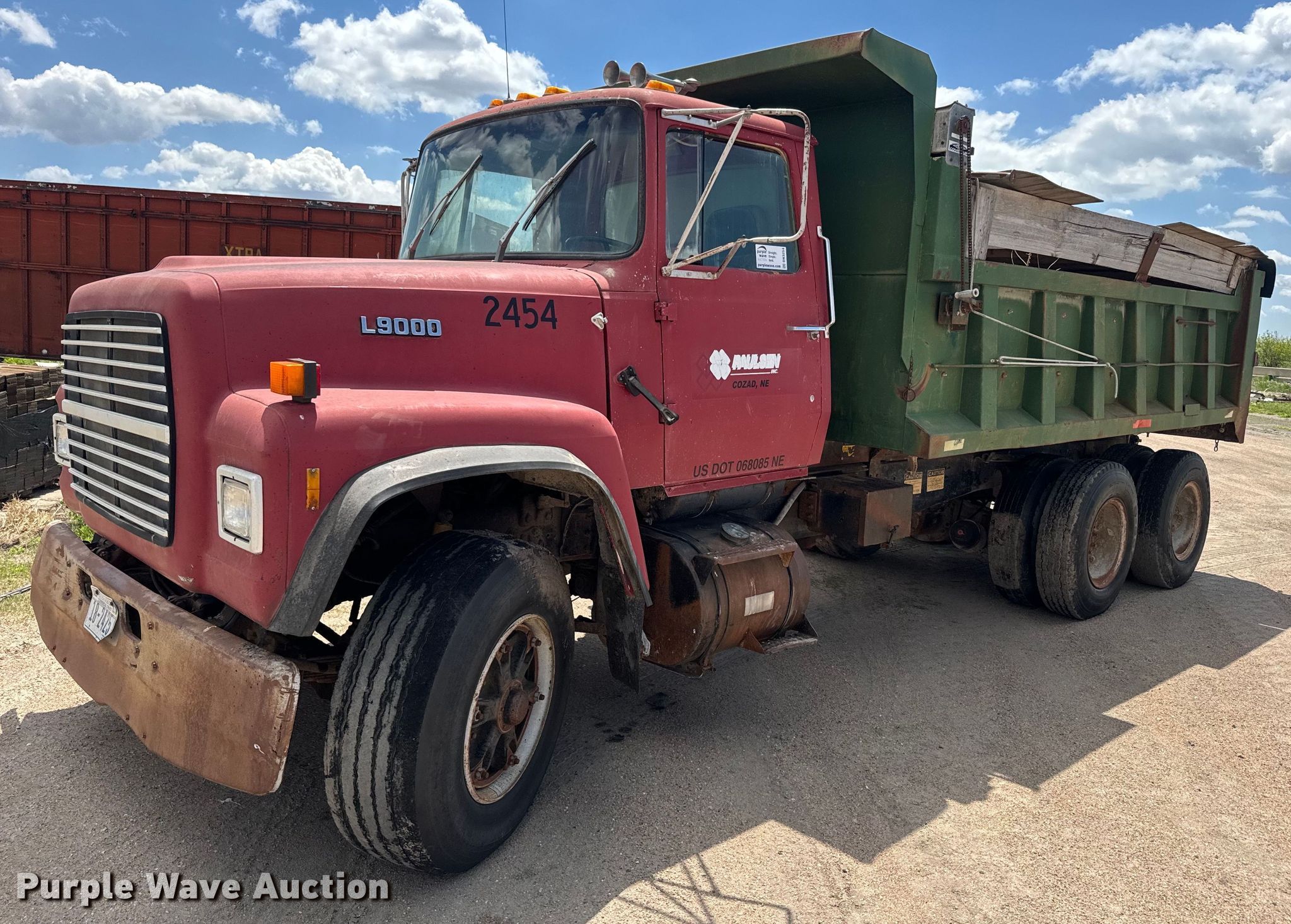 Purple Wave is selling a used Construction Dump Truck in Nebraska. This item is a 1989 Ford LT9000 dump truck with the following: Miles: 586,090 on odometer, Hours: 8,929 on meter, VIN: 1FDYU90L3KVA41813