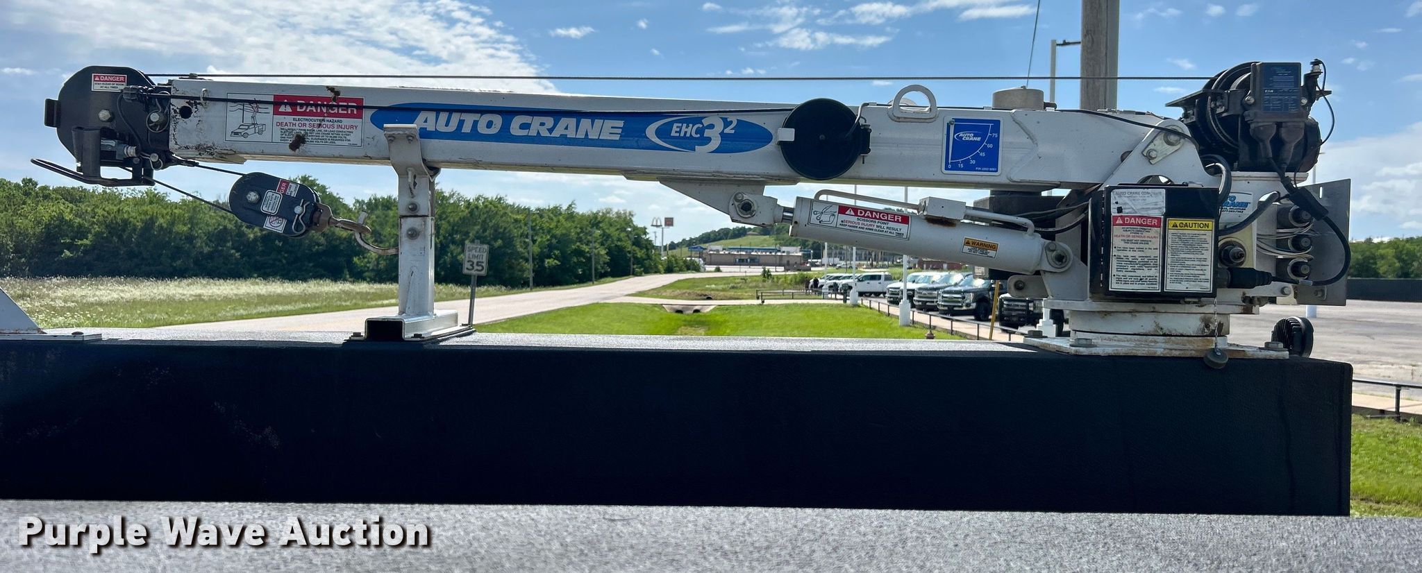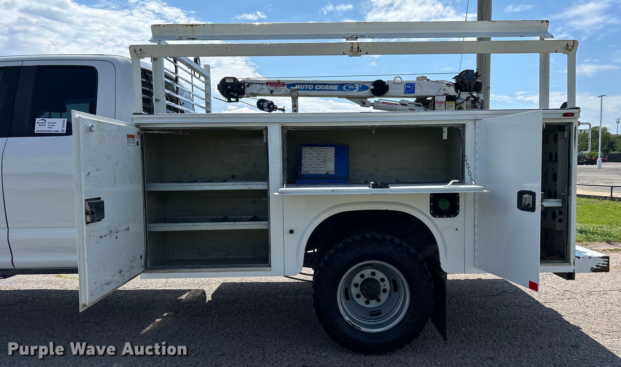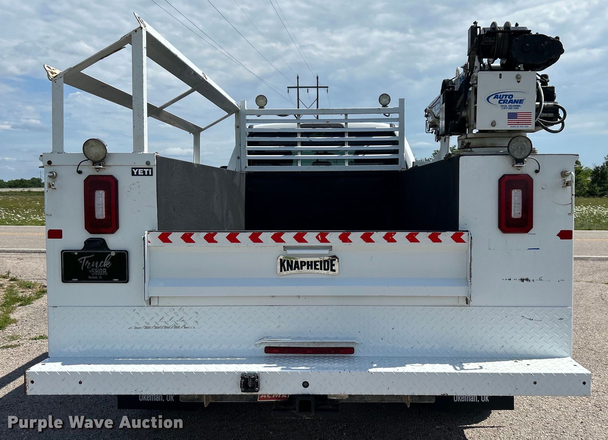 2019 Ford F350 Super Duty XL SuperCab utility bed pickup truck. Miles: 185,387 on odometer, VIN: 1FD8X3HT2KEE06622. Engine Displacement: 6.7L V8 OHV, Cylinders: 8, Fuel type: Diesel. Transmission Automatic. Chassis Four wheel drive, Axles: Single, Suspension: Spring, Brakes: Hydraulic. Interior AC, Heat, Heated mirrors, Power windows, Power locks, Cruise control, Auxiliary controls, Brake controller. Features Bed Knapheide, 9' L x 94" W, Crane Auto Crane EHC32, Maximum boom length: 15'4" Maximum lift capacity: 3,200 lbs.. Tires Size: LT245/85R17. Oklahoma title. The Truck Shop. Okemah, OK 74859