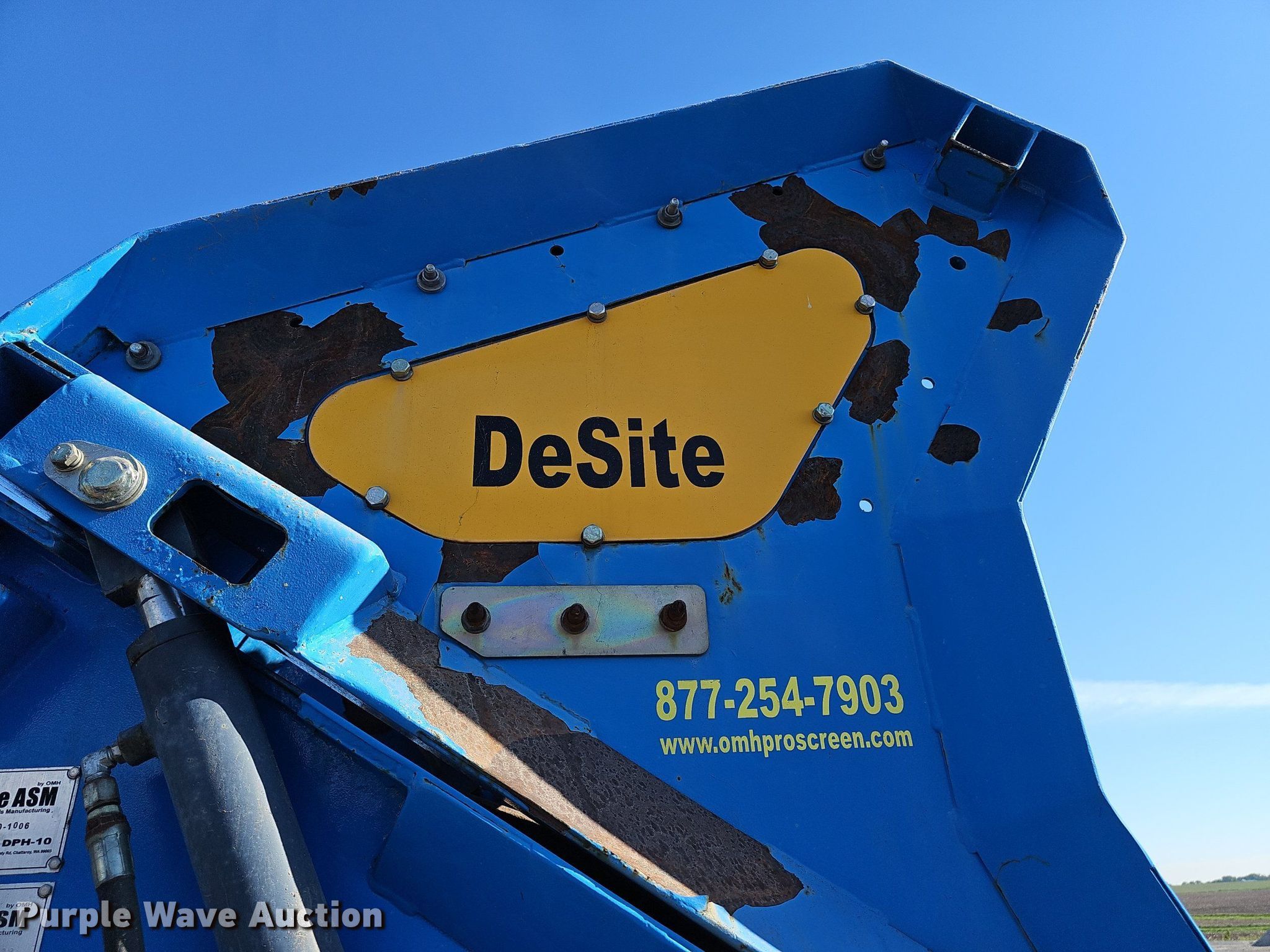 2013 DeSite DPH-10 vibratory screen. Hours: 29 on meter, Serial: DS-10-1006, Dimensions: 10' 6" L x 72" W x 115" H. Engine Cylinders: 1, Fuel type: Diesel. Features Screen deck Length: 114", Width: 36", Decks: Single, Screen size Top:.5", Input hopper Length: 118", Width: 40". Notes Additional screens Width:.75", Width: 2". Mc Bride Trucking. Fairbury, NE 68352