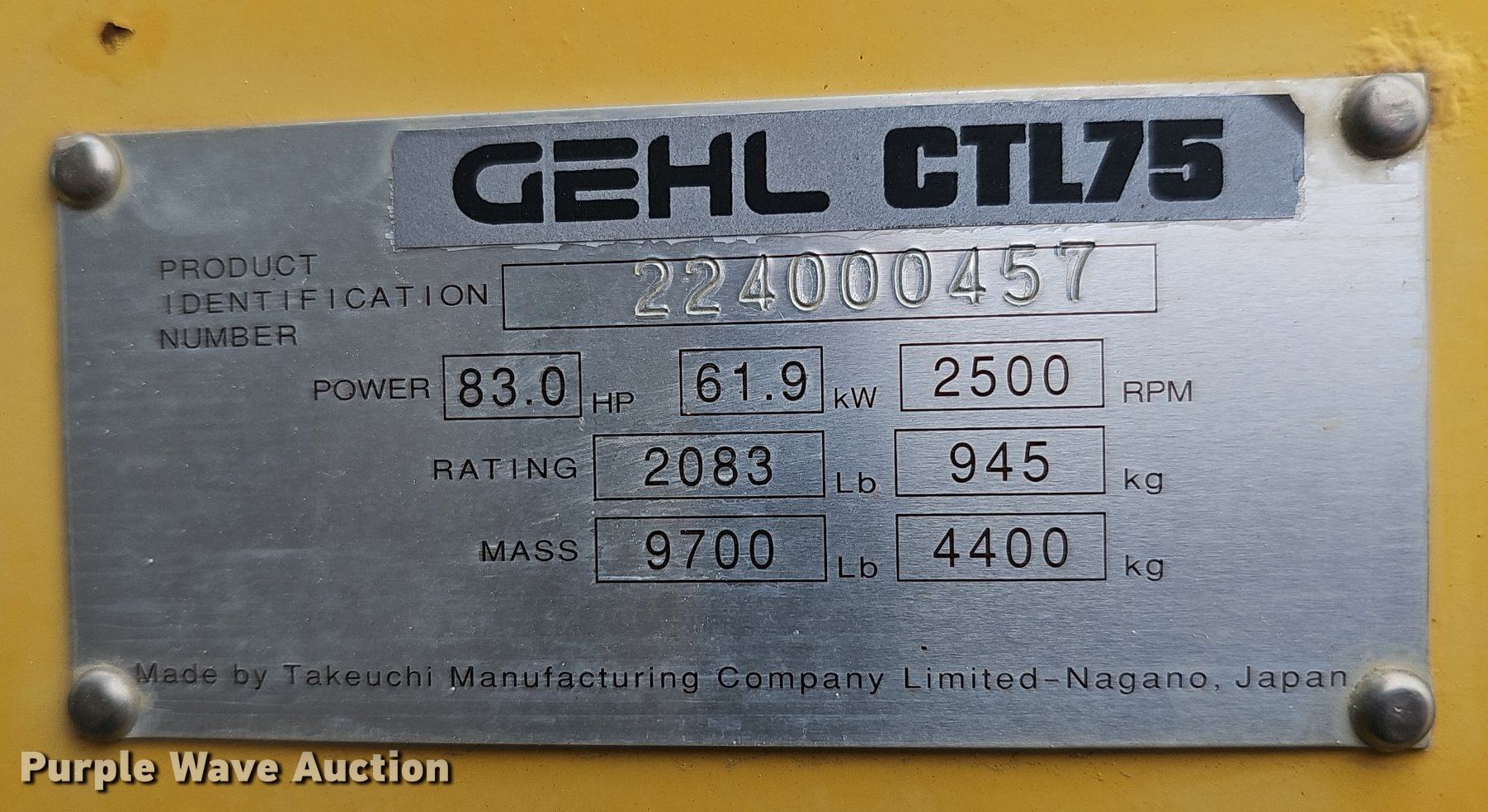 Purple Wave is selling a used Tracked Skid Steer Loader in Nebraska. This item is a 2010 Gehl CTL75 tracked skid steer loader with the following: Hours: 2,743 on meter, Serial: 224000457