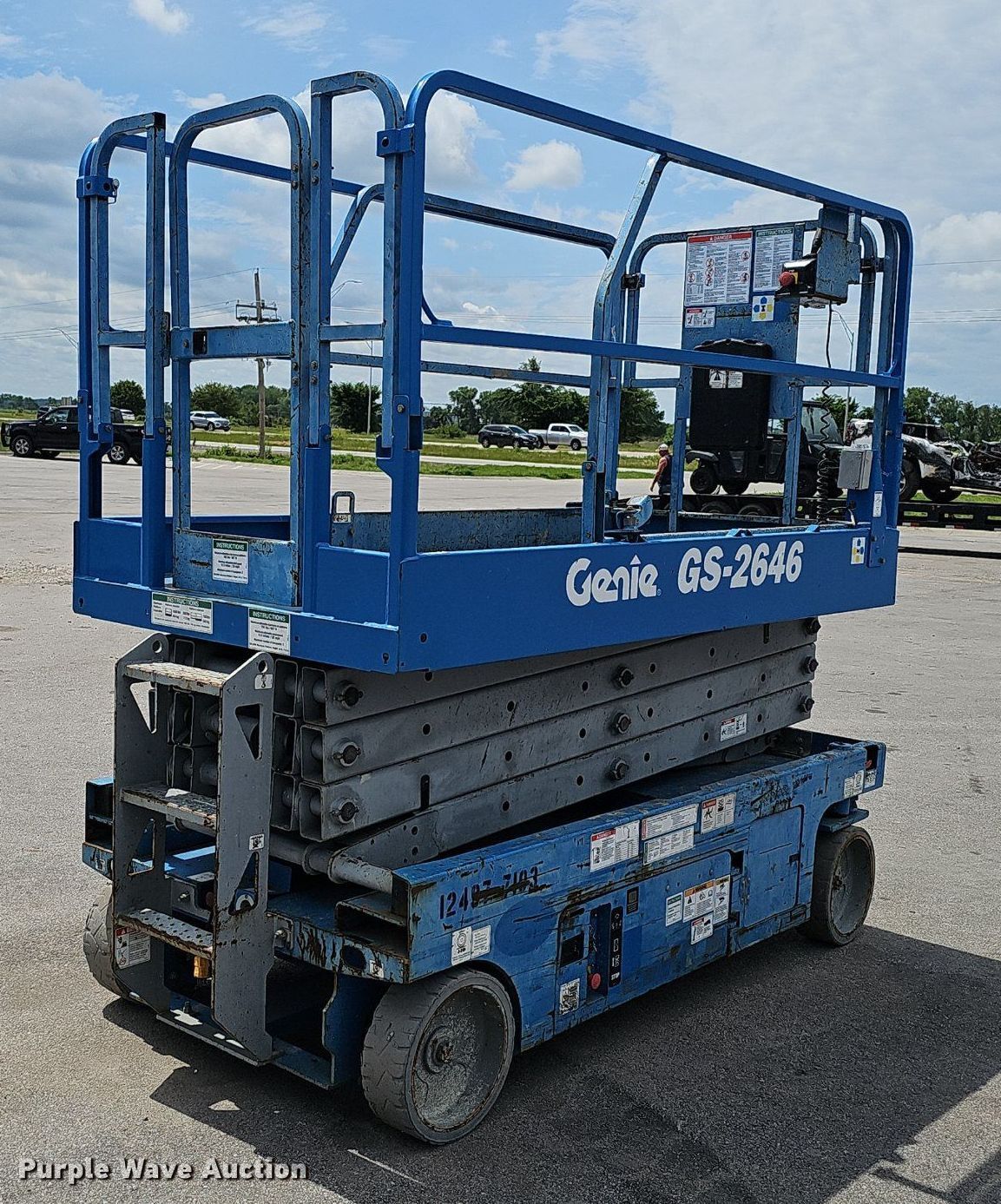 Purple Wave is selling a used Scissor or Vertical Lift in Nebraska. This item is a 2011 Genie GS-2646 scissor lift with the following: Hours: 408 on meter, Serial: GS4611A-97708