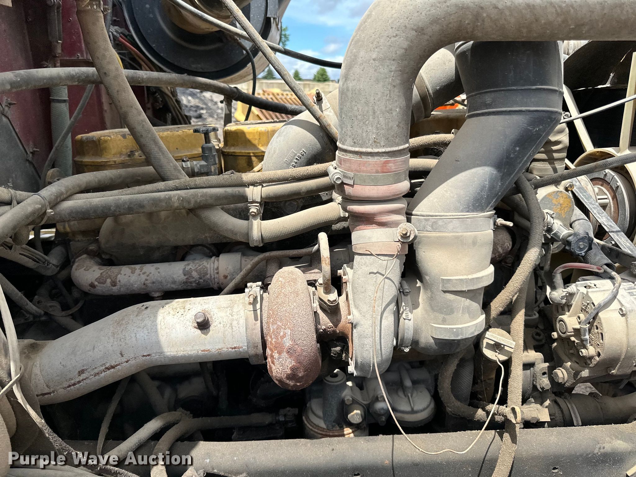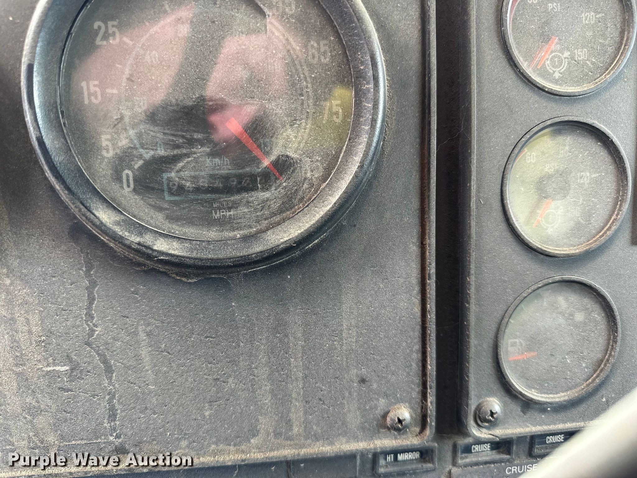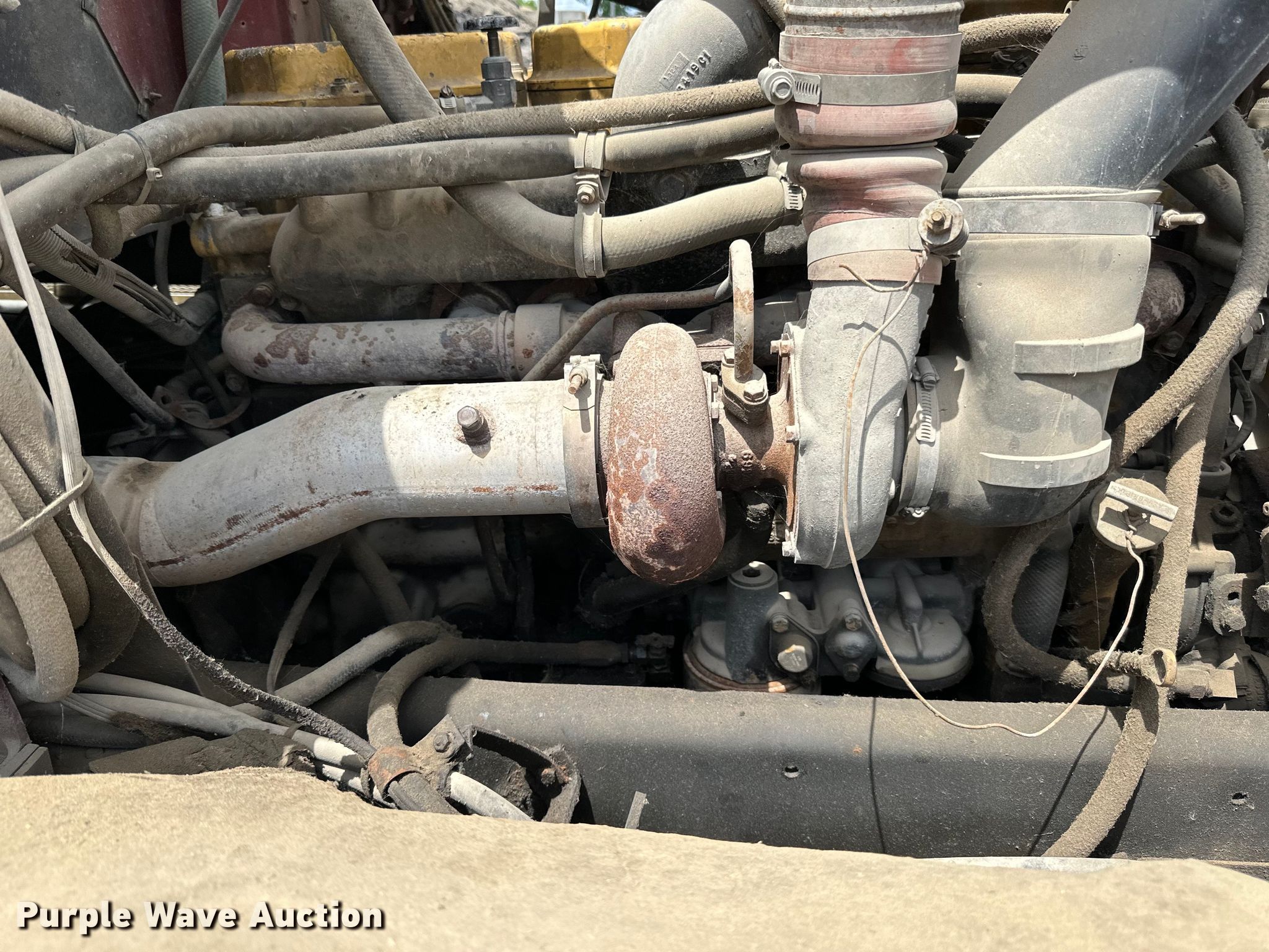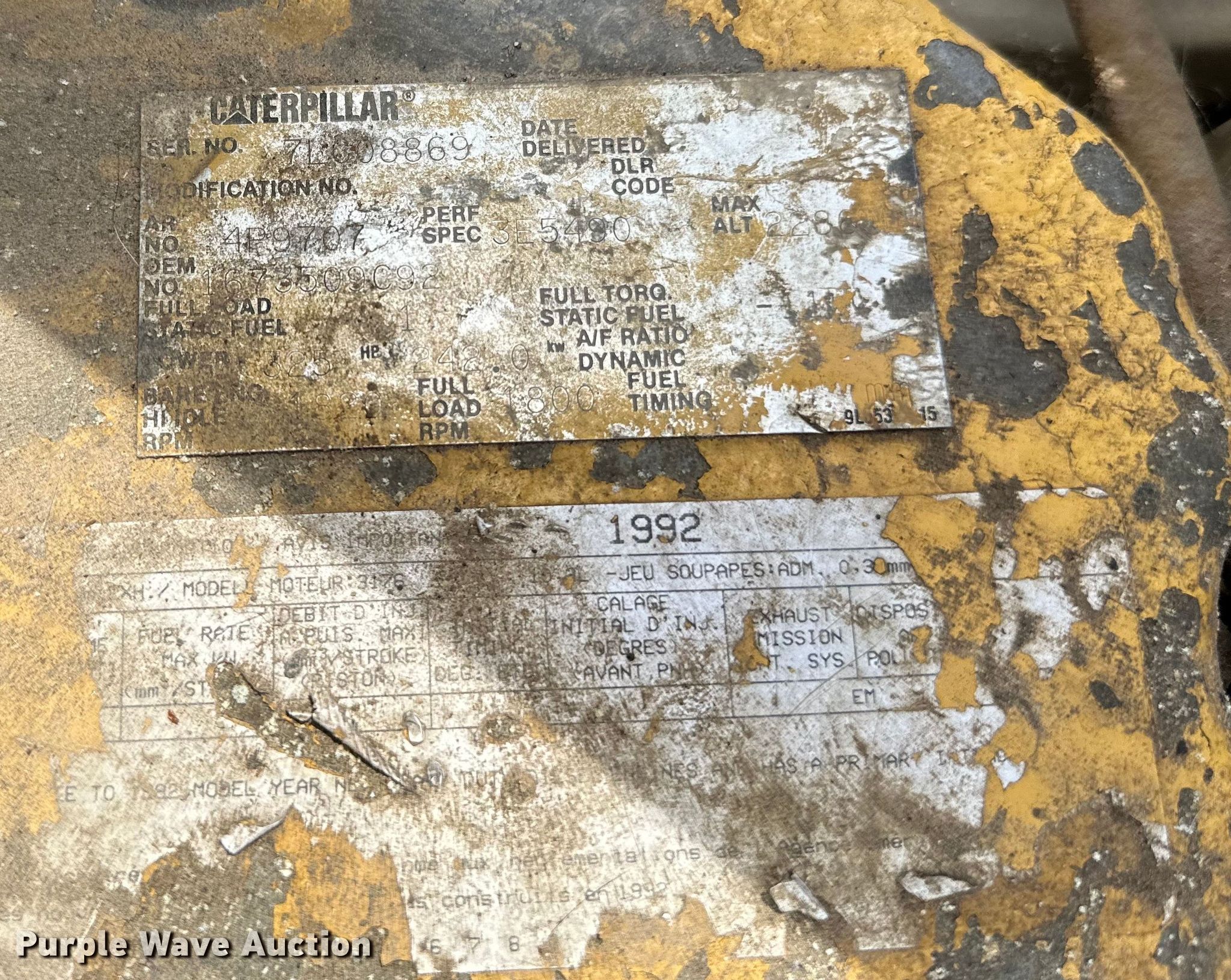 1992 International 9200 dump truck. Miles: 948,493 on odometer, VIN: 2HSFHLKR6NC062526. Engine Caterpillar 3176, Serial: 7LCO8869, Displacement: 10.3L, Cylinders: 6, Fuel type: Diesel, Engine brake. Transmission Spicer, Speed: 10. Chassis Axles: Tandem, Differential lock: Inter-axle, Suspension: Air Dump valves, Brakes: Air, PTO. Interior AC, Heat. Features Dump bed 16' L x 8' W, Side height: 46", Side board height: 5", Bed type: Steel, Roll tarp, Ram: Single, End gate: Air operated. Tires Front: 315/80R22.5, Rear: 11R22.5. Notes Dead battery, Non-operational unit. Minnesota title. Roger & Sons. Austin, MN 55912