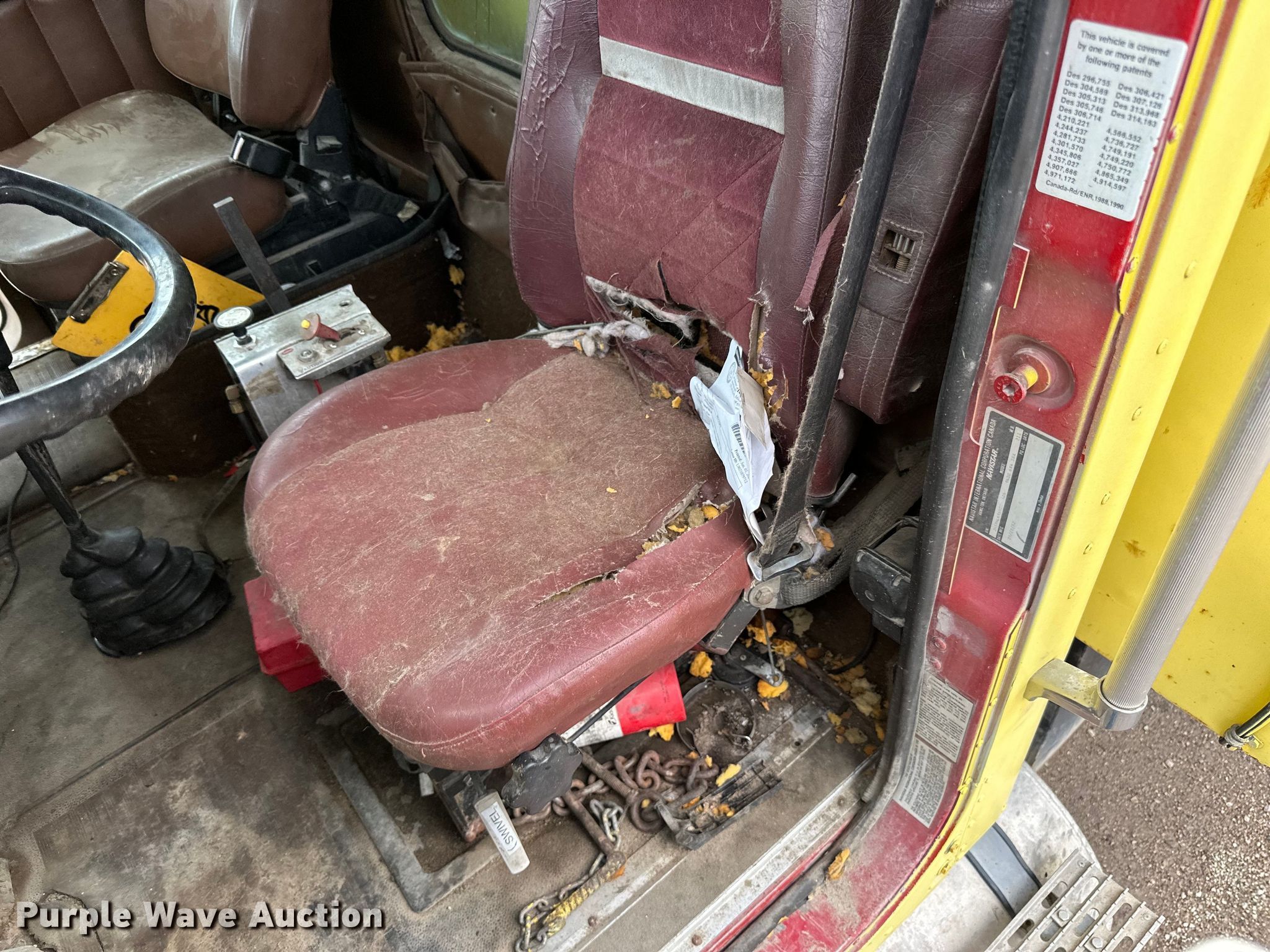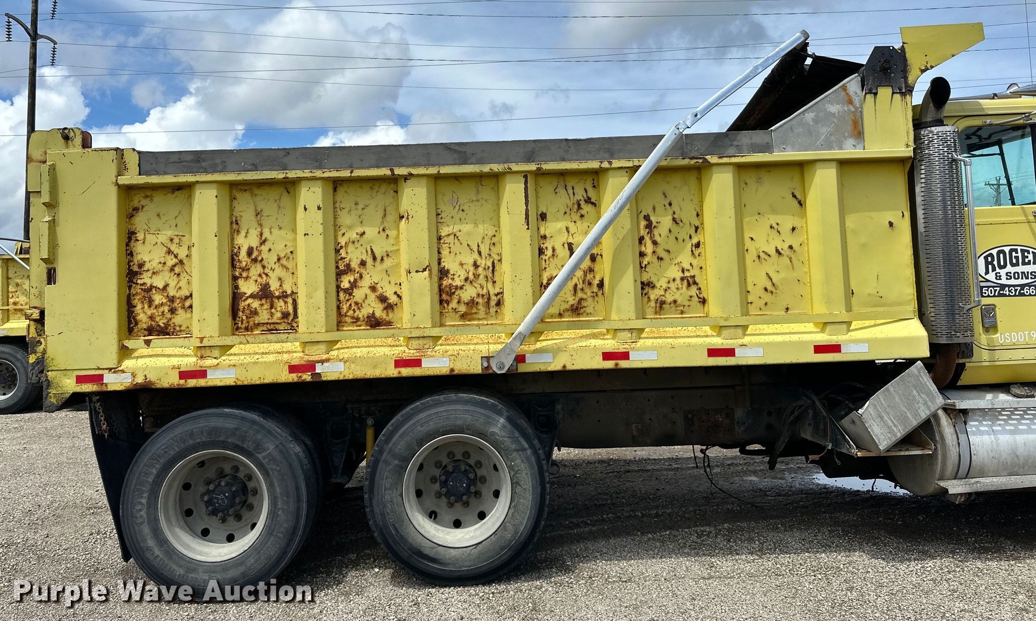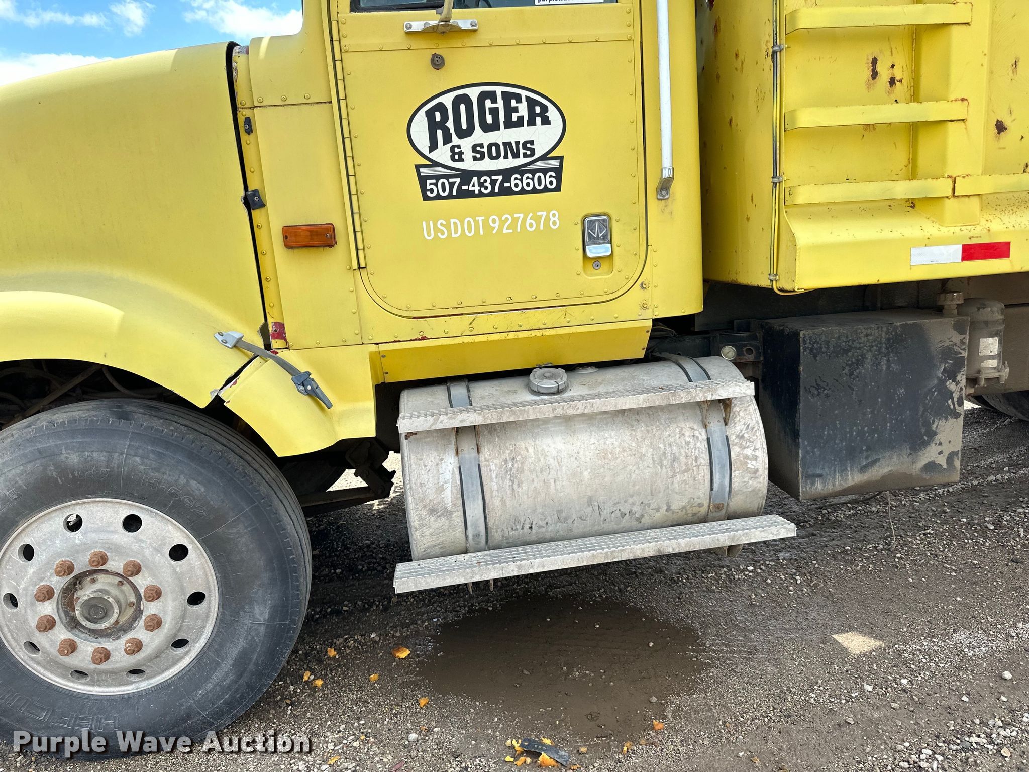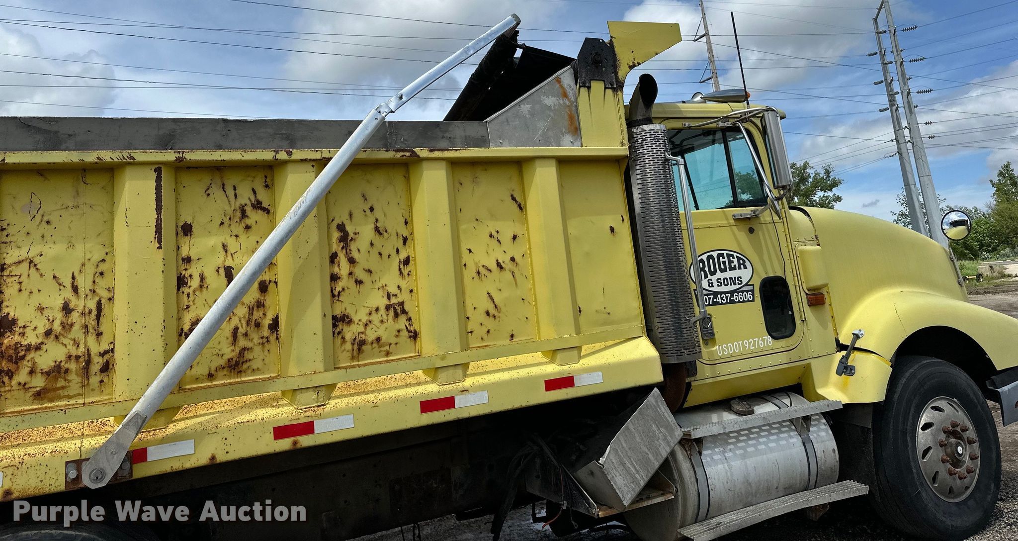 1992 International 9200 dump truck. Miles: 948,493 on odometer, VIN: 2HSFHLKR6NC062526. Engine Caterpillar 3176, Serial: 7LCO8869, Displacement: 10.3L, Cylinders: 6, Fuel type: Diesel, Engine brake. Transmission Spicer, Speed: 10. Chassis Axles: Tandem, Differential lock: Inter-axle, Suspension: Air Dump valves, Brakes: Air, PTO. Interior AC, Heat. Features Dump bed 16' L x 8' W, Side height: 46", Side board height: 5", Bed type: Steel, Roll tarp, Ram: Single, End gate: Air operated. Tires Front: 315/80R22.5, Rear: 11R22.5. Notes Dead battery, Non-operational unit. Minnesota title. Roger & Sons. Austin, MN 55912