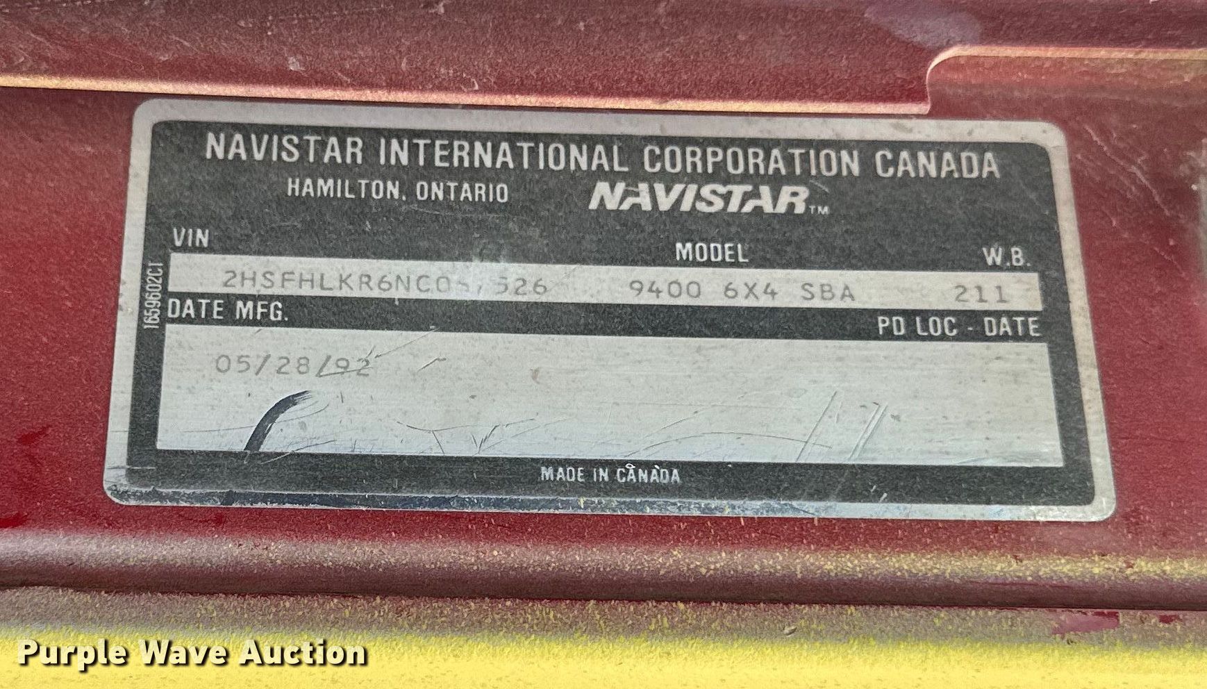 Purple Wave is selling a used Construction Dump Truck in Minnesota. This item is a 1992 International 9200 dump truck with the following: Miles: 948,493 on odometer, VIN: 2HSFHLKR6NC062526