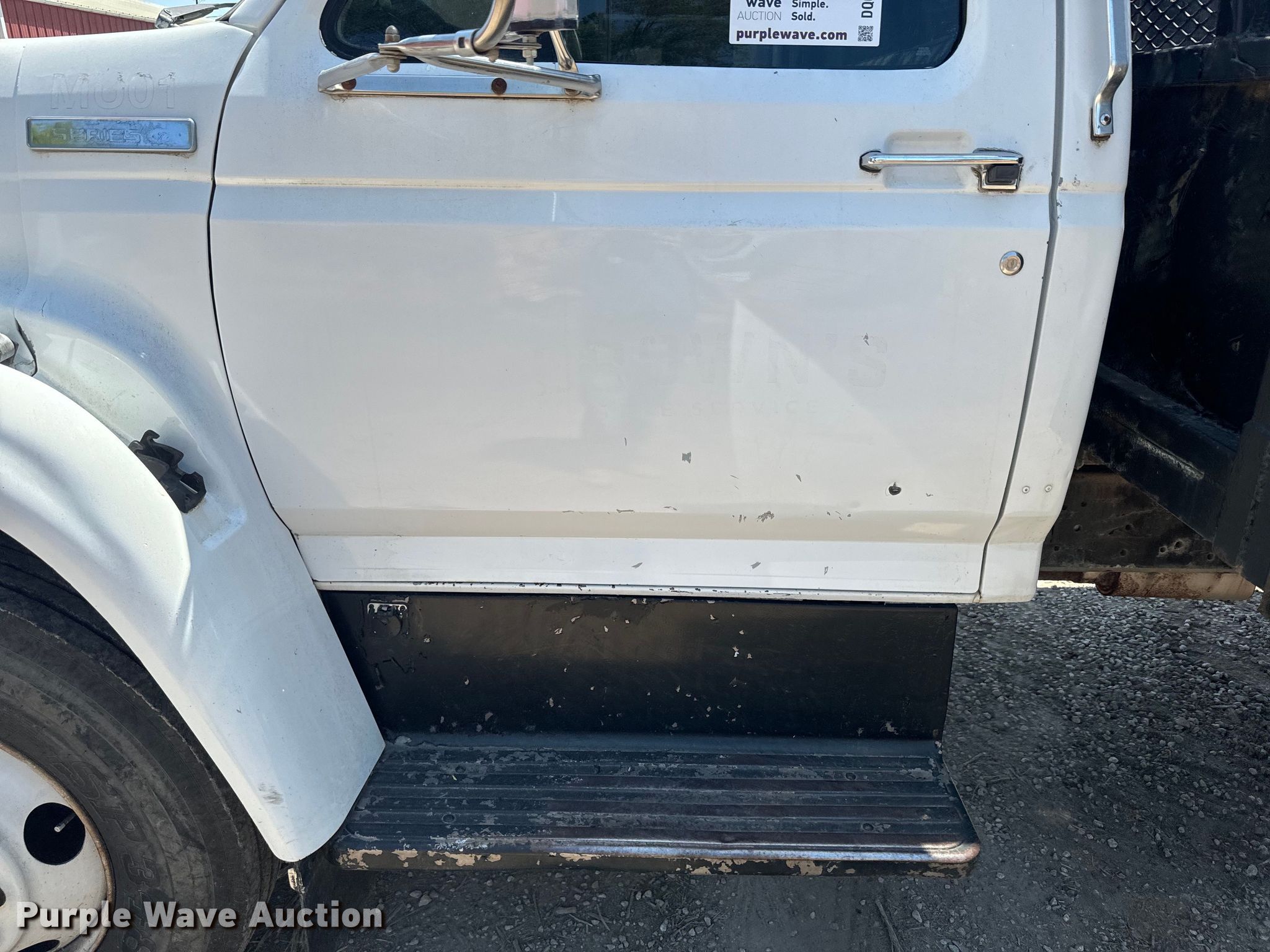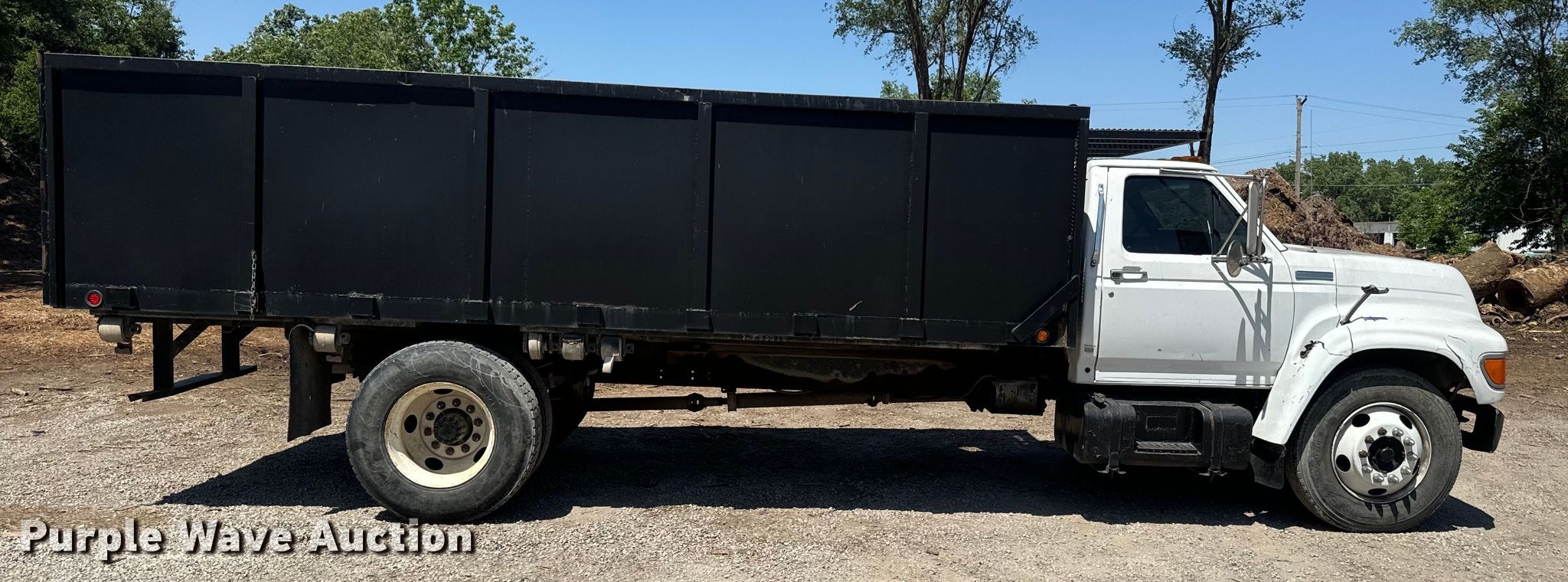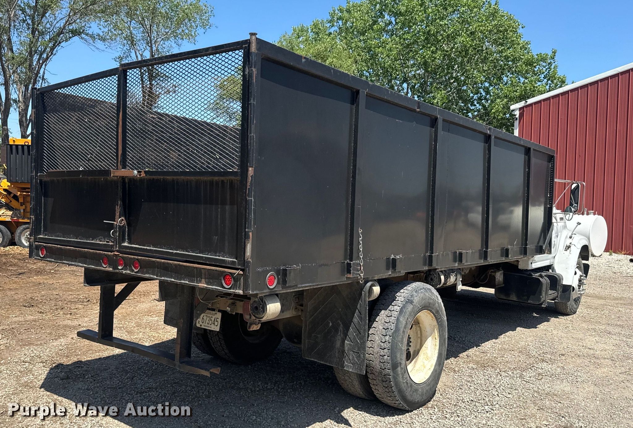 1995 Ford F700 dump truck. Miles: 296,089 on odometer, VIN: 1FDNF70J8SVA64102. Engine Ford, Displacement: 7.0L, Cylinders: 8, Fuel type: Gas. Transmission Manual, Speed: 4. Chassis Axles: Single, Suspension: Spring, Brakes: Hydraulic, PTO. Interior Heat. Features Dump bed 18' L x 96" W, Side height: 48", Ram: Dual, End gate: Manual. Tires Front: 10R22.5, Rear: 11R22.5. Notes Inside driver door handle missing, Driver window issues, does not role all the way up. Kansas title. Title distribution may be delayed up to 30 days from verification of funds. Brown Tree Service. Topeka, KS 66608