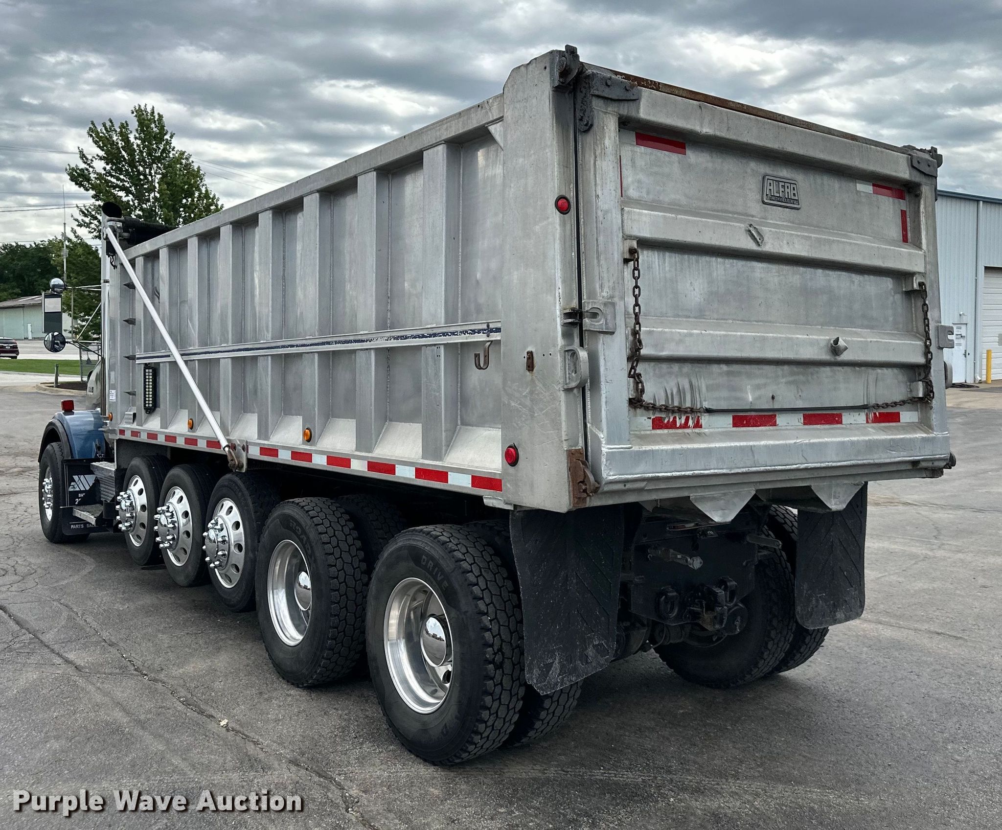 2004 Kenworth T800 dump truck. Miles: 61,578 on odometer, VIN: 1NKDXUEX84J068040. Engine Caterpillar C13, Displacement: 12.0L, Cylinders: 6, Fuel type: Diesel. Transmission Manual. Chassis Double frame, Axles: 5, Pusher axle Steerable, Differential lock: Full, Suspension: Spring over walking beam, Brakes: Air, PTO, GVWR: 80,000 lbs. Interior AC, Heat, Cruise control. Features Dump bed Alfab, 21' L x 96" W, Side height: 64", Bed type: Aluminum, Roll tarp, Ram: Single, End gate: Air operated. Tires Front: 425/64R22.5, Rear: 11R22.5, Lift axle: 255/70R22.5. Missouri title. Signature Landscape. Grandview, MO 64030