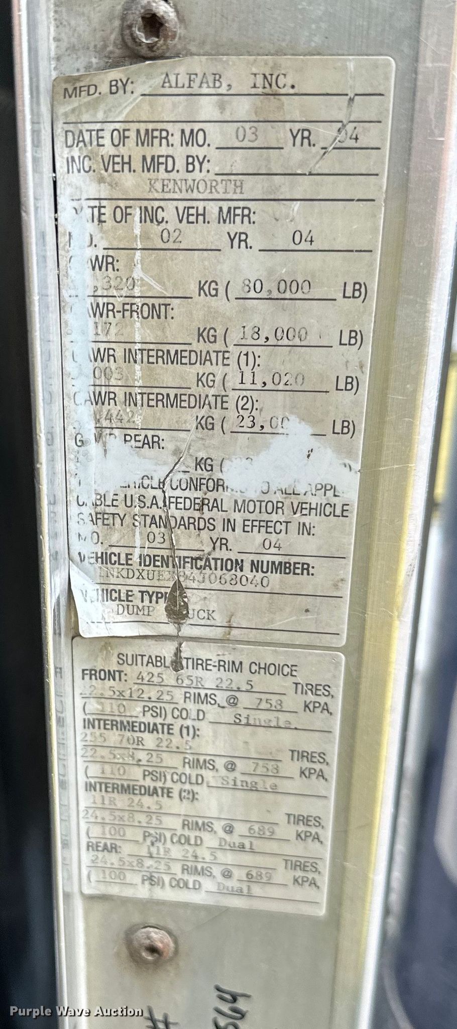 Purple Wave is selling a used Construction Dump Truck in Missouri. This item is a 2004 Kenworth T800 dump truck with the following: Miles: 61,578 on odometer, VIN: 1NKDXUEX84J068040