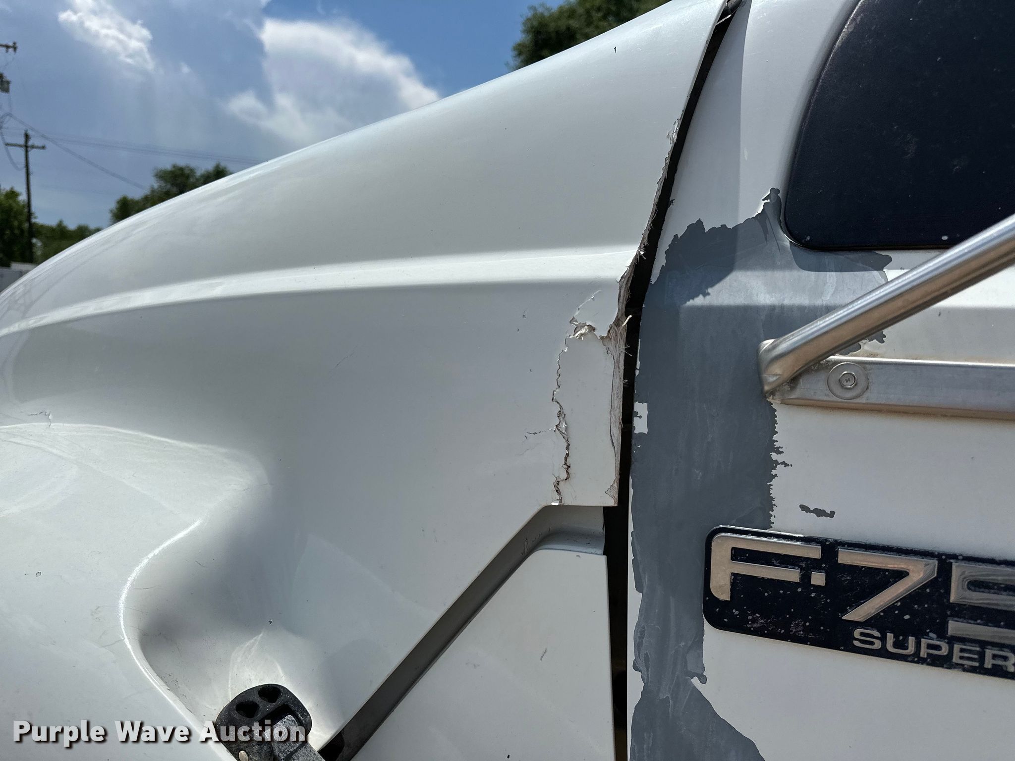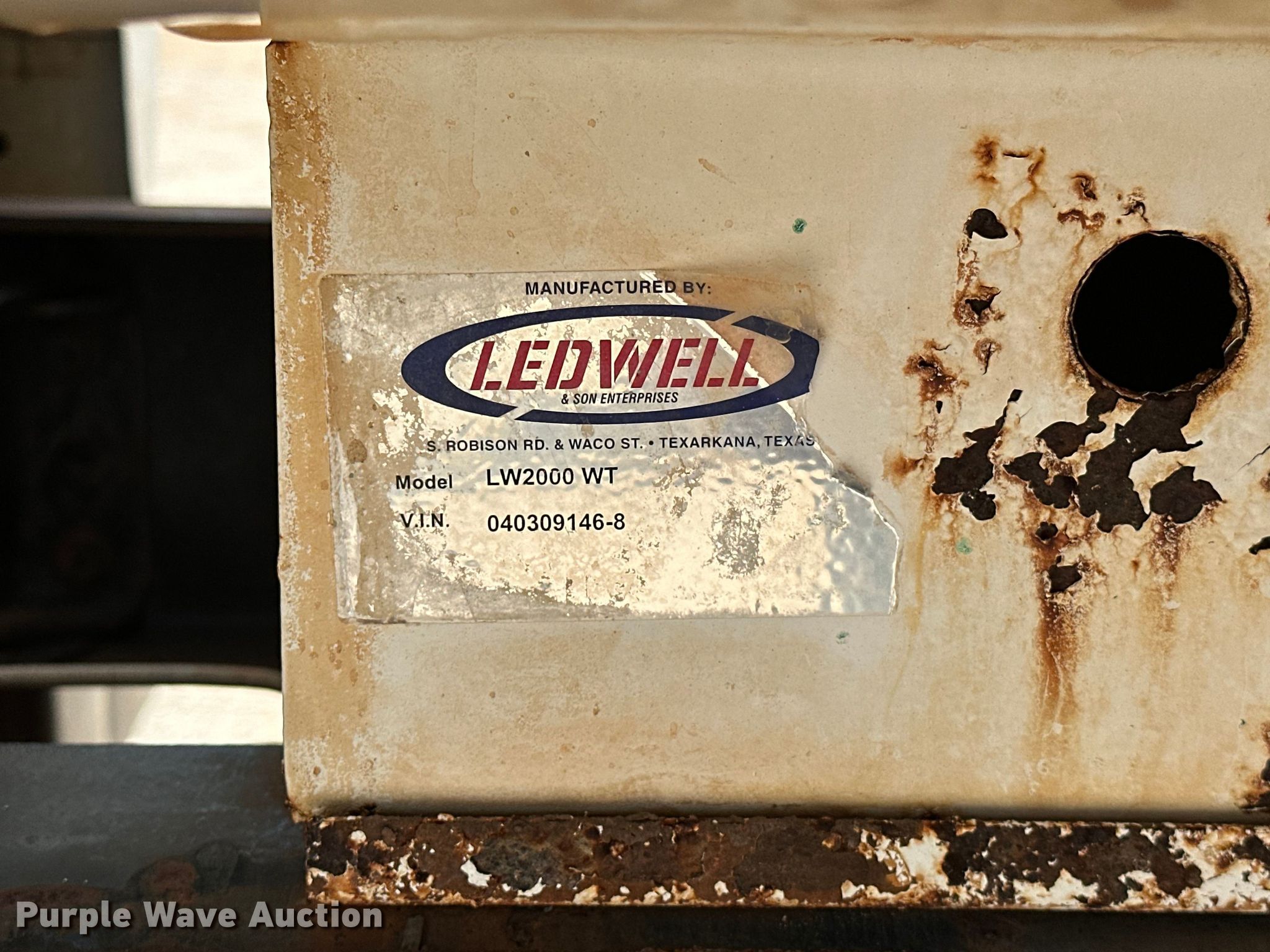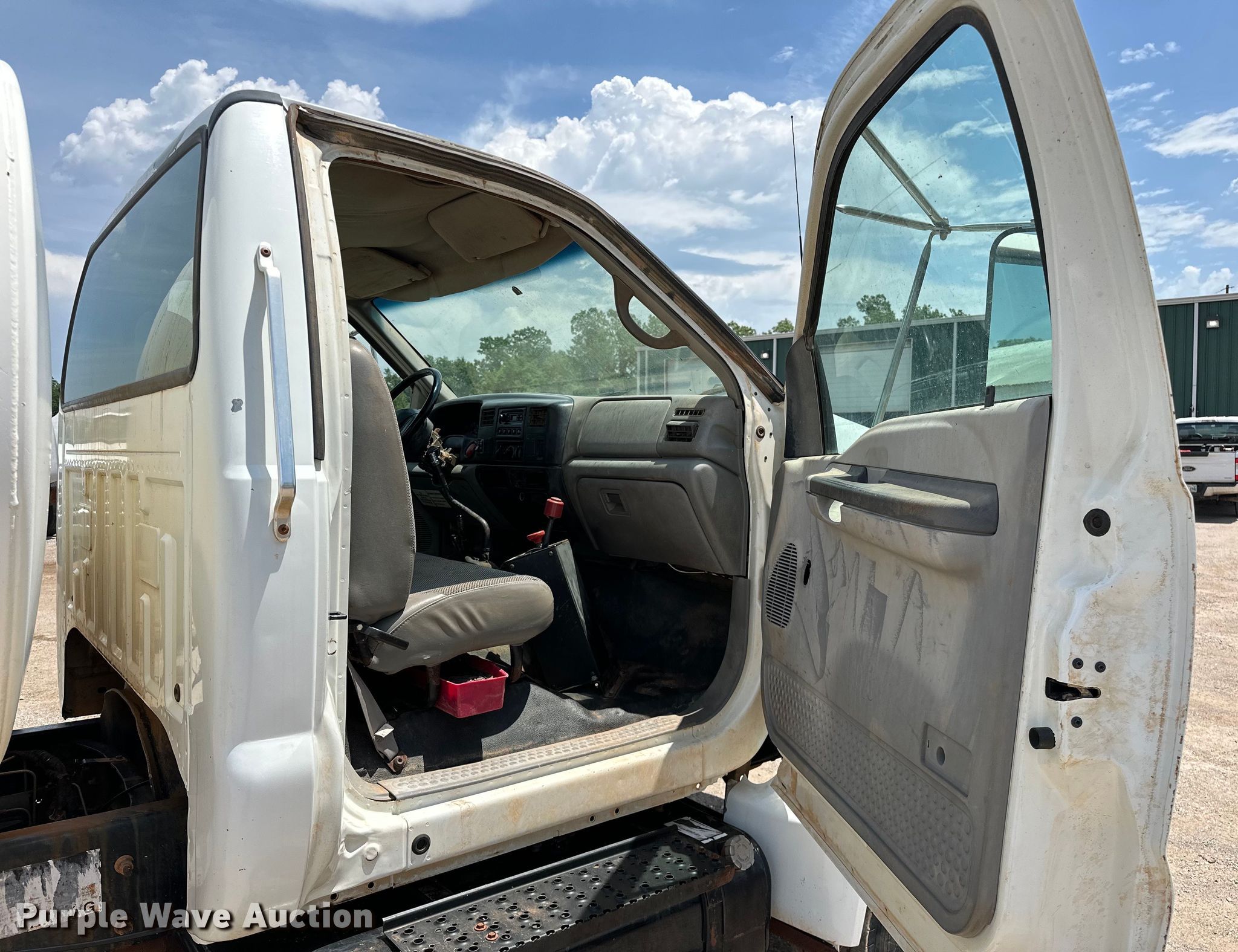 2004 Ford F750 Super Duty water truck. Miles: 29,158 on odometer, VIN: 3FRPF75204V619892. Engine Caterpillar 3126, Serial: HEP35010, Displacement: 7.2L, Cylinders: 6, Fuel type: Diesel, HP: 330. Transmission Manual, Speed: 6. Chassis Axles: Single, Suspension: Spring, Brakes: Hydraulic, PTO, GVWR: 31,000 lbs. Interior AC, Heat, Cruise control. Features Bed / tank Ledwell LW2000 WT, Serial: 040309146-8, Capacity: 2,000 gallons, 10' 6" L x 84" W, Spray bar: Rear, Side discharge, Hose reel, Top fill. Tires Size: 10R22.5. Notes Dash warning indicator: ABS, Brake, Non-operational driver's seat belt, Driver's seat damaged, Right brake light cracked, Front left turn signal cracked. Oklahoma title. Title distribution may be delayed up to 30 days from verification of funds. Sandstone Construction Retirement Auction - Open Inspection June 19th. 500 N Bryant Ave. Oklahoma City, OK 73117