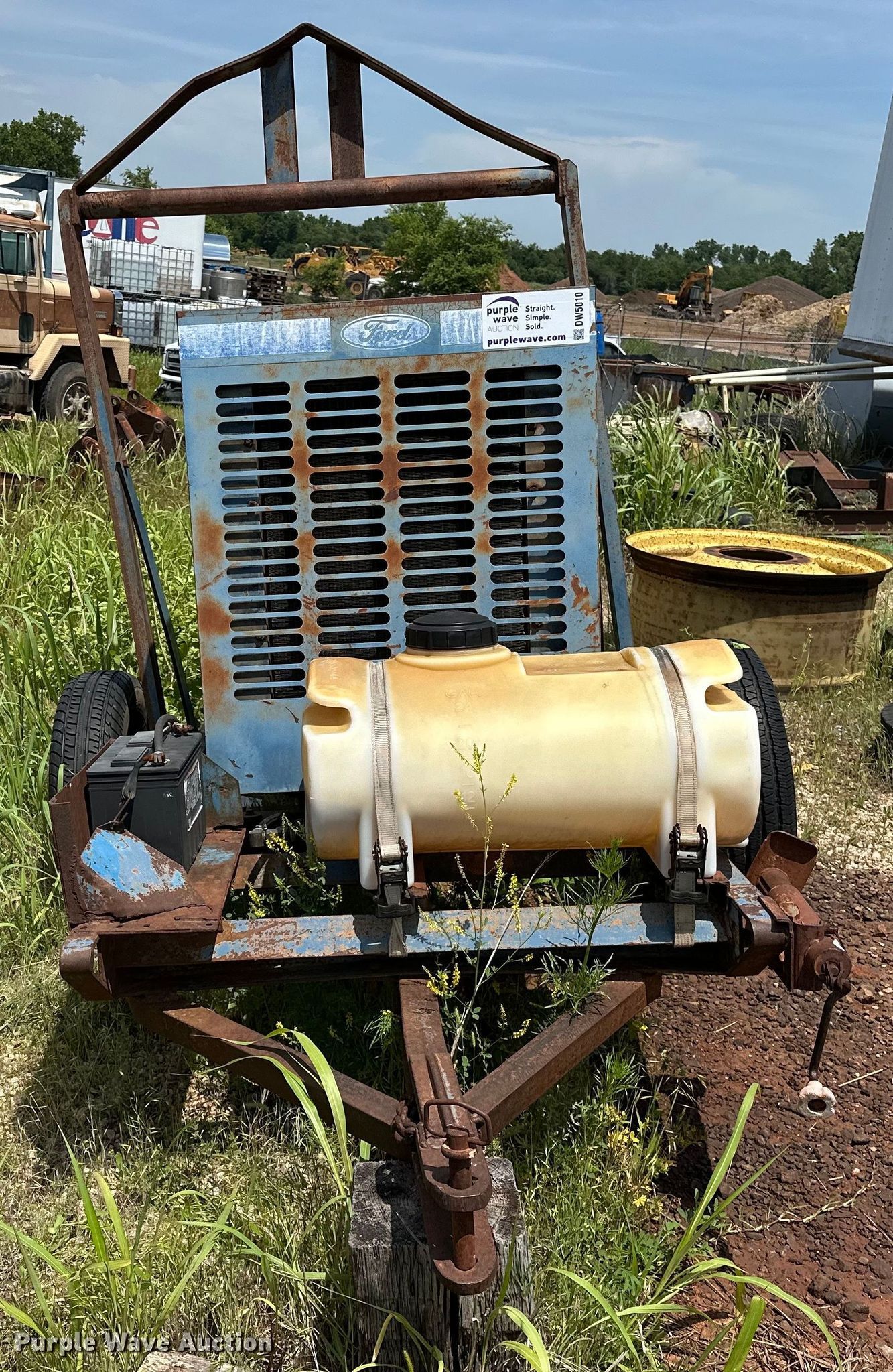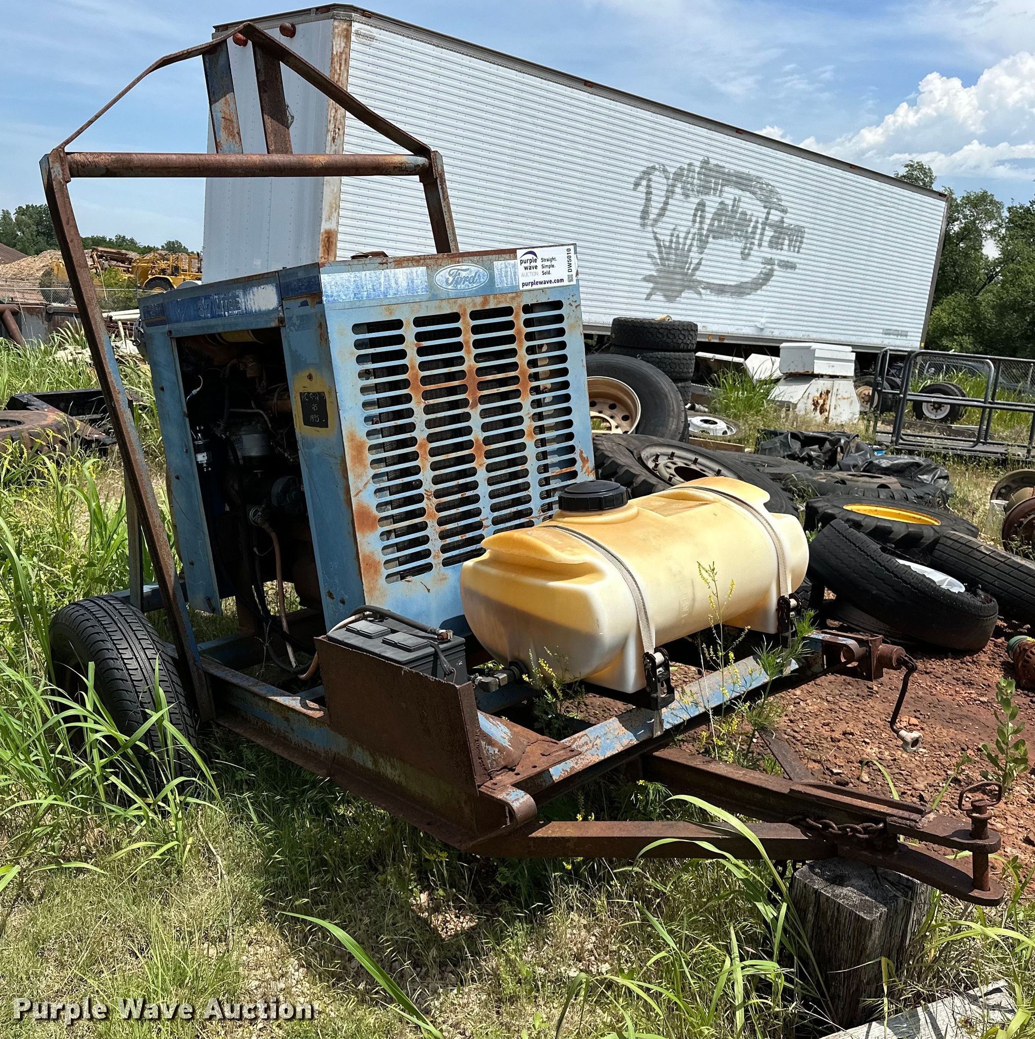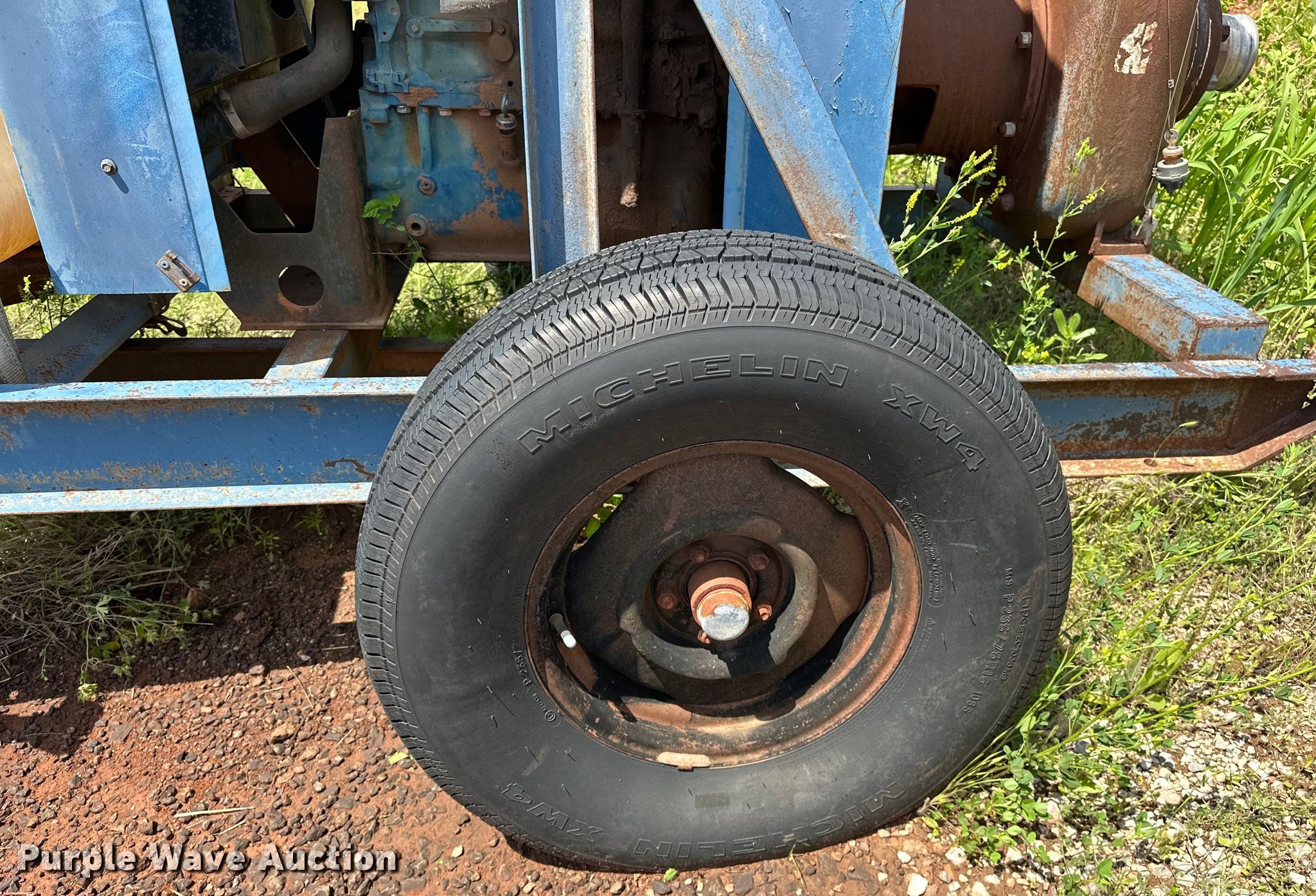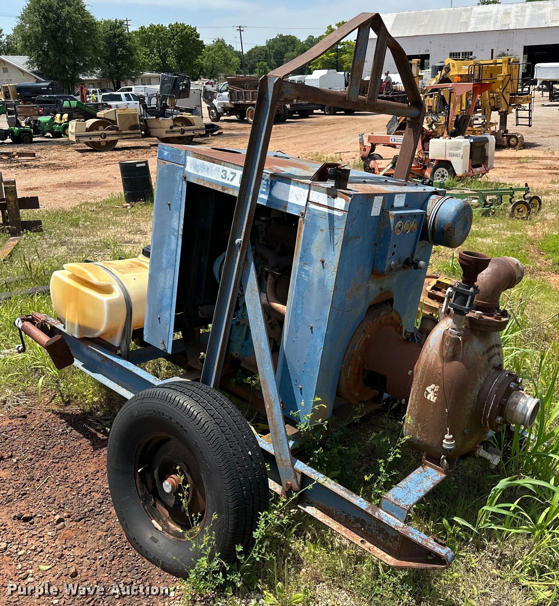 GR 84A2-F224D centrifugal pump. Hours: Unknown, Serial: 721092. Engine Ford, Displacement: 3.7L, Cylinders: 4, Fuel type: Diesel. Features Inlet/outlet: 4", Tank Capacity: 24 gallons, Hitch: Pin. Tires Size: P250/75R15. Notes Dead battery, Flat tires. Sandstone Construction Retirement Auction - Open Inspection June 19th. 500 N Bryant Ave. Oklahoma City, OK 73117