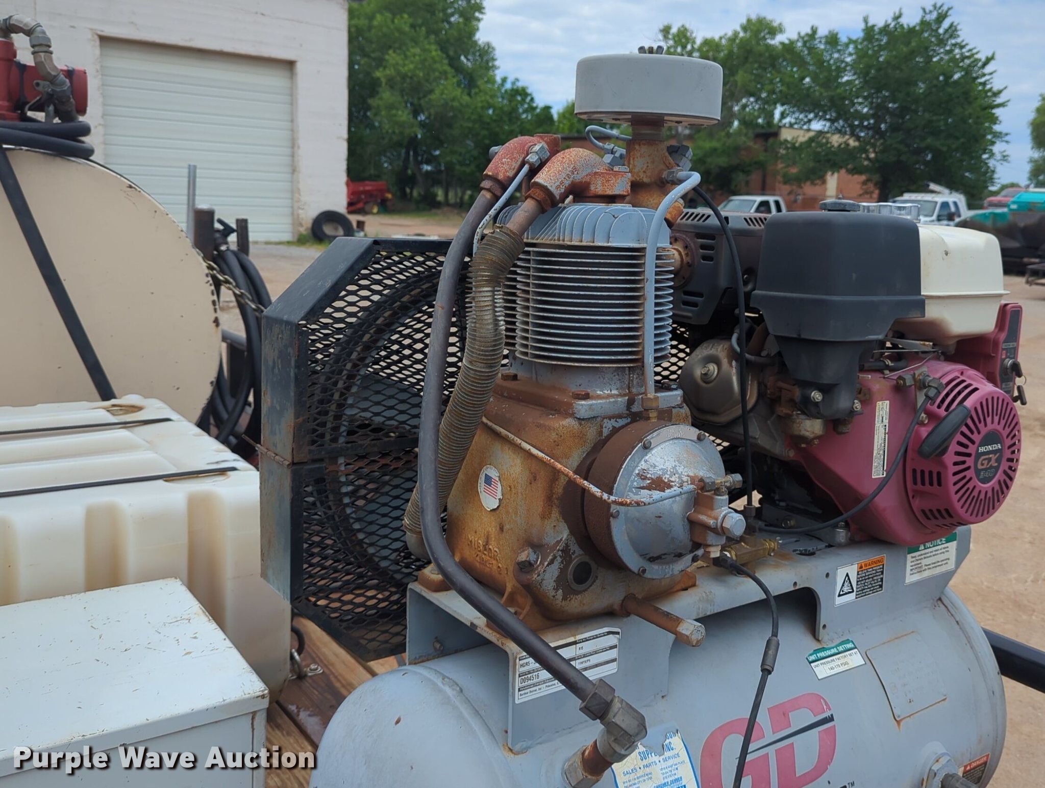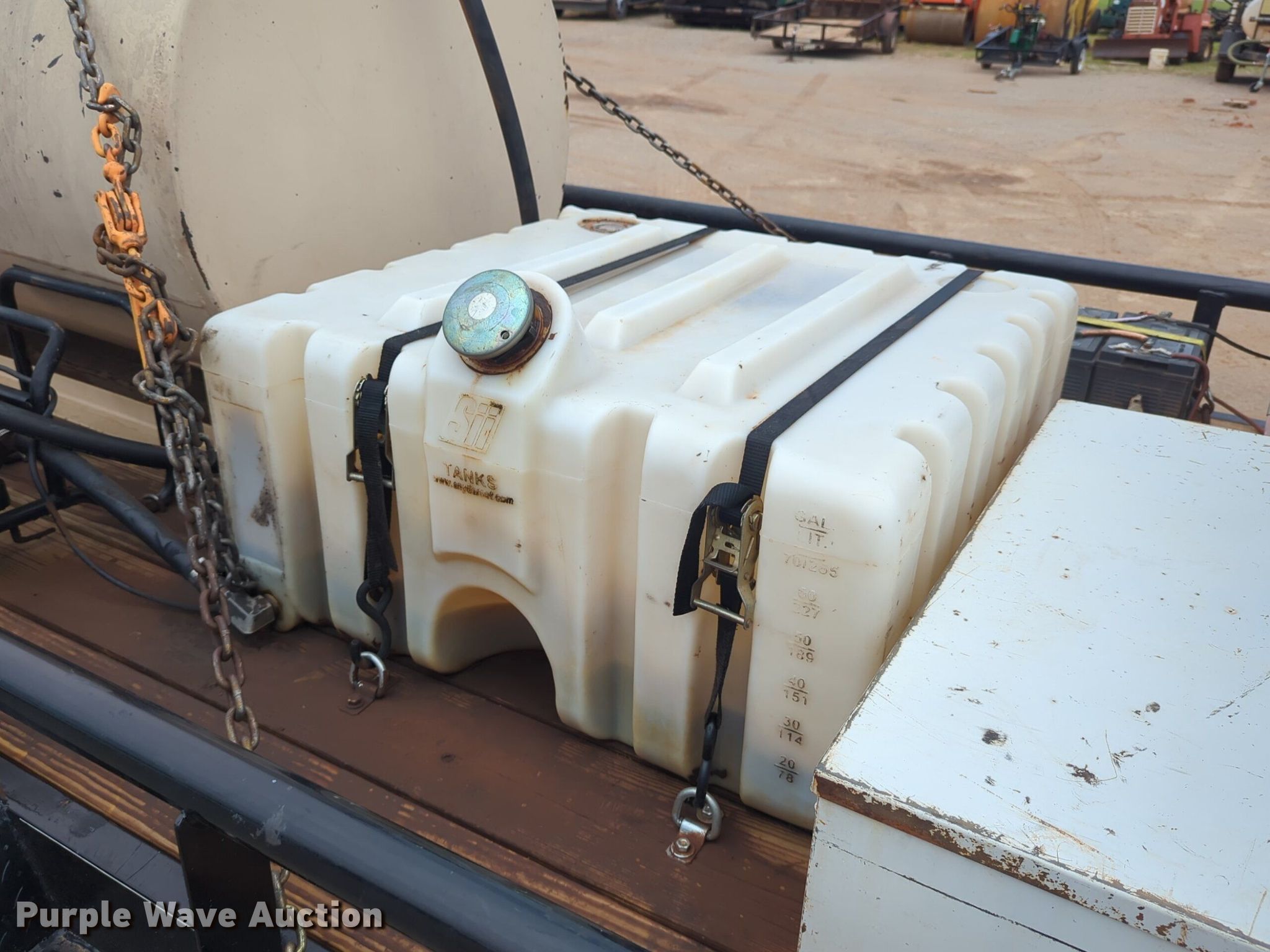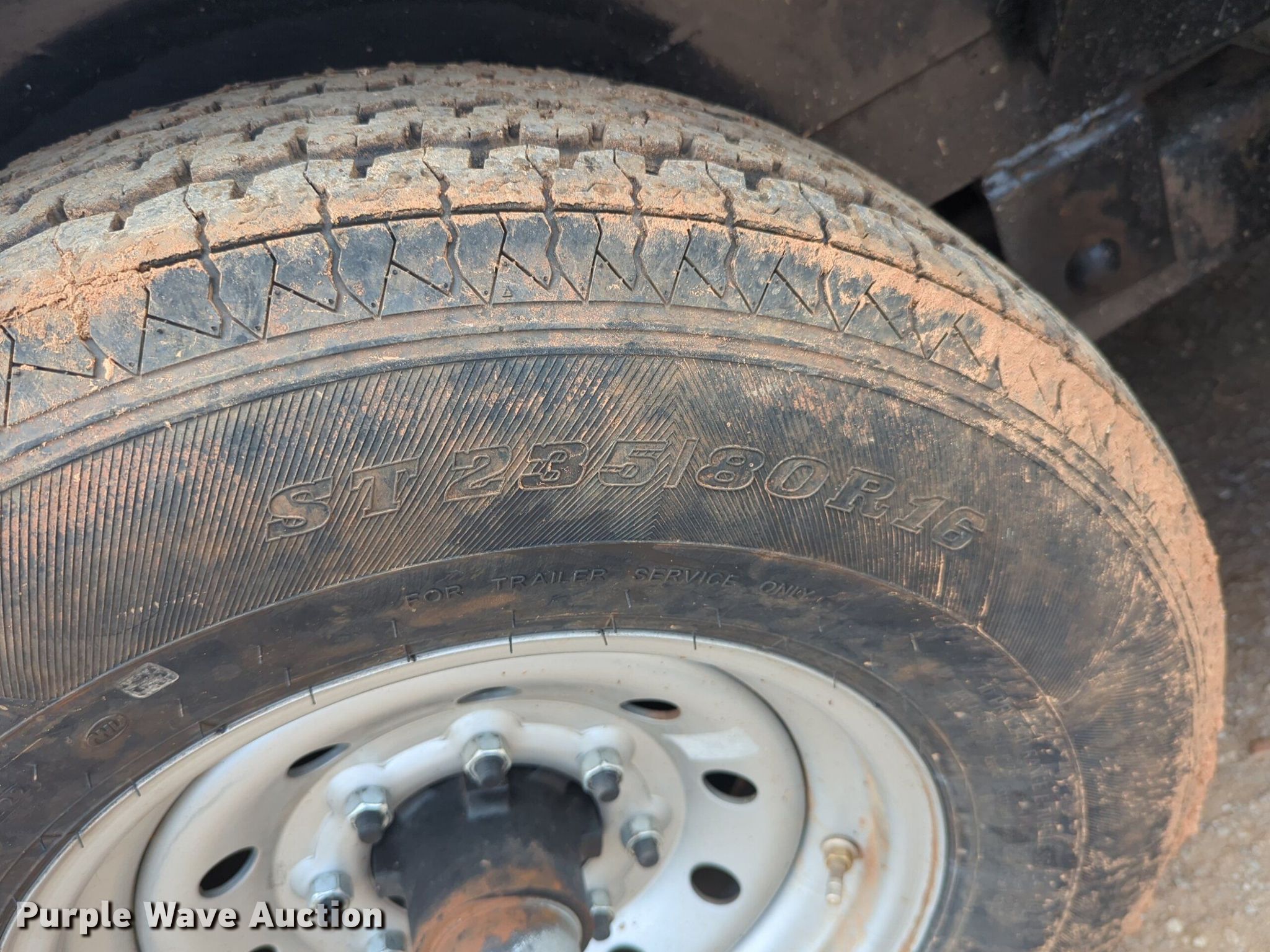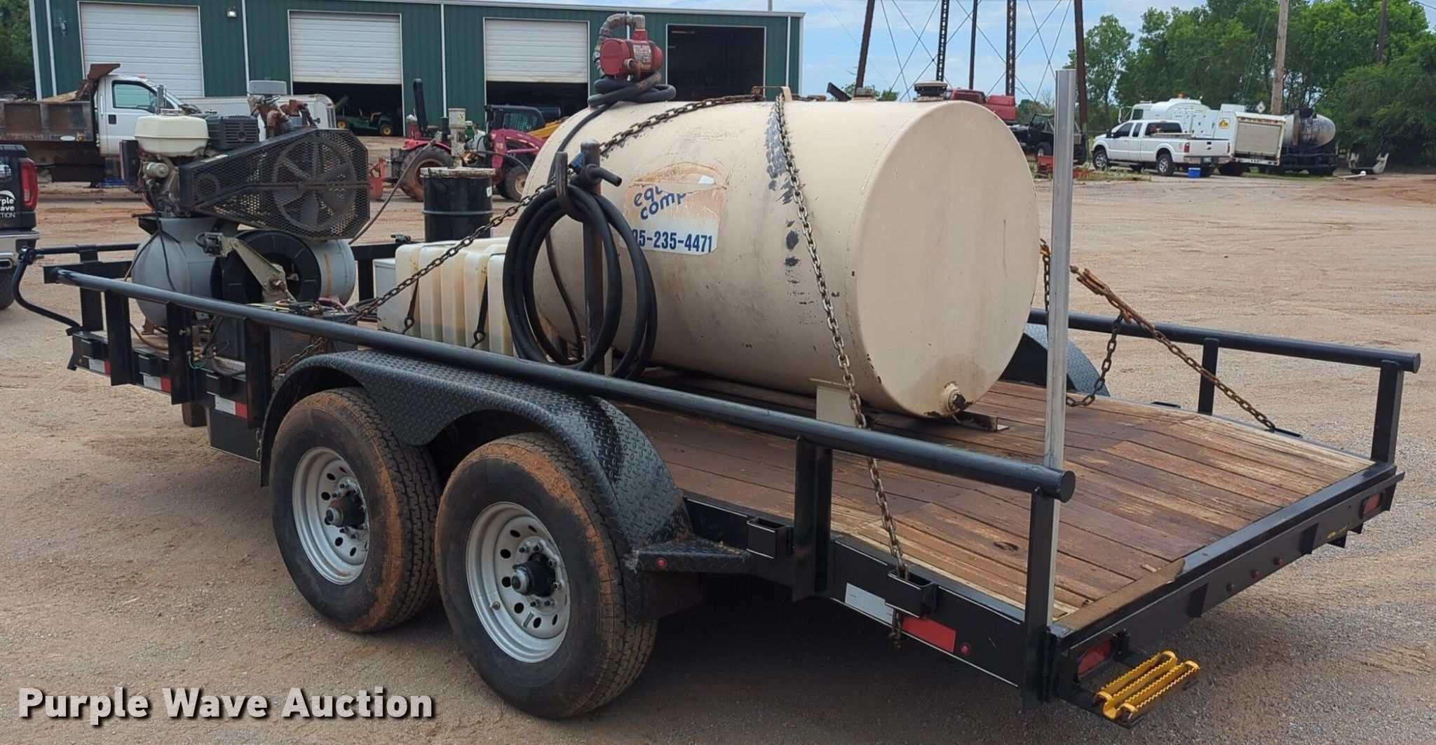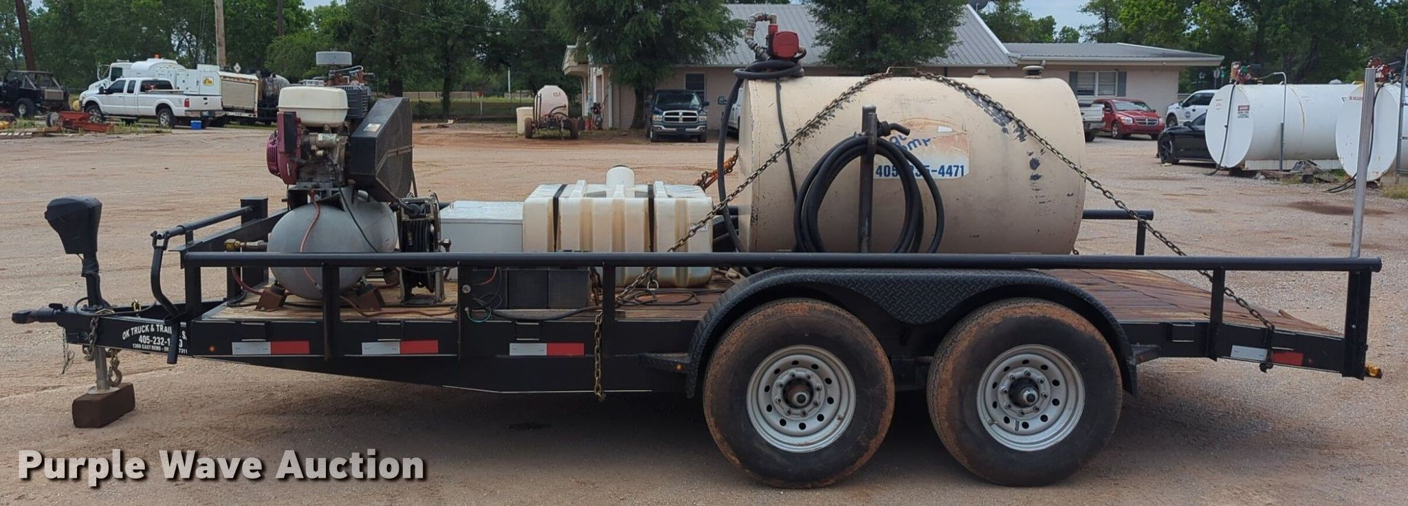 2023 Road Boss 167K utility trailer. VIN: 5Z0BP162XPP014844. Dimensions Overall: 20' L x 102" W, Deck: 16' L x 84" W, Ramps: Manual Length: 6'. Features Deck type: Wood, Air compressor Gardner Denver HGR5-3H, Pump Chemtraveler Tuthill Sotera Systems, Auxiliary fuel tank Fill-rite, Capacity: 250 gallons, Hose, Pump, Nozzles, Motor oil reservoir: 70 gallons, Grease reservoir. Chassis Ball hitch: 2 5/16", Landing gear: Dual, Hydraulic, Suspension: Spring, Brakes: Electric, Axles: Triple, GVWR: 14,000 lbs, GAWR: 7,000 lbs. Tires Steel wheels, Size: 235/80R16. Oklahoma title. Title distribution may be delayed up to 30 days from verification of funds. Sandstone Construction Retirement Auction - Open Inspection June 19th. 500 N Bryant Ave. Oklahoma City, OK 73117