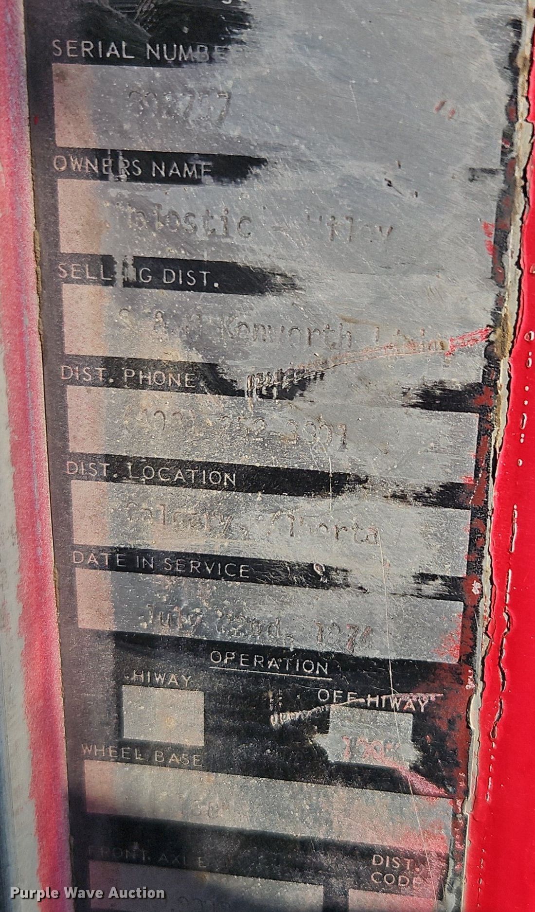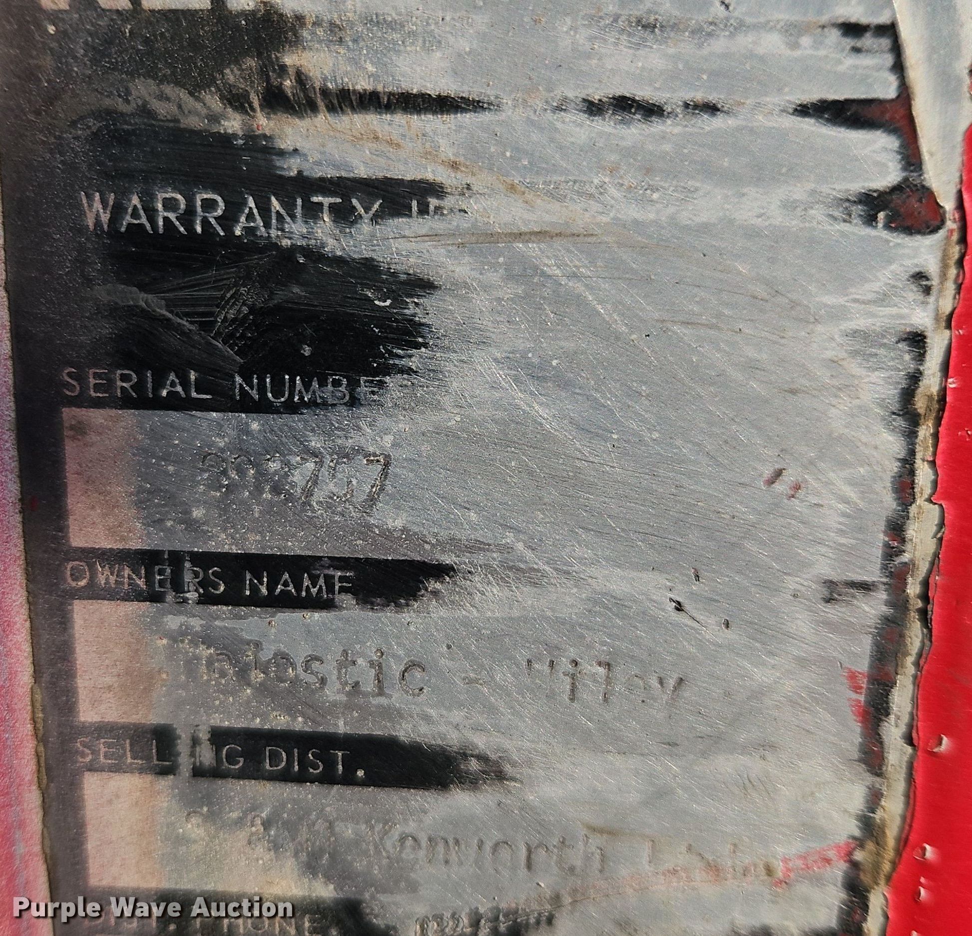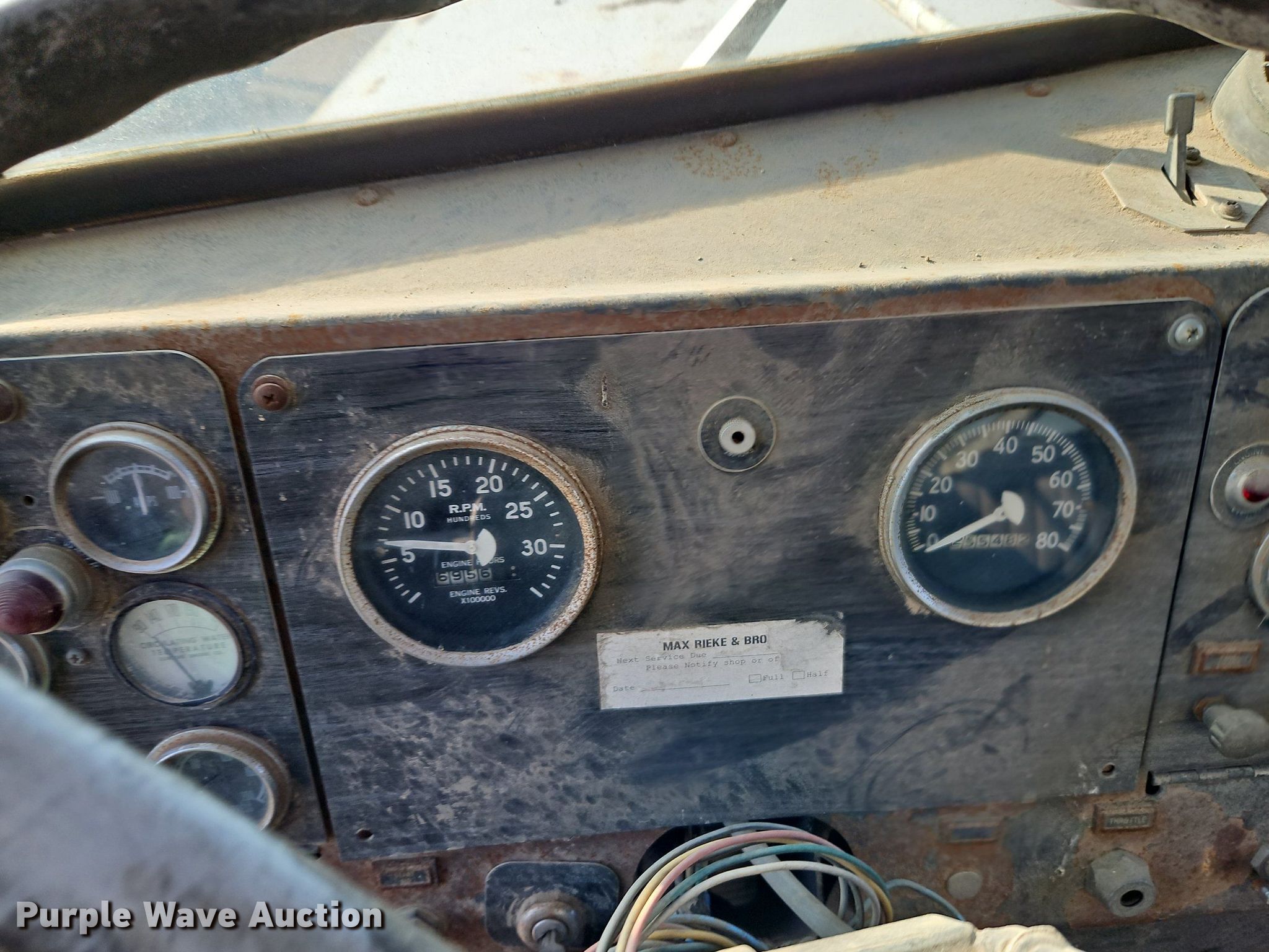 1974 Kenworth tank truck. Miles: 255,482 on odometer, VIN: 892757. Engine Cummins, Cylinders: 6, Fuel type: Diesel. Transmission Eaton Fuller, Manual, Speed: 10. Chassis Axles: Tandem, Differential lock: Inter-axle, Suspension: Spring over walking beam, Brakes: Air, PTO. Interior Heat, Auxiliary controls. Features Bed / tank Model: 17040005, Serial: 7K36575, 15' L x 8' W, Spray bar: Front, Rear, Top fill, Rear drain: 3", Rear outlet: 3". Tires Front: 315/80R22.5, Rear: 11R22.5. Kansas title. Title distribution may be delayed up to 30 days from verification of funds. Max Rieke & Brothers Inc.. 15400 Midland Dr. Shawnee, KS 66217