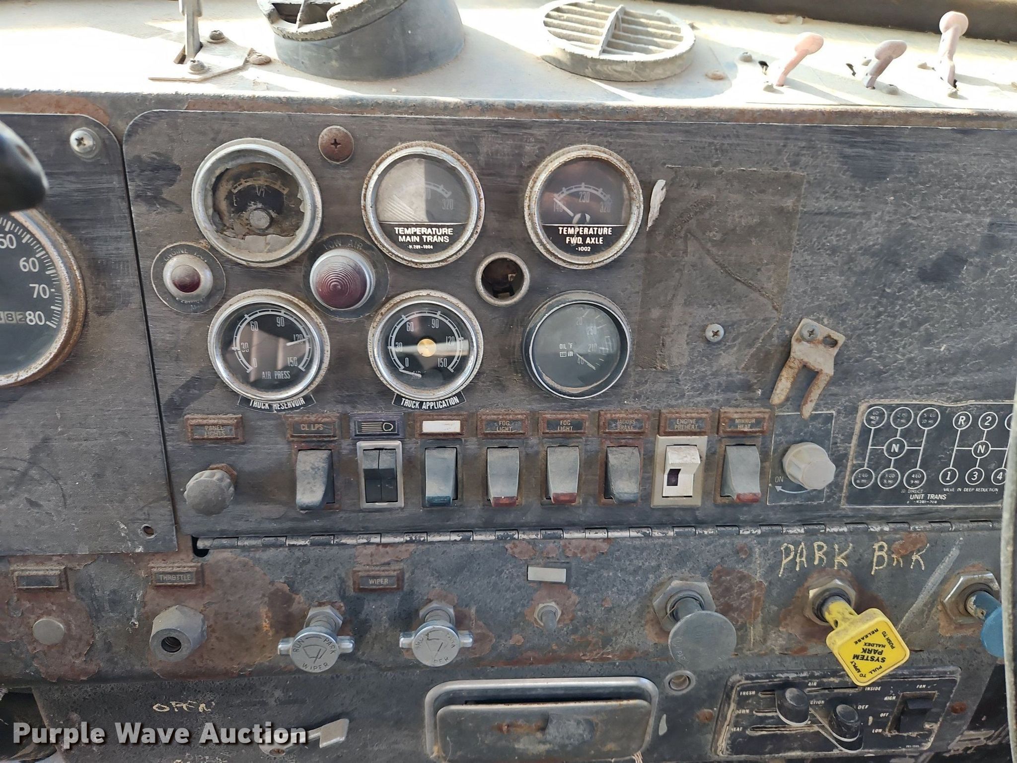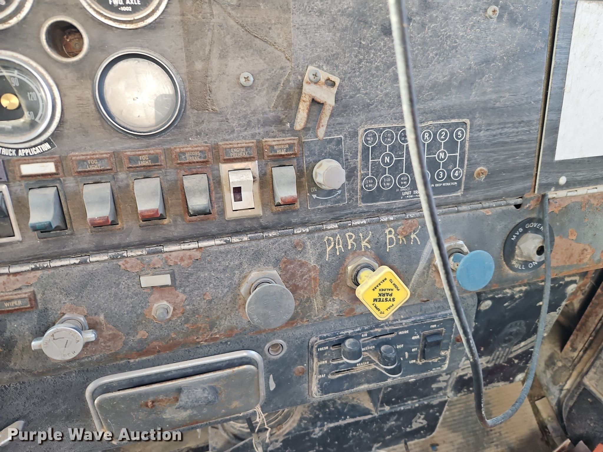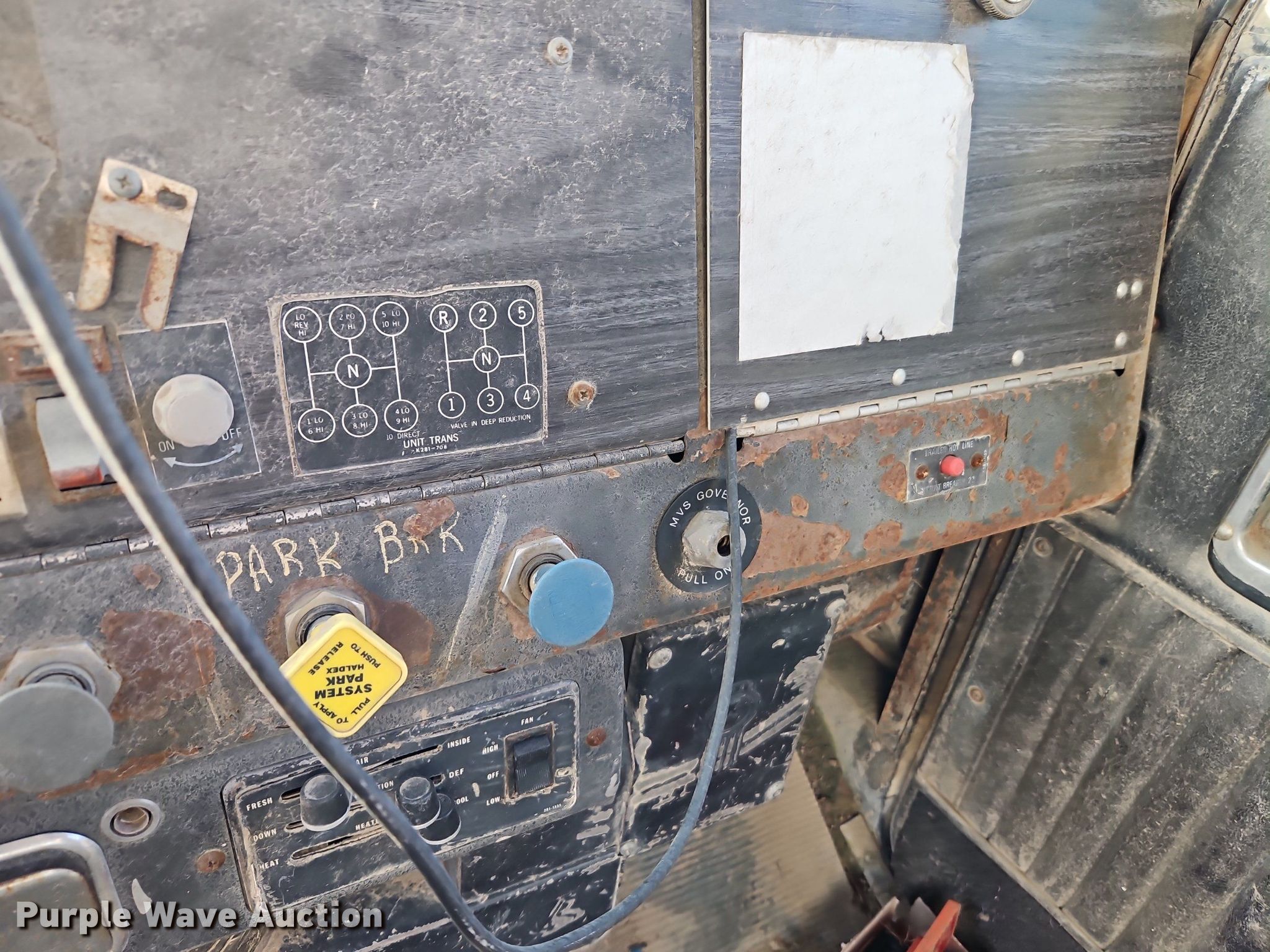 1974 Kenworth tank truck. Miles: 255,482 on odometer, VIN: 892757. Engine Cummins, Cylinders: 6, Fuel type: Diesel. Transmission Eaton Fuller, Manual, Speed: 10. Chassis Axles: Tandem, Differential lock: Inter-axle, Suspension: Spring over walking beam, Brakes: Air, PTO. Interior Heat, Auxiliary controls. Features Bed / tank Model: 17040005, Serial: 7K36575, 15' L x 8' W, Spray bar: Front, Rear, Top fill, Rear drain: 3", Rear outlet: 3". Tires Front: 315/80R22.5, Rear: 11R22.5. Kansas title. Title distribution may be delayed up to 30 days from verification of funds. Max Rieke & Brothers Inc.. 15400 Midland Dr. Shawnee, KS 66217