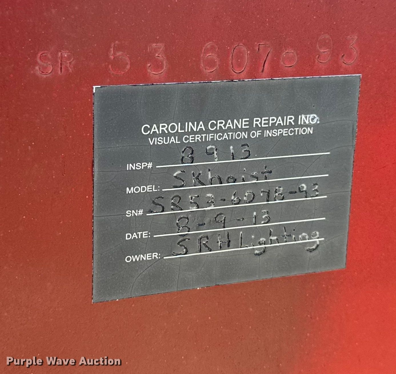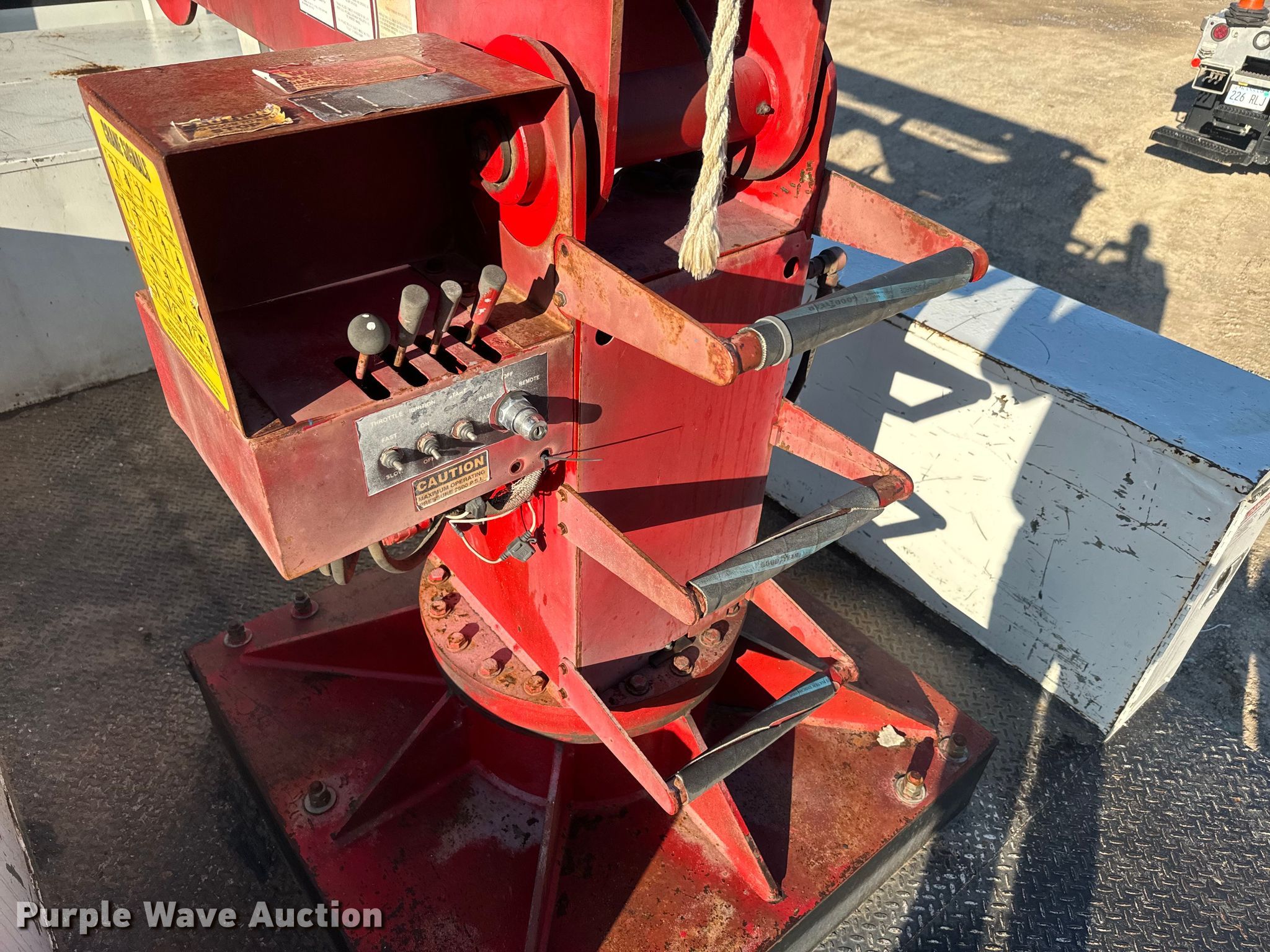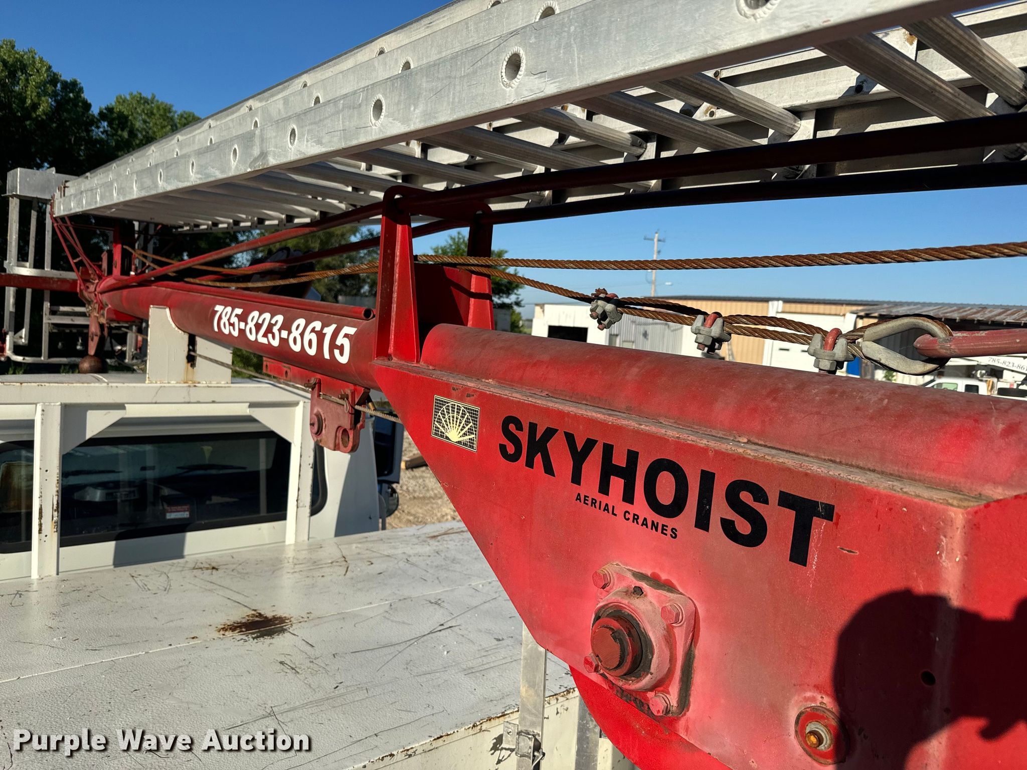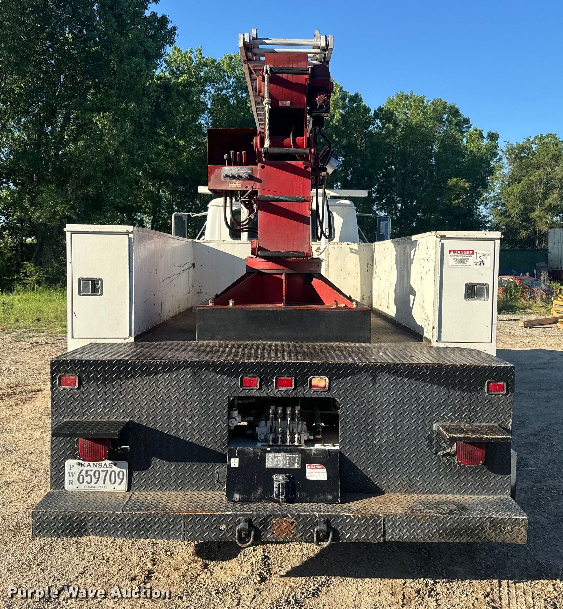 2000 International 4900 crane truck. Miles: 120,003 on odometer, VIN: 1HTSDAAN5YH251917. Engine International Dt466, Displacement: 7.6L, Cylinders: 6, Fuel type: Diesel. Transmission International, Manual, Speed: 6. Chassis Axles: Single, Suspension: Spring, Brakes: Air, PTO. Interior AC, Heat, Cruise control. Features Utility bed 13' 6" L x 100" W, Crane Sky hoist SR53, Serial: SR53-6078-93, Boom Telescopic, Maximum lift capacity: 2,000 lbs, Boom controls Ground, Crane ball & hook. Tires Front: 11R22.5, Rear: 295/75R22.5. Notes Cruise control issue, controls missing, Windshield chipped or cracked, Bucket control issues, needs repaired, Outrigger hydraulic issues. Kansas title. Title distribution may be delayed up to 14 days from verification of funds. Gleason & Son Signs Inc.. Salina, KS 67401