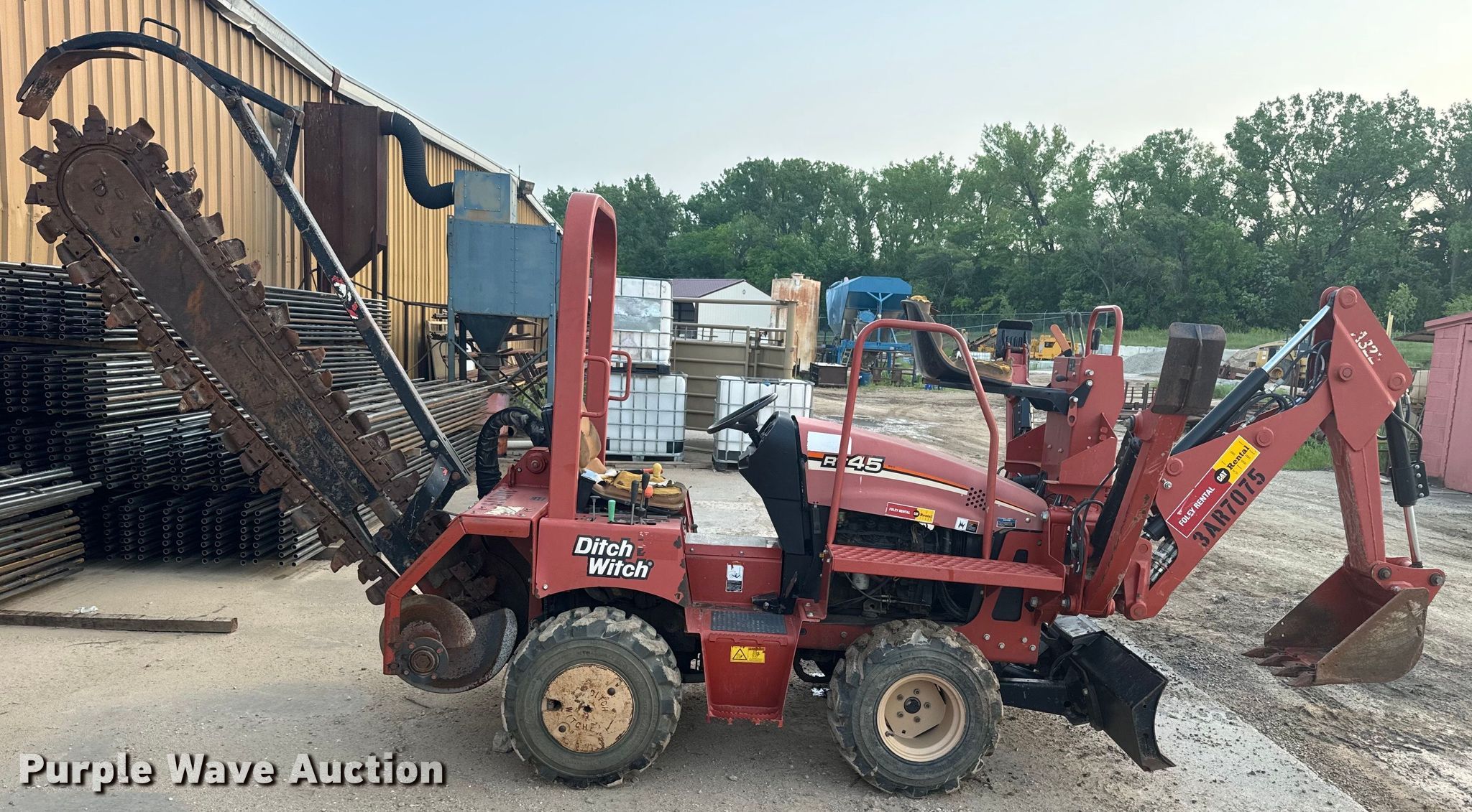 2013 Ditch Witch RT45 trencher. Hours: 736 on meter, Serial: CMWH313XCD0001582. Engine Deutz D2011L03, Serial: 11314100, Displacement: 2.332L, Cylinders: 3, Fuel type: Diesel, HP: 42. Transmission Hydrostatic, Four wheel drive. Features Trencher Estimated dig depth: 96", Cutting width: 6", Teeth: Rock, Dirt, Manual crumber, Backhoe Bucket width: 18", Backfill blade Width: 64". Tires Size: 26.00x12-12. Notes Engine issues, blow by. Hold'em Fence Co. LLC. Council Grove, KS 66846