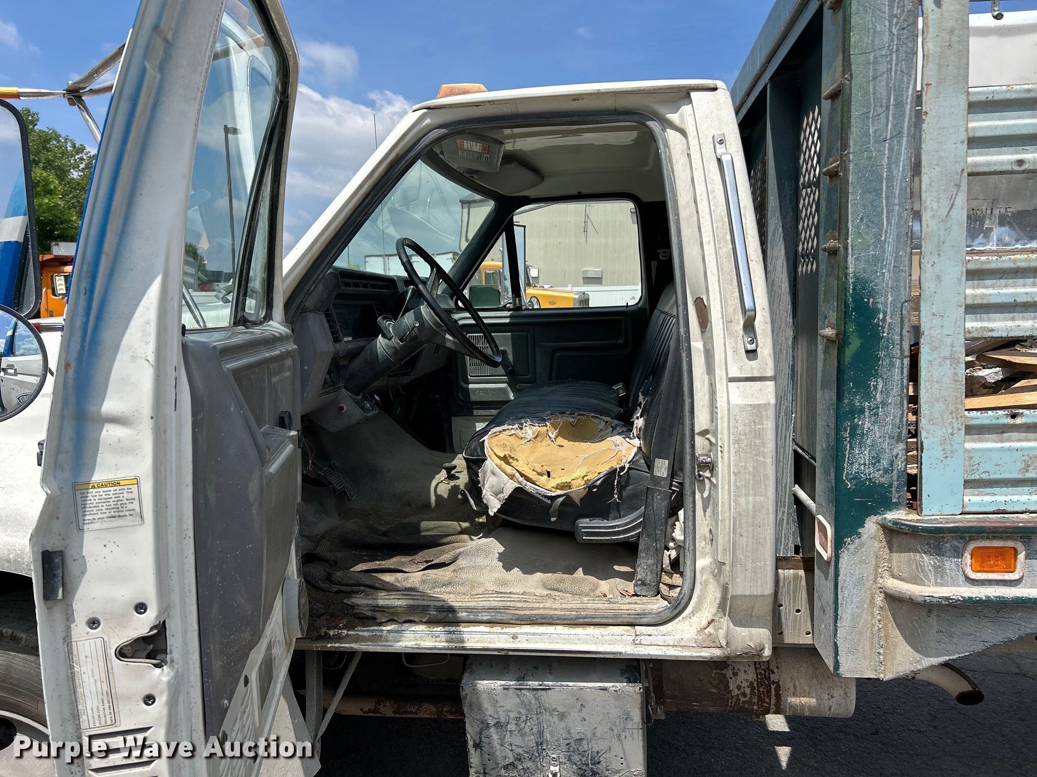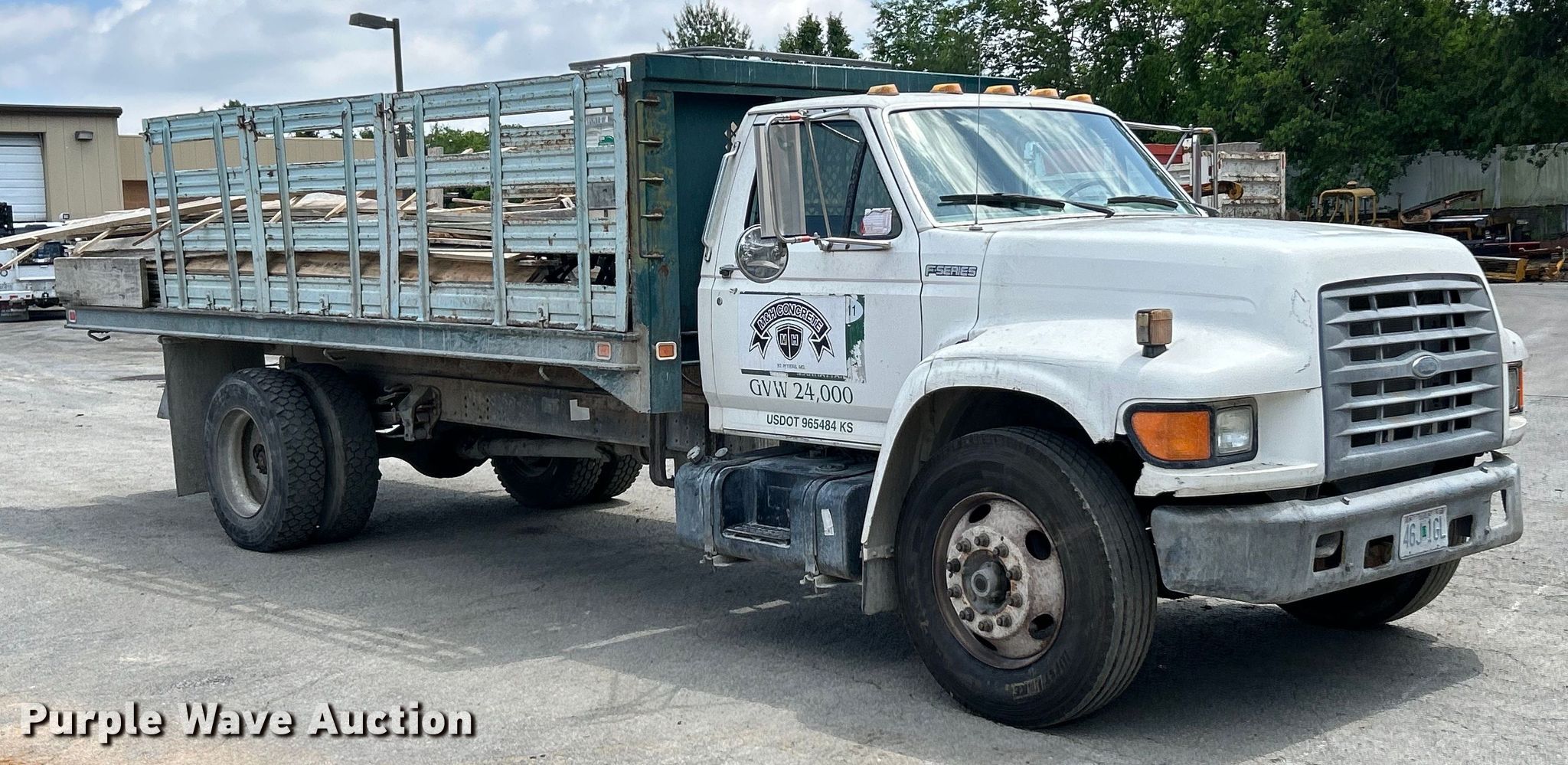 This 1998 Ford F700 flatbed truck will sell to the highest bidder regardless of price.